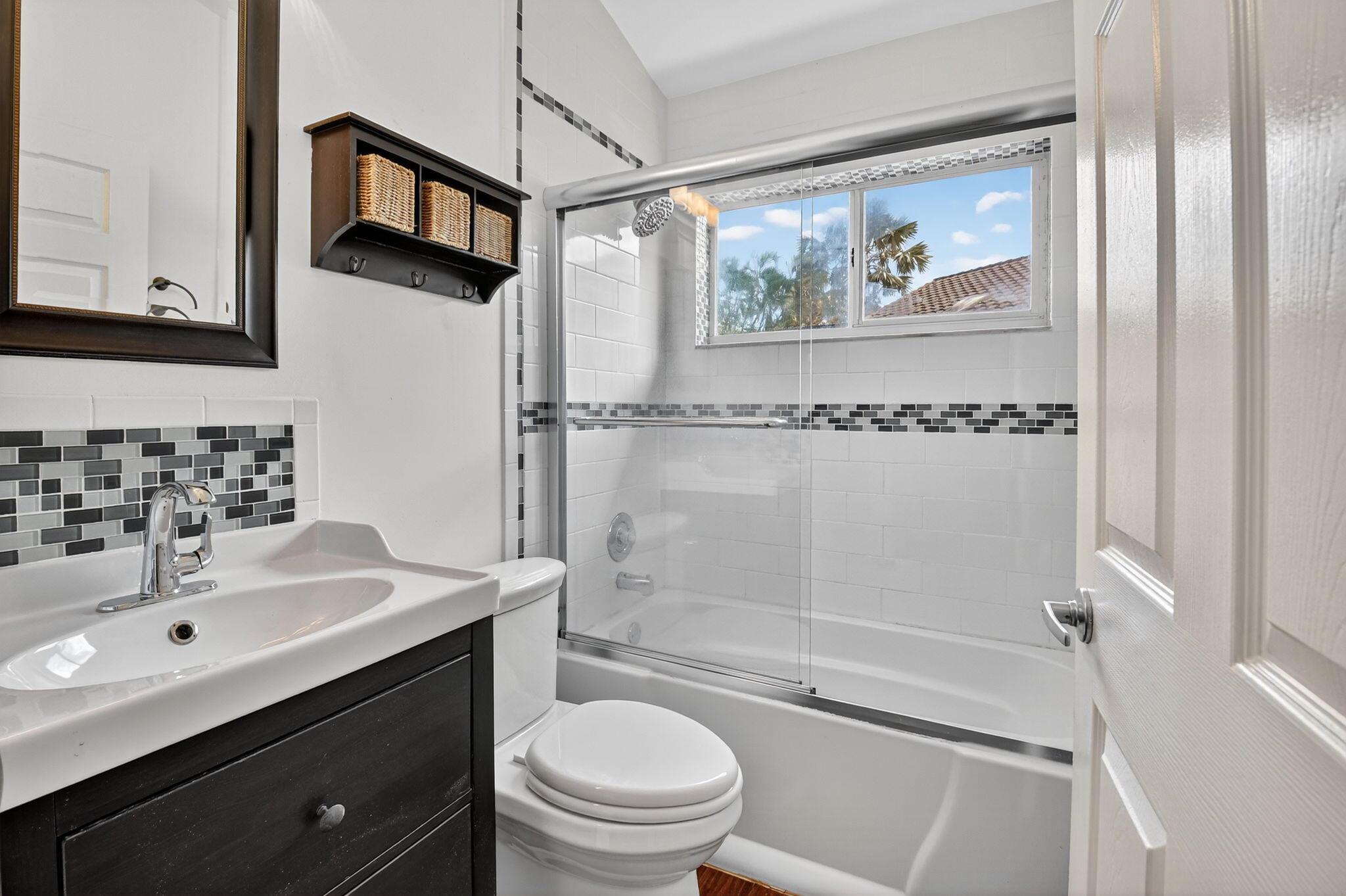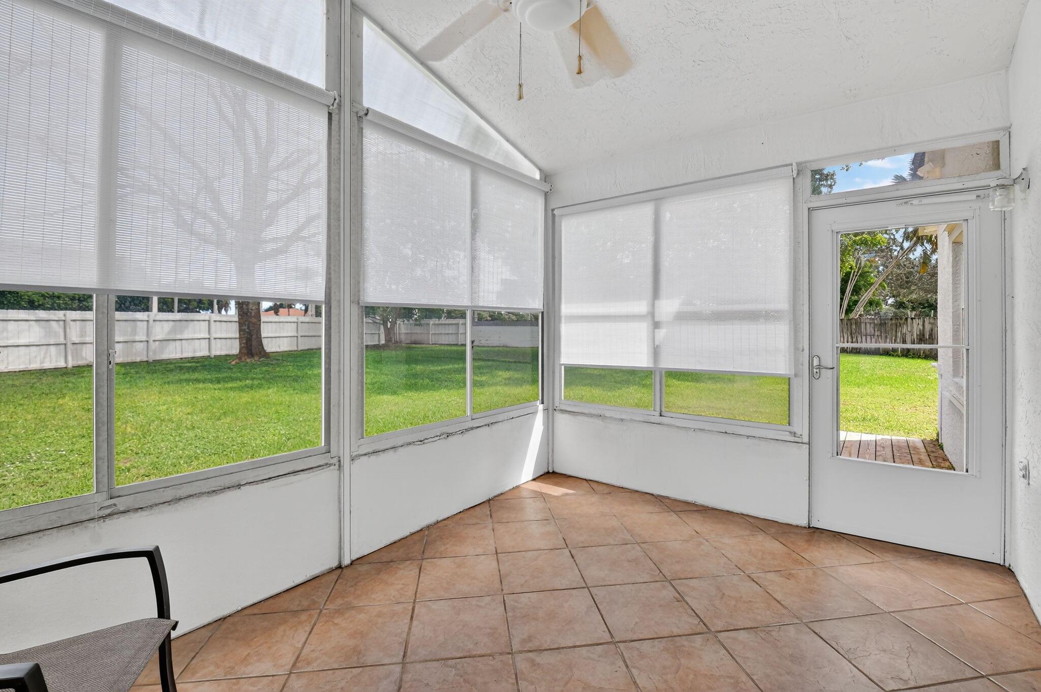 7550 Ironbridge Circle is a well-maintained home with many updates in a desirable community. Exterior features include fresh paint and roof coating, Epoxy refinished driveway and garage floor, and painted fence. Inside, you'll find fresh paint, vaulted ceilings with recessed lighting, new ceiling fans, freshened landscaping and updated fixtures. Have privacy and an enormous over 1/3 acre backyard with plenty of space for a pool. The kitchen has granite counters, a new refrigerator, newer appliances, pantry pull-out drawers, and water filtration. Bathrooms feature new vanities, lights, and a sliding shower door. Enjoy a screened in lanai off the main living area. Added benefits include solar ventilation in attic, a generator plug-in, and mango tree.