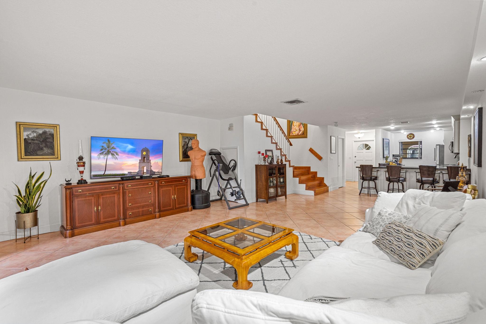 Stunning lake & golf views with expansive green backyard! Modern updates throughout—tiled floors, granite kitchen with updated cabinets, recessed lighting, knockdown walls & ceilings, and renovated bathrooms. Upstairs atrium and master suite offer breathtaking sunrise & sunset views. Ample parking for 2 cars plus guests. Costa del Sol amenities include clubhouse, 18-hole golf course, lakeside restaurant, tennis, basketball, pool, and jogging path—ideal for an active lifestyle. On-site management, 24-hr security & guardhouse for peace of mind. Maintenance covers water, HD cable, internet, exterior & roof insurance, driveway, paint, trash, landscaping & common areas.