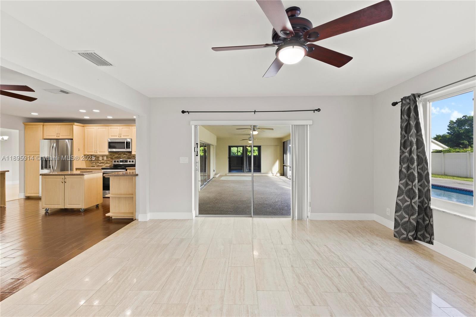Stunning one-story 5-bed, 4-bath home with a multi-purpose room and open floor plan filled with natural light. Features include a spacious living room with accent wall and recessed lighting, large kitchen with granite countertops, stainless steel appliances, and renovated bathrooms with quartz counters and spa benches. Enjoy a huge patio, saltwater pool, and private fenced yard—suitable for entertaining. Includes hurricane-proof windows/doors, 2-car garage, and space for 8 cars. Located in a serene, family-friendly neighborhood with A-rated schools, near shopping, dining, entertainment, highways, airport, and the beach. Don’t miss this incredible opportunity!