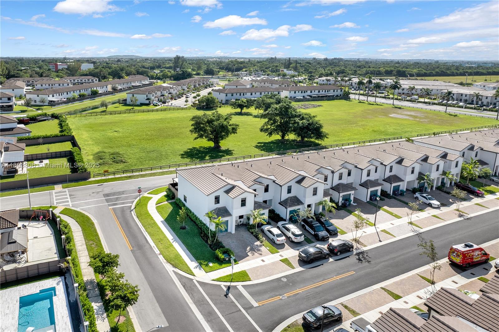 Rare end-unit 2-story townhome with garage in Southwest Miami showcasing high-end upgrades throughout. This sought-after Lennar model now sells from $569K with no upgrades, making this $519K resale an exceptional value. Enjoy open living spaces, a soaring 20’ foyer, and a designer kitchen flowing into a private backyard oasis with pergola, dual fans, turf, and concrete flooring. Full hurricane-impact windows and doors provide safety, efficiency, and peace of mind. Upstairs, the deluxe primary suite overlooks a lush 5-acre park with spa shower and walk-in closet. Modern finishes include granite counters, stainless appliances, tankless water heater, remote blinds, and marble sills. Clubhouse open—featuring resort-style pool, gym, hot tub, and playground.