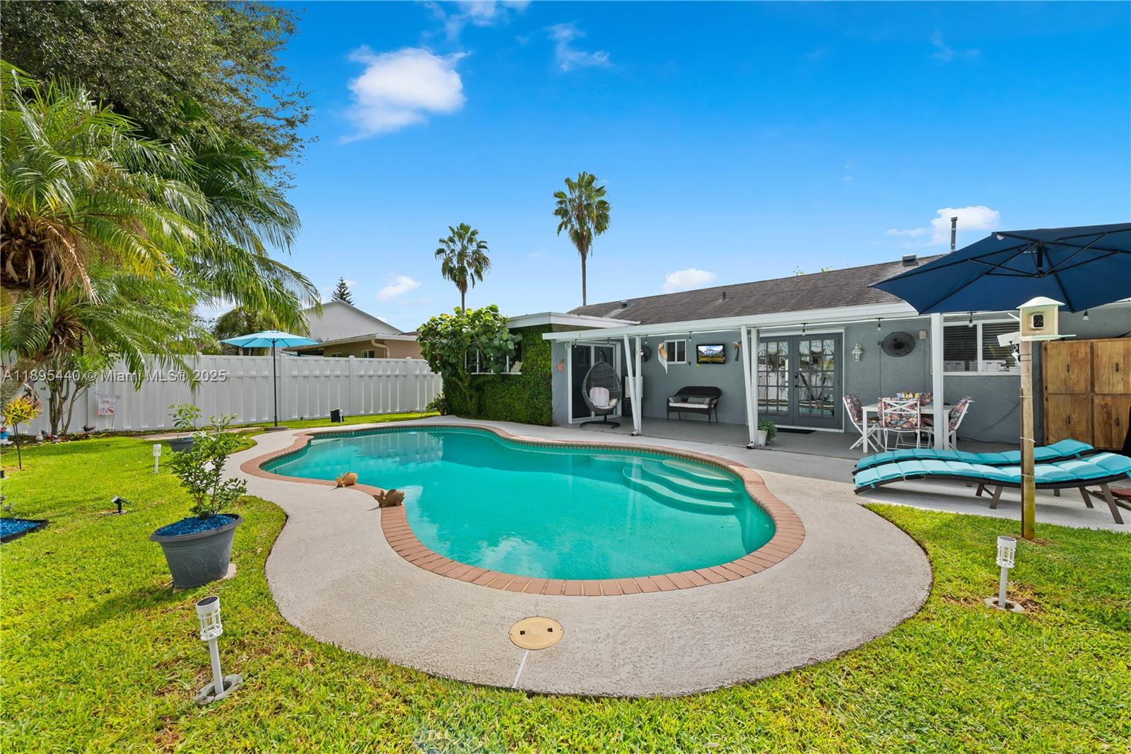 Located in west Sunrise just minutes from the Sawgrass Expressway & with no HOA, this 1-story home at 1,547 Total SQFT features 3 bedrooms, w/ an extra room off the primary bedroom, 2 updated bathrooms, free form pool, an updated kitchen w/ granite counters & backsplash, stainless steel appliances & gas stove, newer HVAC (2024) and a 2017 shingle roof. Additional features include a double wide driveway w/ pavers, 6ft PVC fenced back yard, complete hurricane protection w/ impact windows & impact rated front door, hurricane panels for the French Doors & Sliding Glass Doors, and a large covered patio w/ additional outdoor entertainment areas & complete privacy in the back yard. Close to Sawgrass, Welleby Park, Dog Park, Sunrise Athletic Complex & easy access to Sawgrass Expressway & I-595.