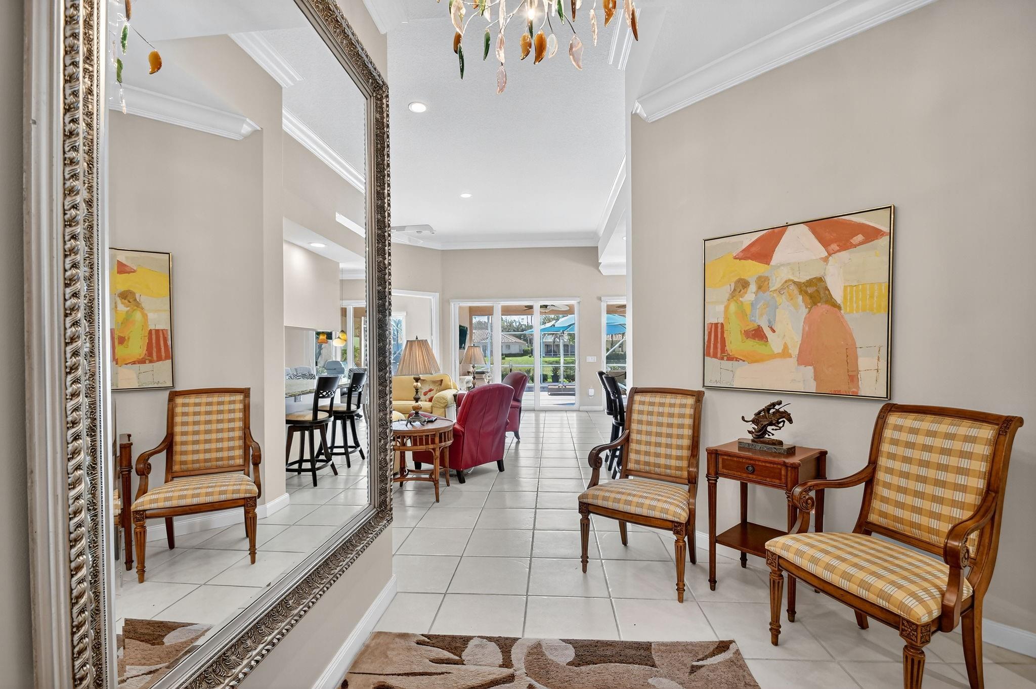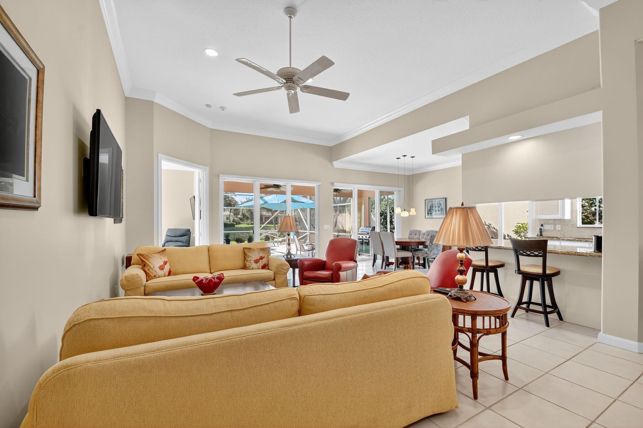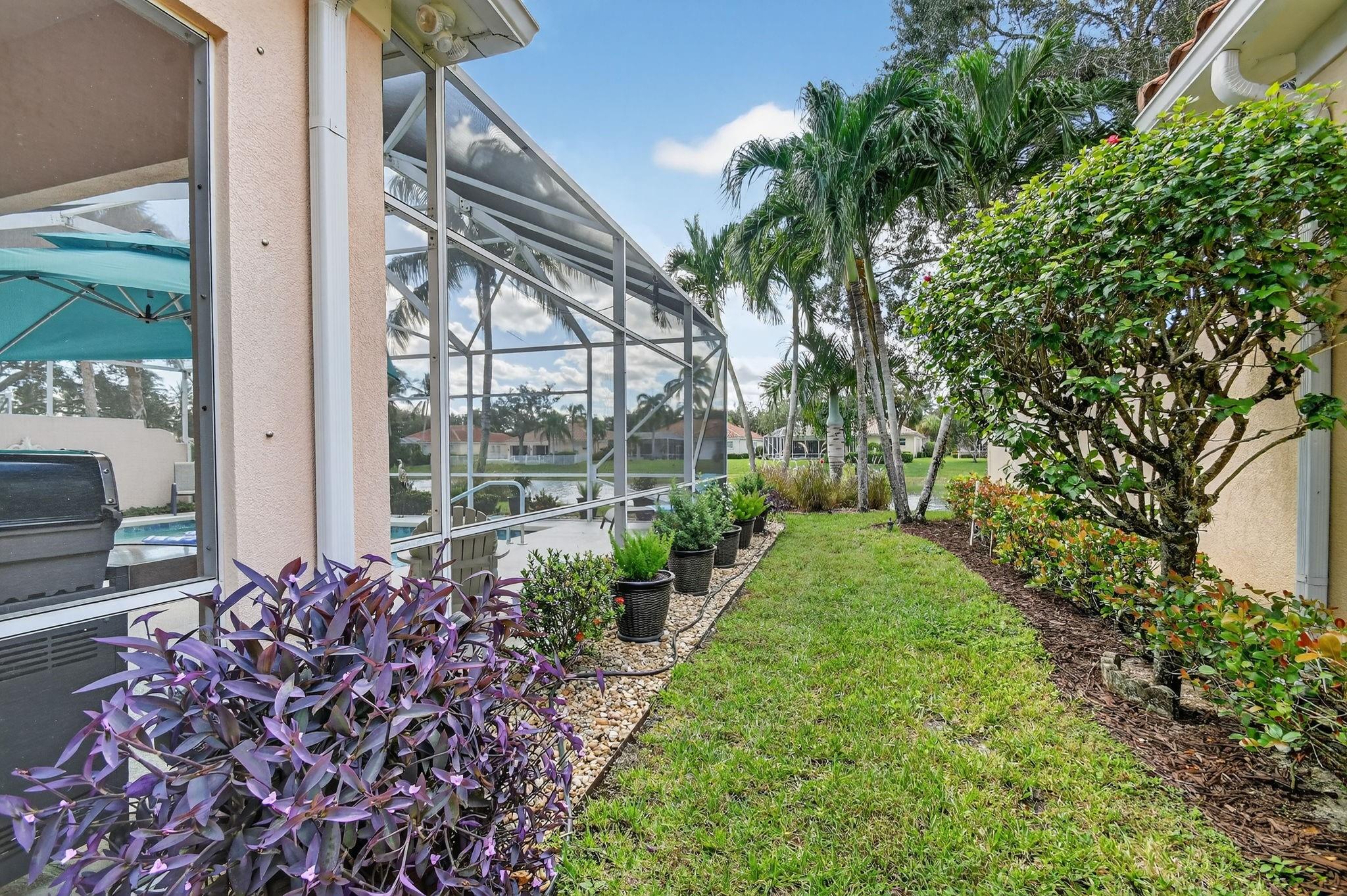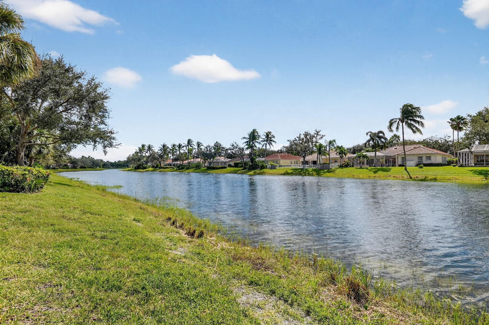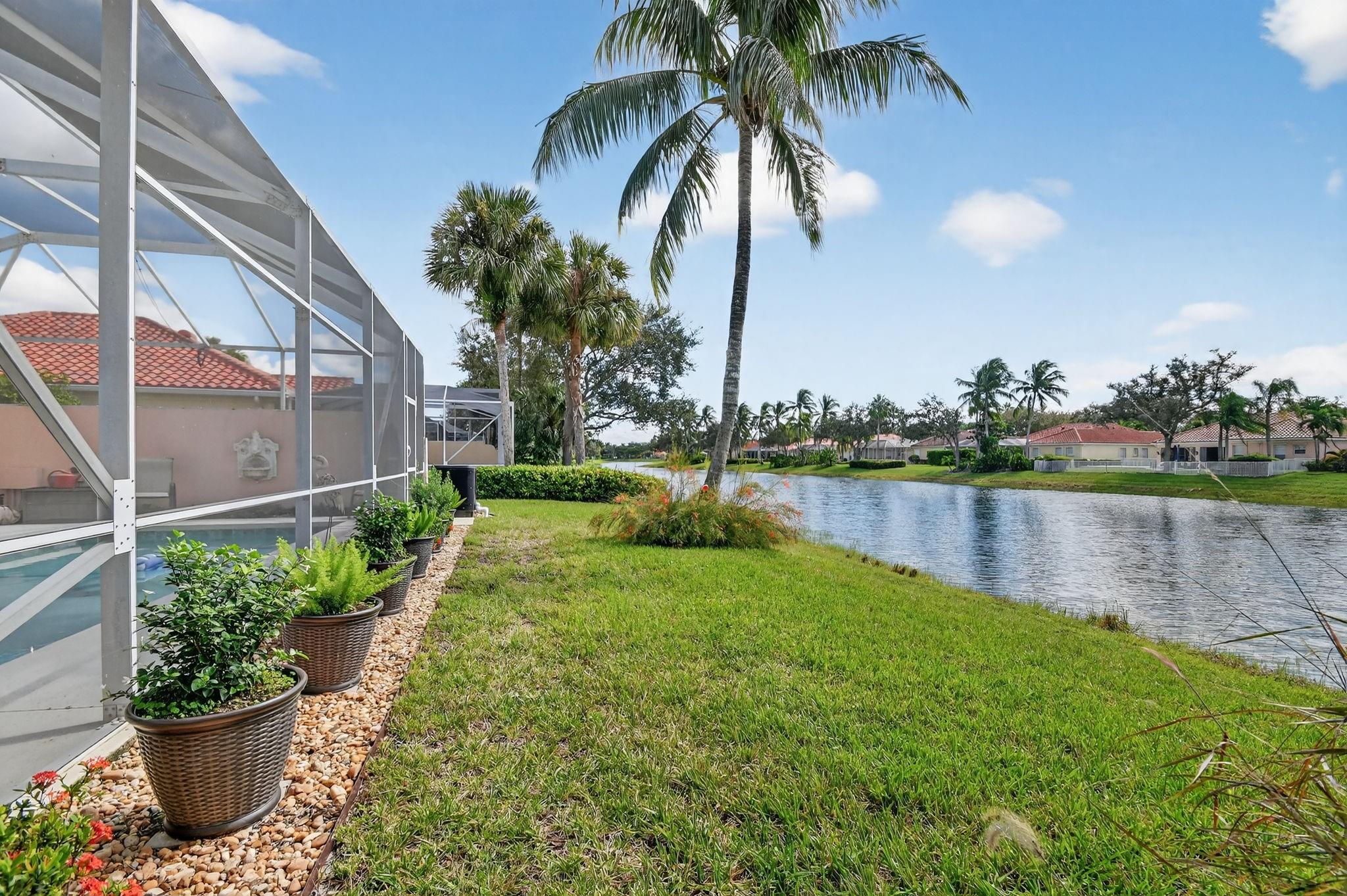 Welcome to Riverwalk! This Oakmont checks every box; Roof (2021), all Impact sliders (2022), Private Heated Saltwater Pool, Waterfront home, huge screened in patio & professional landscaping. Your new home has 3 bedrooms & office/den which could be a 4th bedroom should you desire. From the entry, walk in to 12 ft. ceilings, adorned w/crown moulding & recessed lighting throughout. 18 ft of impact glass doors for a clear lake & pool view. The two sets of triple pocket sliding doors create a true indoor/outdoor living space right in your home. Riverwalk offers a luxury lifestyle without the membership price. Offers Fitness Center, Tennis, Pickle Ball, Yoga, plethora of clubs & restaurant. Located in the heart of Palm Beach West, a short drive to beach, downtown, airport, fine dining, shops.