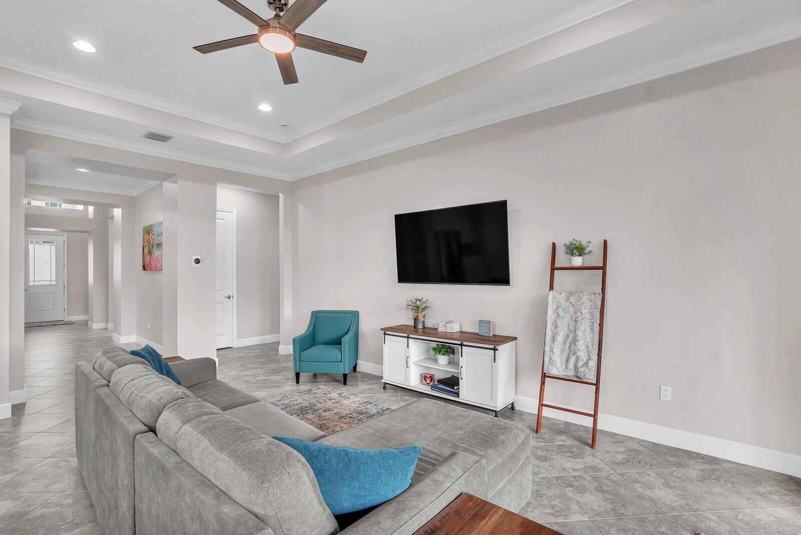 Welcome to this stunning Schefflera model in The Orchards of Westlake, offering 2,305 sqft of beautifully designed living space with 3 bedrooms plus a den, 2.5 bathrooms, and a 2-car garage. Every detail has been cared for with intention, creating a clean, comfortable space that feels like home the moment you step inside.Featuring full hurricane impact protection and extra added insulation for comfort and efficiency, this home also showcases ceramic tile flooring throughout. The bright kitchen offers white shaker cabinets, quartz countertops, stainless steel appliances, a gas range, and an extended island with a spacious corner pantry. The countertop is also extended for a convenient buffet-style setup--perfect for entertaining.