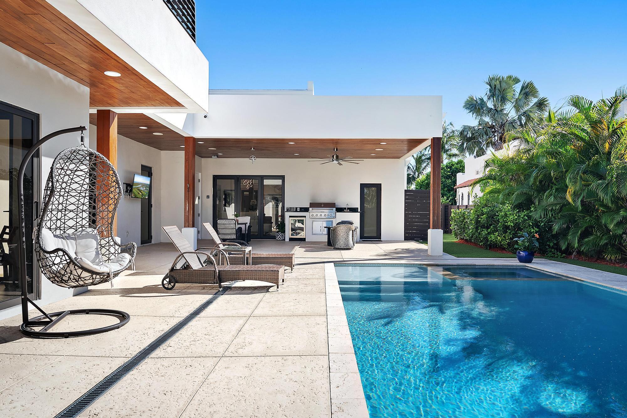 Welcome to a beautiful, newly built, modern home on one of Lake Worth Beach's most desirable streets located minutes from the ocean and downtown West Palm Beach. Enjoy direct access to the lakefront directly across the street, offering views of the par-3 golf course on Palm Beach Island across the intracoastal. This property offers the best of South Florida living with top-quality construction. Inside, you'll find bright, open spaces with soaring 16-foot ceilings in the main living area and 10-foot ceilings throughout. The layout includes four bedrooms and three full bathrooms with sleek and modern finishes. The backyard is a private retreat with a pool and spa surrounded by an inviting outdoor living area, outdoor kitchen, and a covered patio with ceiling fans.