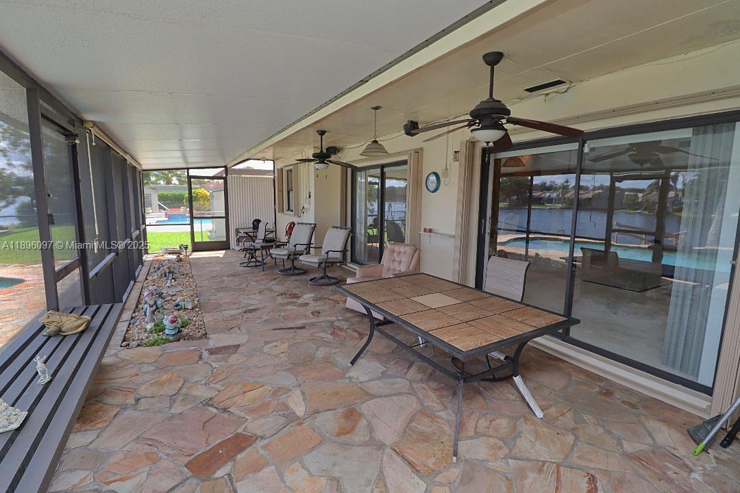 Spectacular lakefront location on one of the areas largest lakes, You can always remodel a home, but you can't build a lake, Spacious Buttonwood model, Great room concept with vaulted ceilings, Garage converted to a media room, EZ to reconvert, Frosted glass impact front door, New AC unit 2024, All furniture and accessories included as placed, New electric pool heater 2024, Huge covered screened patio, New roof 2025, Dock redecked, Wide paver tile driveway