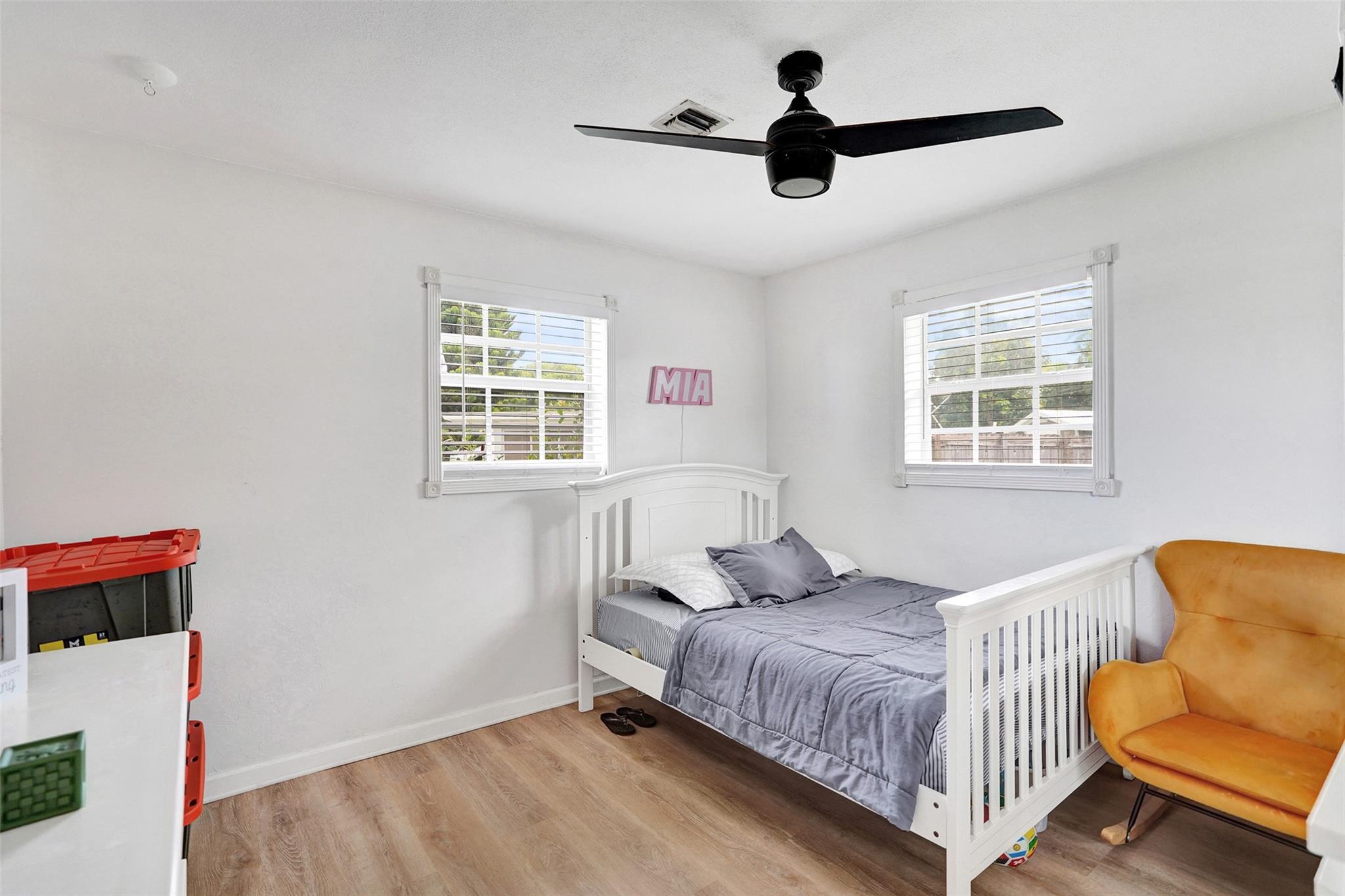 Move-in ready 2-bedroom, 1-bath single-family home situated on a corner lot with no HOA. Features include a newer roof, impact windows, and a bright open floor plan. The remodeled kitchen boasts quartz countertops, stainless steel appliances, white shaker cabinets, and pendant lighting. The backyard is fully fenced with plenty of space for a pool, patio, or playset. Additional highlights include a covered carport, outdoor sitting area, and storage shed. Close to schools, parks, and shopping.