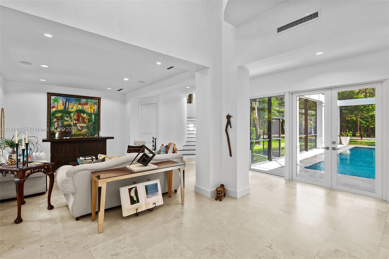 North Pinecrest Estate on a sprawling 48,717 sf lot. This elegant 7 bed, 7.5 bath residence offers a unique floorplan distribution with two separate bedroom wings ideal for an extended family or visiting guests. The east wing encompasses a luxurious primary bedroom & bath w/ spacious closets plus 3 generous bdrms w/ on-suite baths. The west wing/in law/guest quarters offers a spacious (1,000 sf) 2 bdrms, 1 bath & it's own family room & kitchen area with separate entrance. Other features include an oversized modern kitchen open to family room & outdoor patio perfect for entertaining, secure & gated entrance w/ oversized circular drive, porte-cochere for 4 cars , 3 car garage w/11 ft ceilings ideal for 3 sport car lifts, 1,400 bottle temp. controlled wine room, owner financing available.
