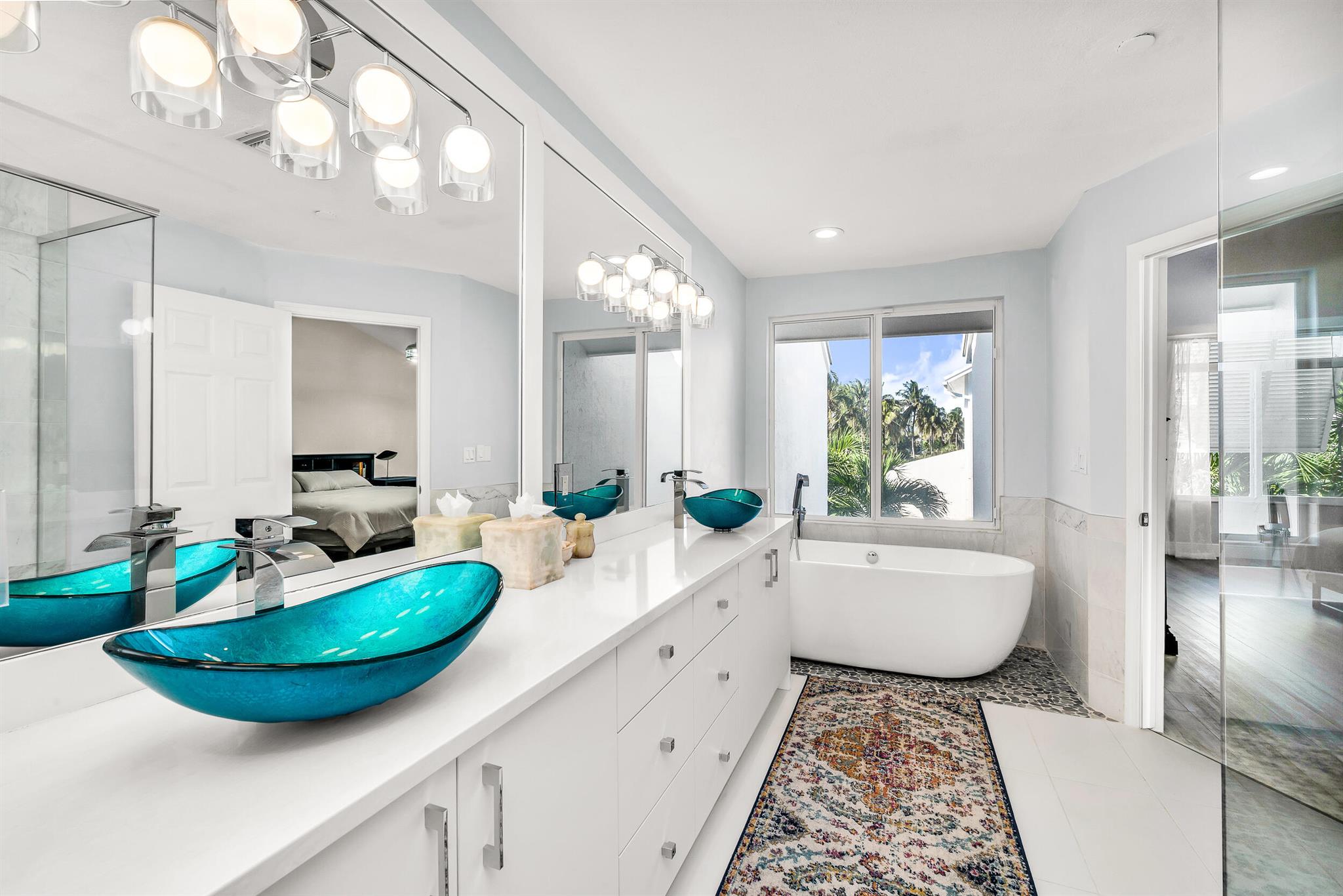 Discover this stylish 3BR, 2.5-bath townhouse just steps from the ocean in Delray Beach's coveted seaside enclave! The modern kitchen features sleek cabinetry, Cambria Quartz counters, and a custom waterfall island. Bright, airy living spaces with large porcelain floors, hurricane impact windows, designer lighting, and a white oak and glass stair railing create a fresh, coastal feel throughout. The master suite offers a spa-like bath with dual vessel sinks, marble surrounds, and an air-jetted tub. Enjoy a private backyard patio, custom beverage bar, steam washer/dryer, one-car garage, a roof replaced within six years, and recently updated AC units. With private beach access and oceanfront club amenities, this home delivers the ultimate Delray Beach lifestyle.