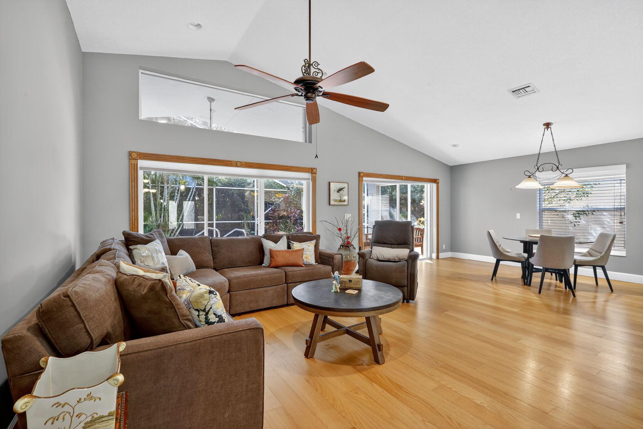 Welcome to your slice of paradise. This lovely 2/2 plus den, well-maintained pool home offers the perfect blend of comfort and style, nestled in one of the area's desirable active adult communities. This home invites you to enjoy every day to the fullest. Wood flooring, lots of kitchen counter space and a very open contemporary design floor plan, this is a true entertaining home. Enjoy the Florida lifestyle on your oversized screen enclosed pool patio! Great community amenities includes pickleball, tennis, indoor and outdoor pool, cafe, card rooms, entertainment, fitness center and much more. Bellaggio is an undisputed leader in planned community living featuring 10 Har-Tru lighted tennis courts with stadium seating, 4 pickleball courts with interclub leagues, a pro shop, multiple ca