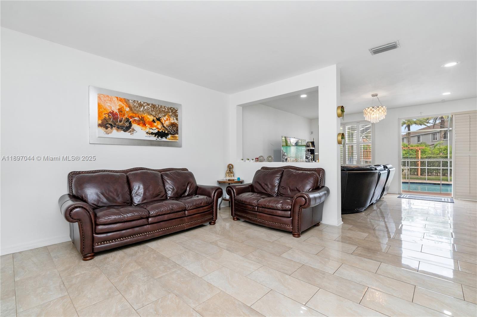 Discover the best value in Weston! Situated on a spacious pie-shaped lot, this partially updated home offers a generous backyard space, perfect for outdoor living and entertaining. The home features elegant porcelain tile throughout, providing a sleek and modern feel. Enjoy a remodeled bathroom (2022) with stylish porcelain tiles, and a kitchen that boasts granite countertops, 42” wood cabinets, and ample storage. All windows are adorned with beautiful plantation shutters, adding a touch of sophistication. The serene pool area offers a private oasis for relaxation. Located in the highly sought-after community of The Ridges, this home blends comfort, style, and convenience, with easy access to major highways and top-rated schools. All at the most affordable price in the area.