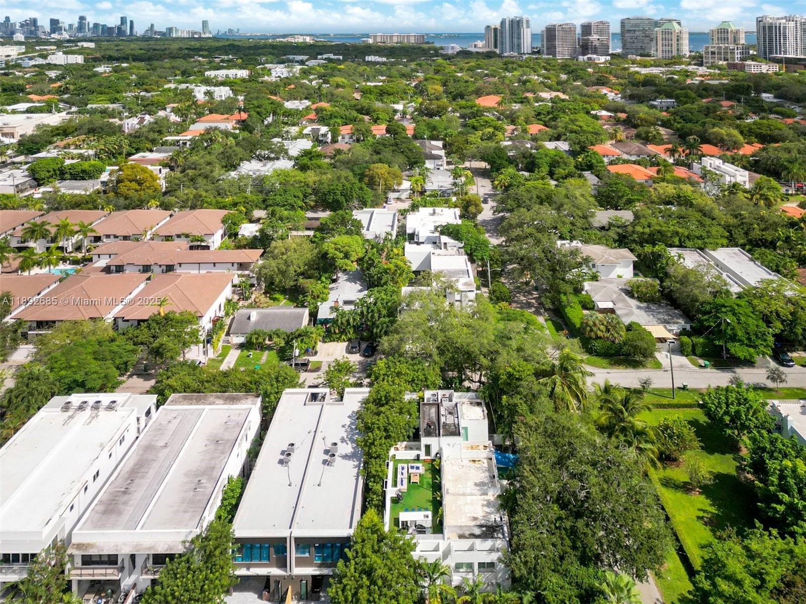 The "Glasshouse" is a modern architectural gem in the heart of Coconut Grove! This striking corner townhome offers 3 bedrooms, 3.5 baths, and a huge private rooftop terrace with a new entertaining kitchen island—perfect for gatherings under the stars. Light-filled interiors feature 11-ft ceilings, Italian travertine floors, and floor-to-ceiling impact glass for seamless indoor-outdoor living. The gourmet kitchen boasts stainless steel appliances, a gas cooktop, and ample cabinetry. The primary suite includes a Jacuzzi and a double shower. The lush outdoor oasis features a tranquil water feature. Additional highlights: two balconies, a full laundry room, walled and gated privacy, and a rear-entry two-car garage with direct kitchen access—all with no shared maintenance fees.
