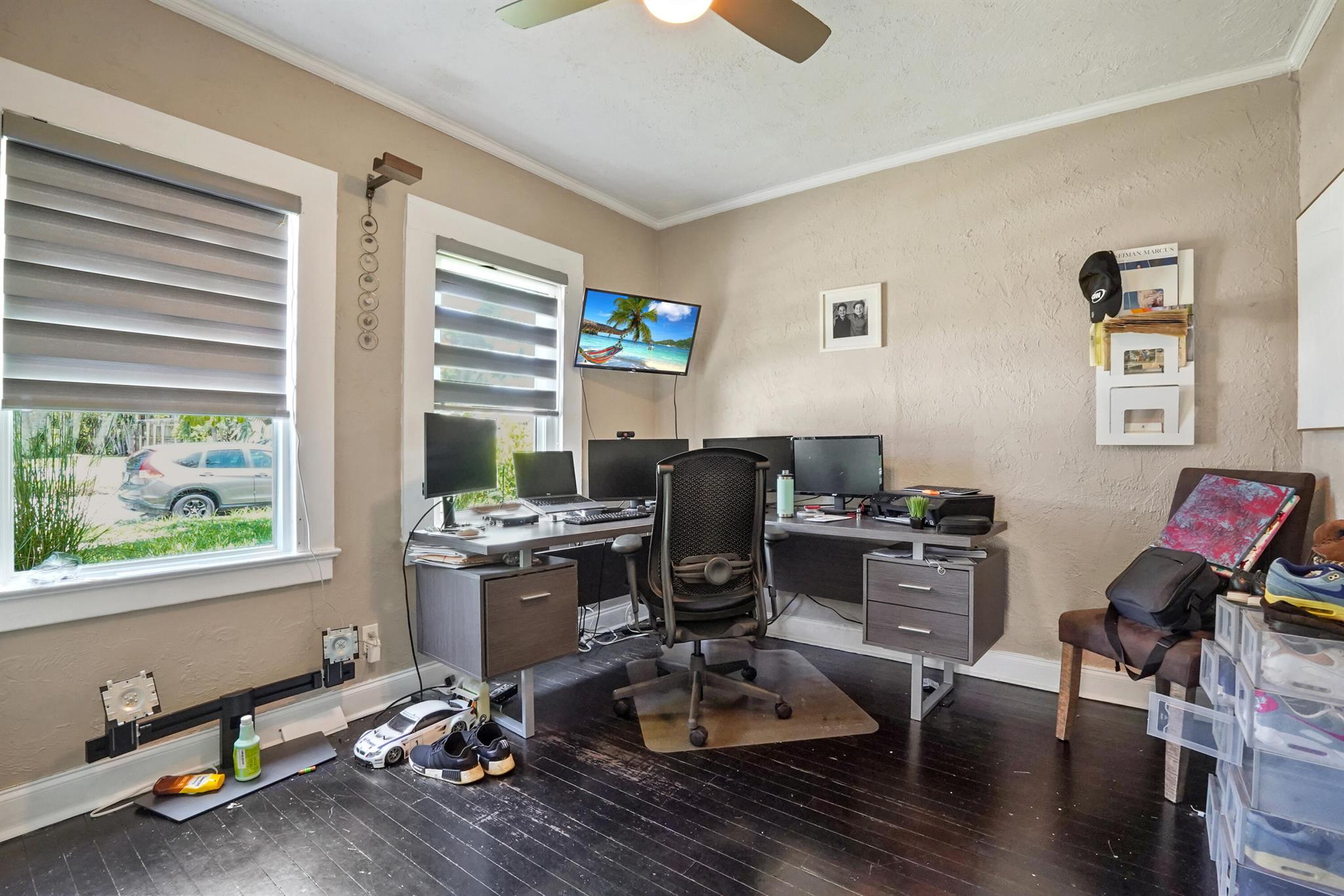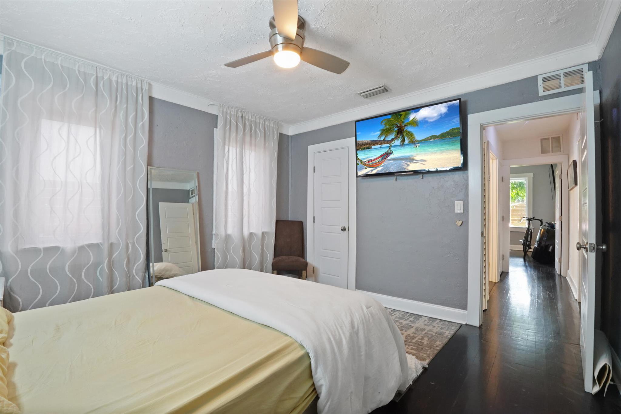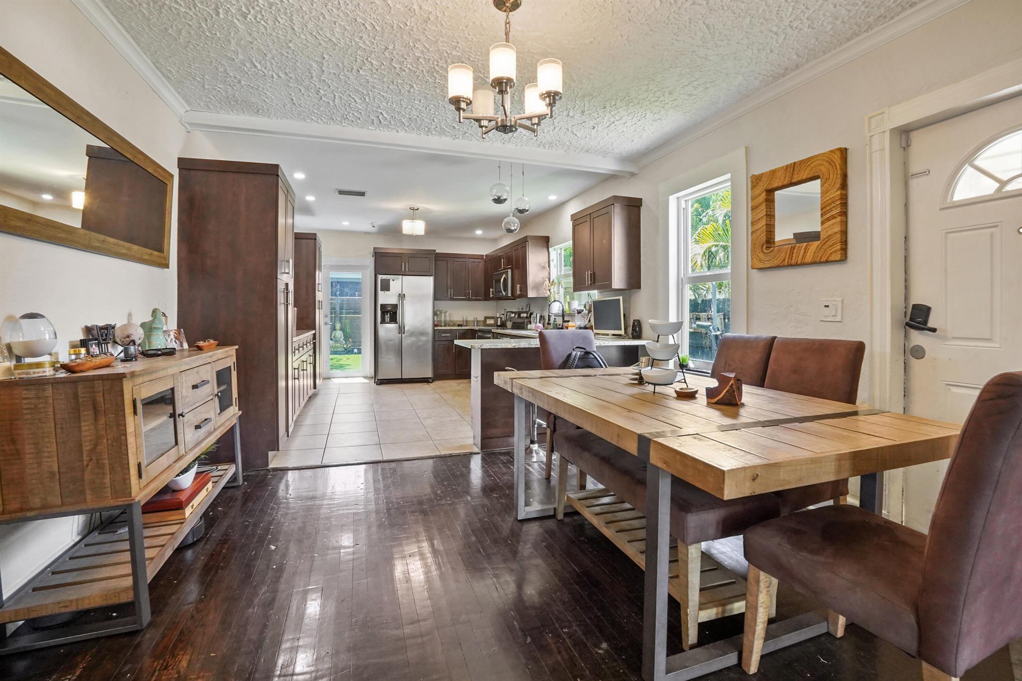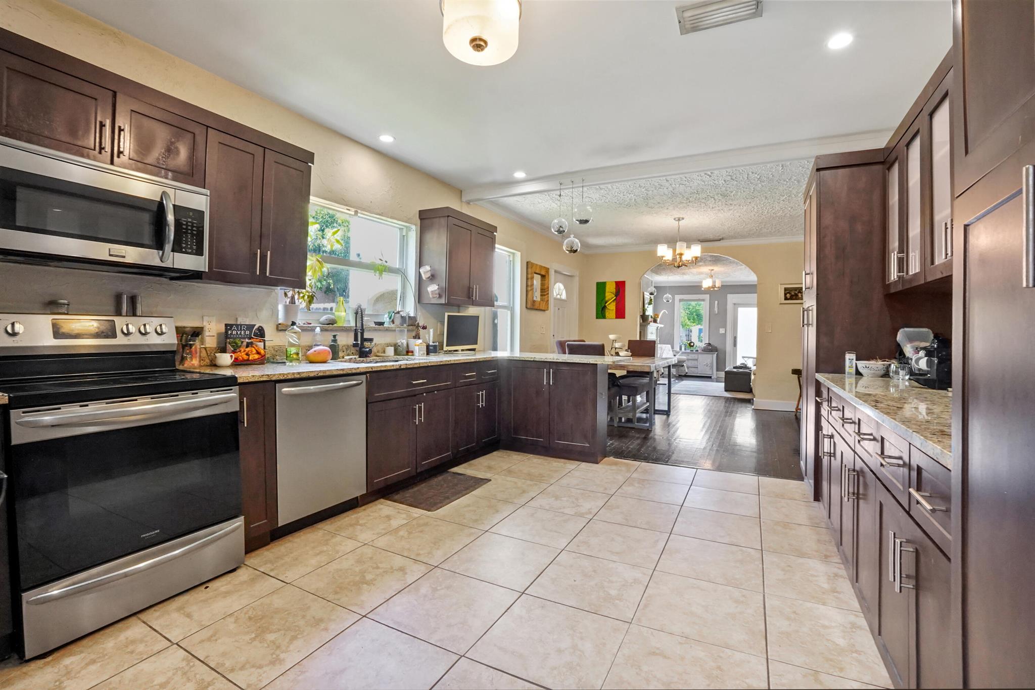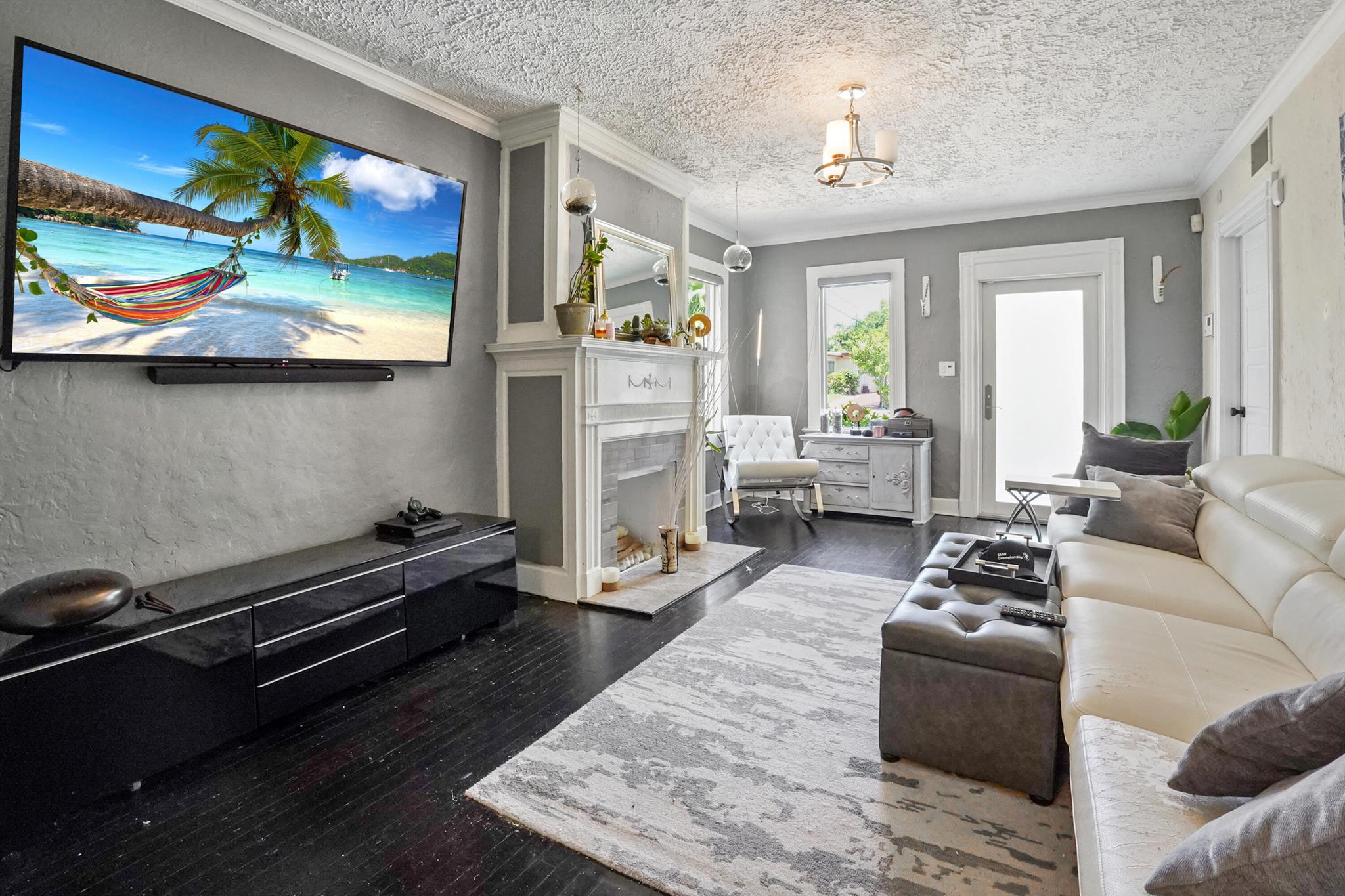 Step into this enchanting home, where beachy chic seamlessly blends with historic elegance. Located on Garden Avenue, this residence offers a spacious open kitchen featuring granite countertops and stainless steel appliances. The airy flow from the living to the dining and kitchen areas creates an inviting atmosphere perfect for both entertaining and everyday living. New AC - 2023. Impact windows and doors throughout. The home boasts restored dark hardwood floors, graceful arches, and a stately mantle, capturing the essence of Spanish style. The bright and cheerful interior adds a modern touch to the classic design. Each bedroom is equipped with lights and fans with remote controls for added convenience.