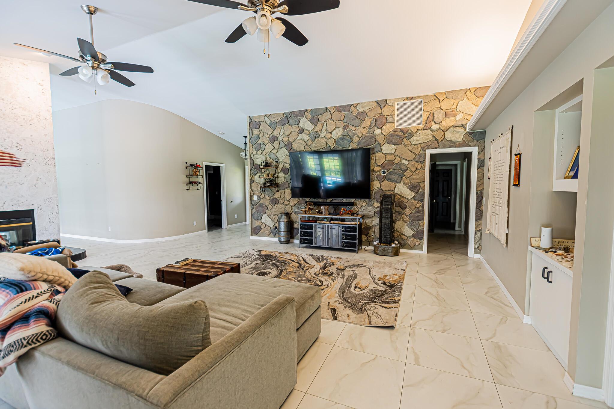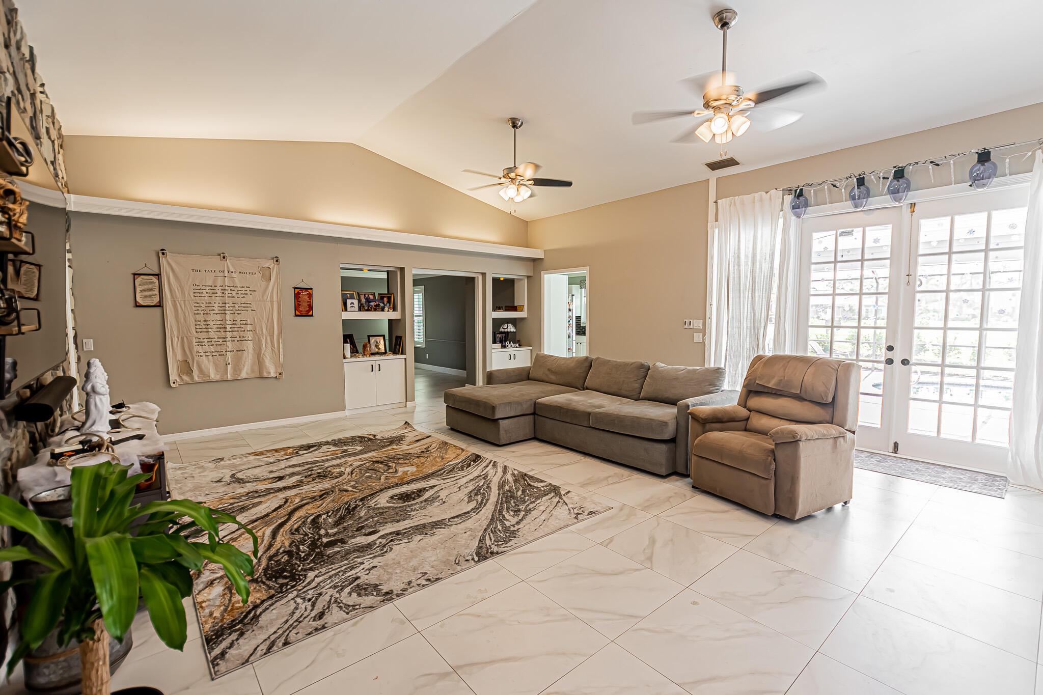 AMAZING GOLF FRONT POOL HOME IN COUNTRY CLUB ESTATES! Impressive 3BR/2.5BA/2.5CG custom home featuring a stunning 2-sided sandstone gas fireplace, 24x24 ceramic tile floors, and wood-look tile in bedrooms. Beautiful kitchen with wood cabinets, granite counters, SS appliances & shiplap ceiling. Updated baths, plantation shutters & formal dining w/tray ceiling. French doors open to a screened gas-heated pool & lanai overlooking the golf course. 2018 roof, impact windows & zoned A/Cs. Prime St. Lucie West location near shopping, dining & I-95!