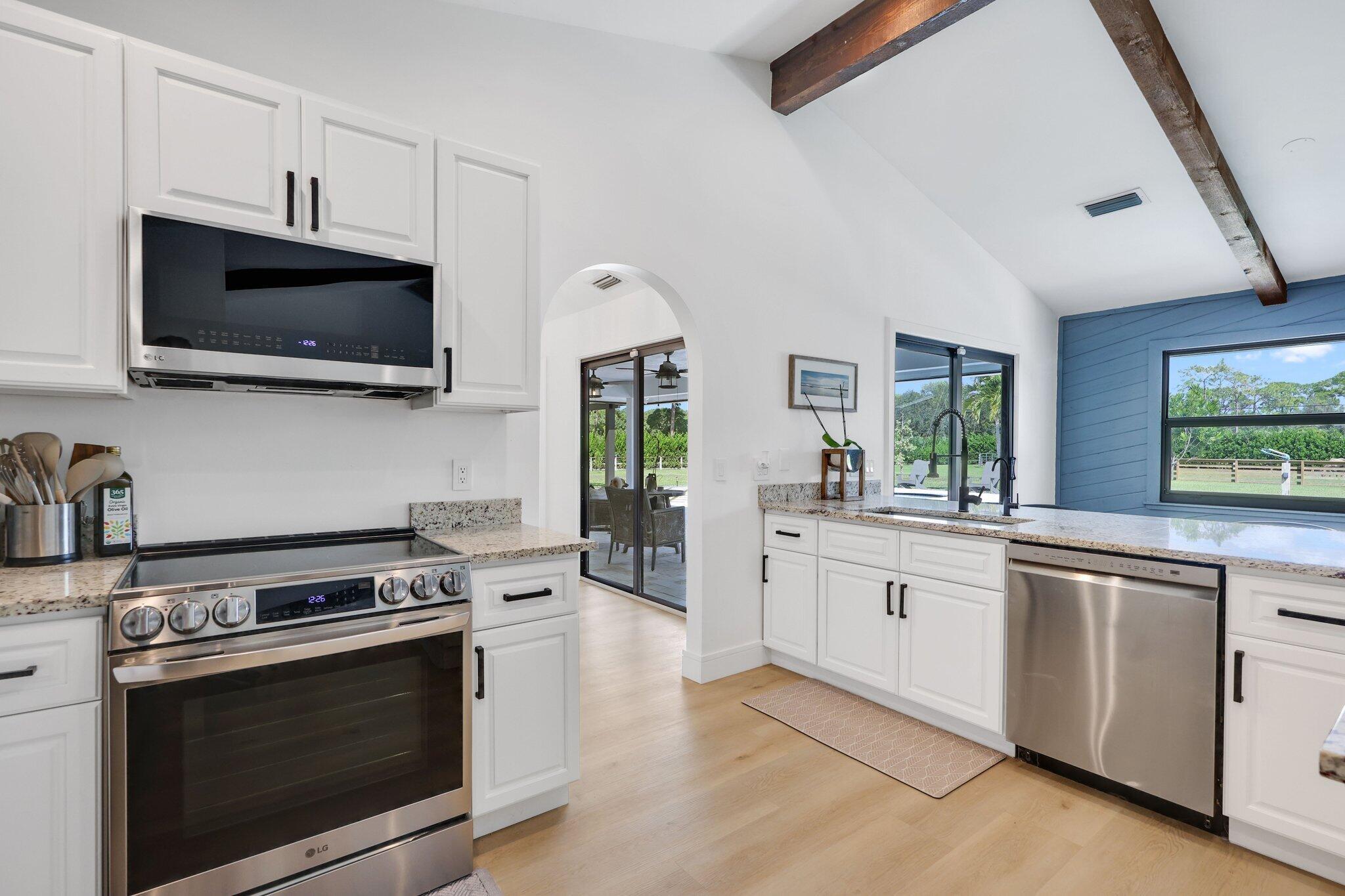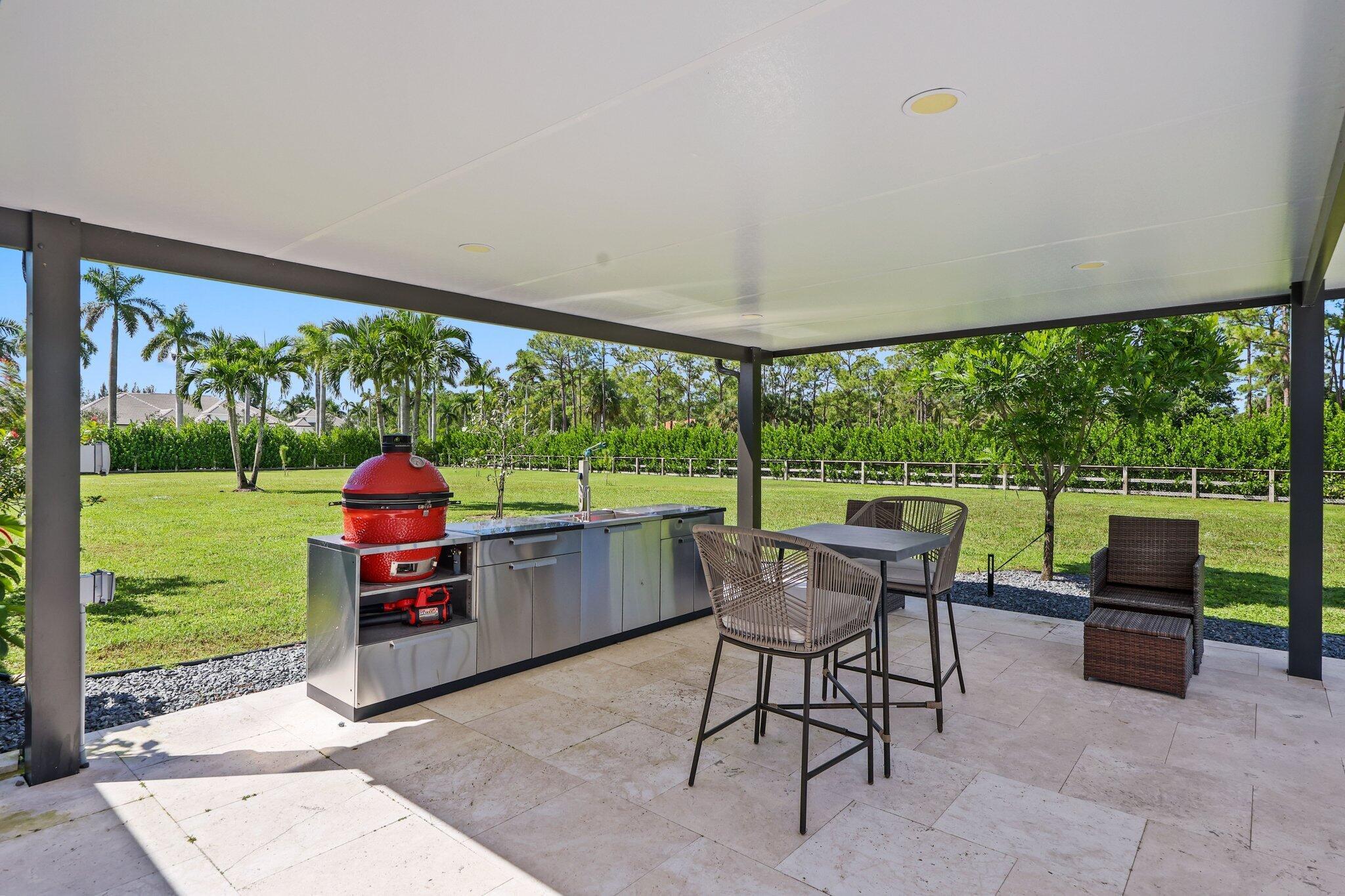 Welcome to your equestrian paradise in the prestigious community of Caloosa. This stunning property spans over 5 acres of serene landscape, which surround your 4 bed, 3 bath, completely renovated home. A brand new pool deck, summer kitchen, and outdoor fitness area highlight some of the many recent upgrades, and provide for an endless entertainment landscape.Outside, equestrians will delight in the brand-new barn, which can accommodate up to 10 horse stalls if desired. Currently, the property has 2 stalls already in place. The lush landscaping and majestic palm trees provide a picturesque setting for unmatched privacy.A newly installed roof and a grand, sweeping driveway add both practicality and charm to this exclusive retreat