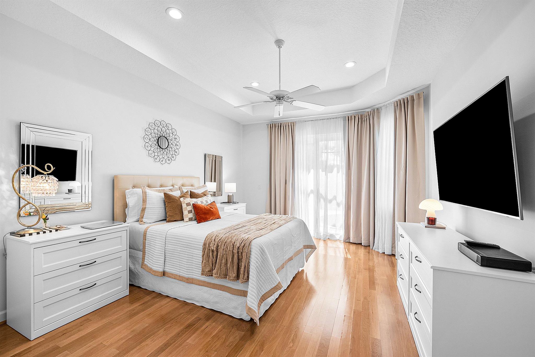 Gorgeous Augusta model built by Centerline homes, here in Polo Trace. Formerly a builder's model, with all the extras. This home has been elegantly updated and offers a great balance of openness with style. Extras include: full kitchen cabinetry to the ceiling, vented hood, high-end appliances, bar area, custom lighting/sconces, custom drapery/blinds, built-out closets, reverse osmosis water filtration system, A/C in the garage with extra storage/golf cart parking. The private pool/patio is fully screened in and was built in 2019, featuring travertine decking, heated and salt water chlorinator, and a power awning over covered space. The active community is fully equipped with pickleball, tennis, 3 pools, hot tub, events, shows, gym, a full restaurant/bar, and 24/7 guard-gated entry.