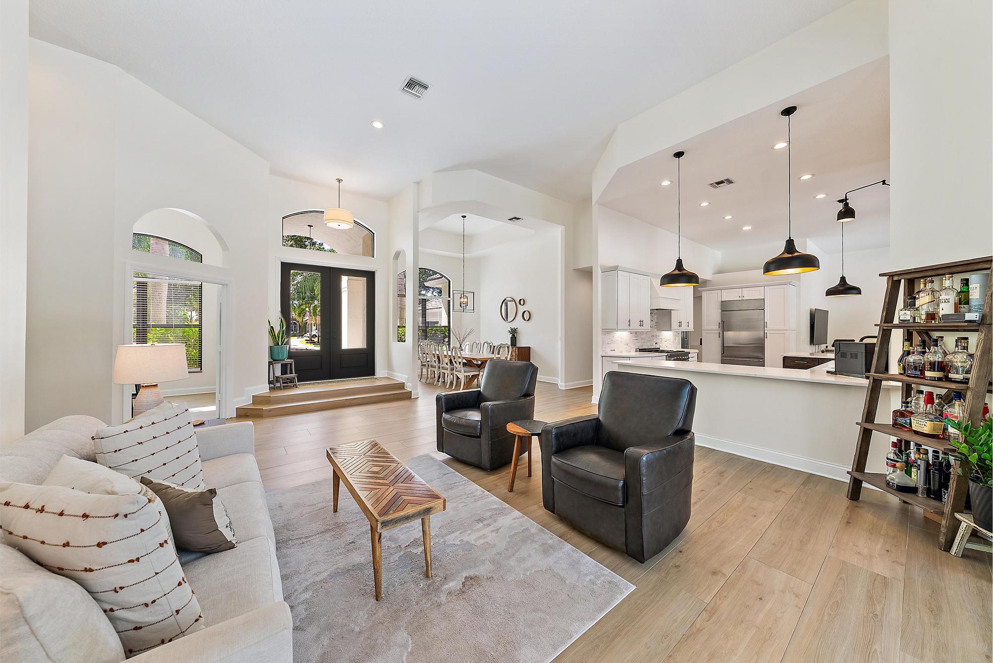 Set on one of the largest and most private lots in Bay Hill Estates--an extraordinary 290 feet by 170 feet--this stunning single-story home at 11771 Stonehaven Way offers an unparalleled blend of space, privacy, and contemporary comfort. Surrounded by lush landscaping and tranquil lake views, this 3,242-square-foot residence is a rare opportunity to own one of the community's most impressive properties. A sweeping circular driveway and three-car garage create a grand sense of arrival, while inside, soaring ceilings and walls of glass fill the home with natural light. The thoughtful split floor plan includes four spacious bedrooms, a den/office, three full baths, and two half baths--offering the perfect balance of openness and privacy.