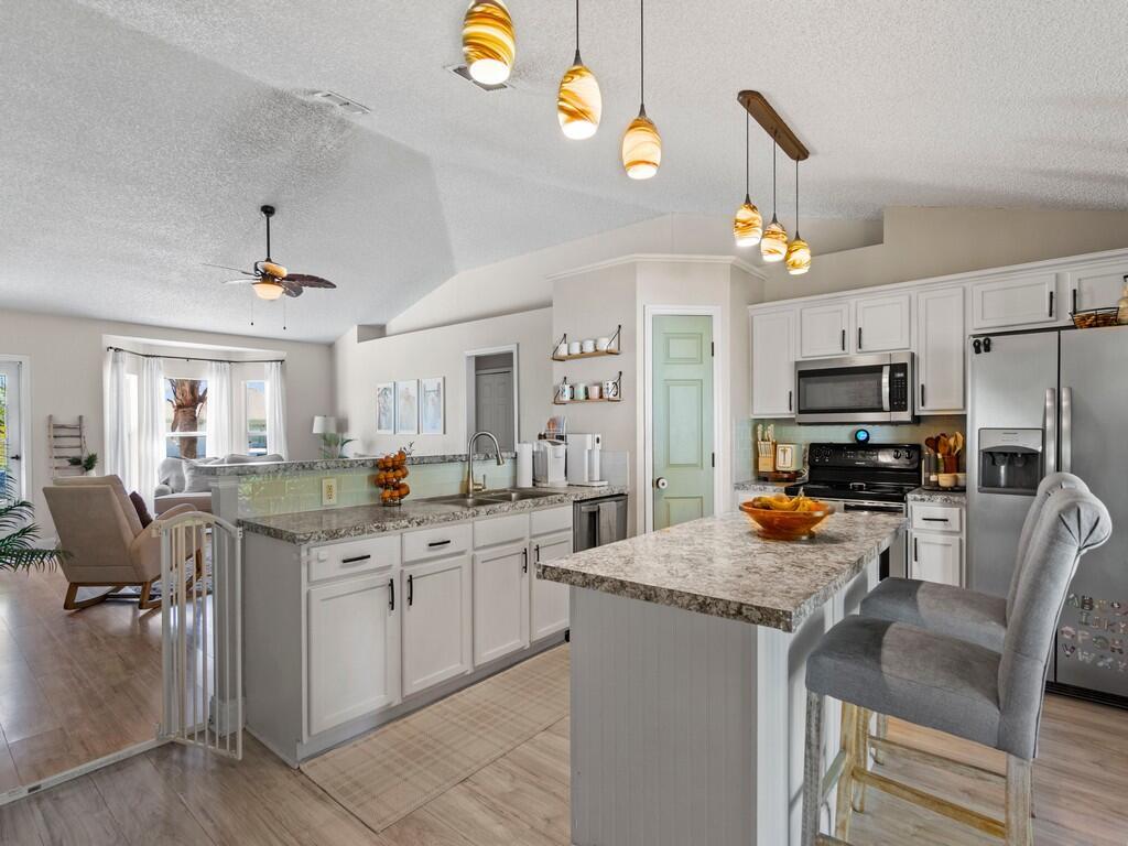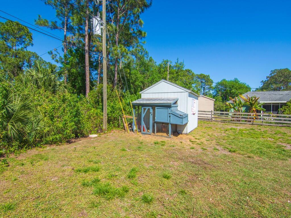 Cozy and well maintained home in convenient location just minutes to I-95 and shopping. NO HOA. Metal roof 2022, Trane AC 2021 and water heater 2021 = peace of mind for years to come. Super large island kitchen w/ pantry & stainless steel appliances opens up to dining and living area. MAN CAVE garage is air conditioned, offers additional space but can easily be converted back.is tub/shower combo w/ full size jetted tub in master bath. Spacious, screened back porch is lined with artificial turf. Chicken coop w/chicken in the back yard may convey. Extra cabinets in the laundry closet.