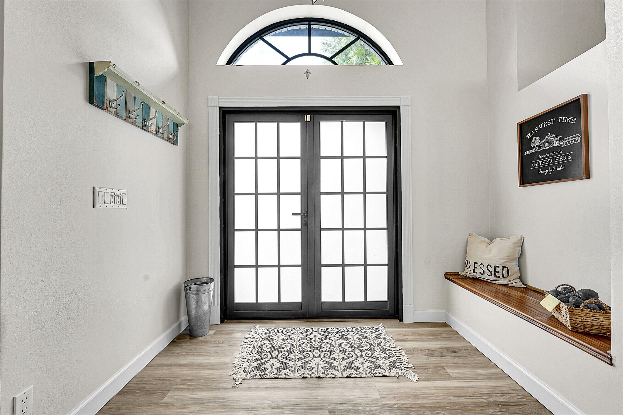 Frenchman's Fancy! Turnkey single story home w/Split floor plan. Featuring 4 Bedrooms, 2 Full Bathrooms. Vaulted Ceilings, Impact Windows, Hardie board siding, Luxury Vinyl Plank flooring. Cement tile roof (2021) New AC (2024), Tankless HWH (2022). Open kitchen concept w/White shaker-style cabinetry and newer granite countertops. Eat-in breakfast nook and top of the line, stainless steel kitchen-aide appliances. The Kitchen overlooks the Great room and features a wood burning fireplace. Formal dining room features Pecky Cypress Synergy wood ceilings. Owners' suite features renovated bathroom w/separate soaking tub & shower and huge walk-in closet. The backyard is fully fenced w/saltwater pool encased with Travertine Pavers. Covered Lanai features Pecky Cypress synergy wood ceiling