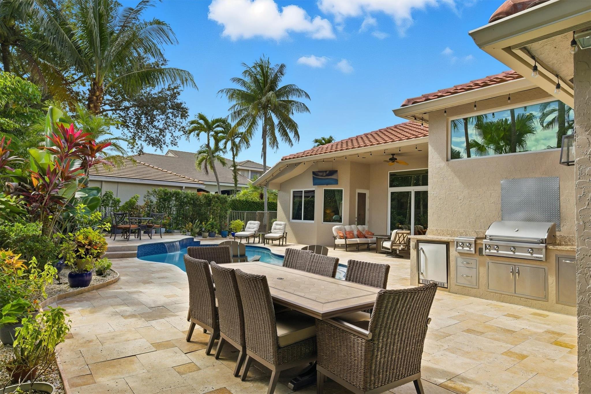 Live the dream in The Landings at Weston, a guard-gated community known for elegance and serenity. This beautifully reimagined 5-bed, 3-bath home blends timeless design with over $280K in upgrades, including a new roof, impact windows/doors, new A/C, and whole-home water filtration. Enjoy open living spaces with soaring ceilings, a gourmet kitchen, and a 3-way split plan for privacy. Step outside to your private oasis featuring a fully rebuilt saltwater pool, turfed yard, and outdoor kitchen perfect for entertaining. Zoned for A-rated schools, minutes to parks, Weston Town Center, and highways—this residence offers luxury, comfort, and peace of mind in one of Weston’s most sought-after enclaves.