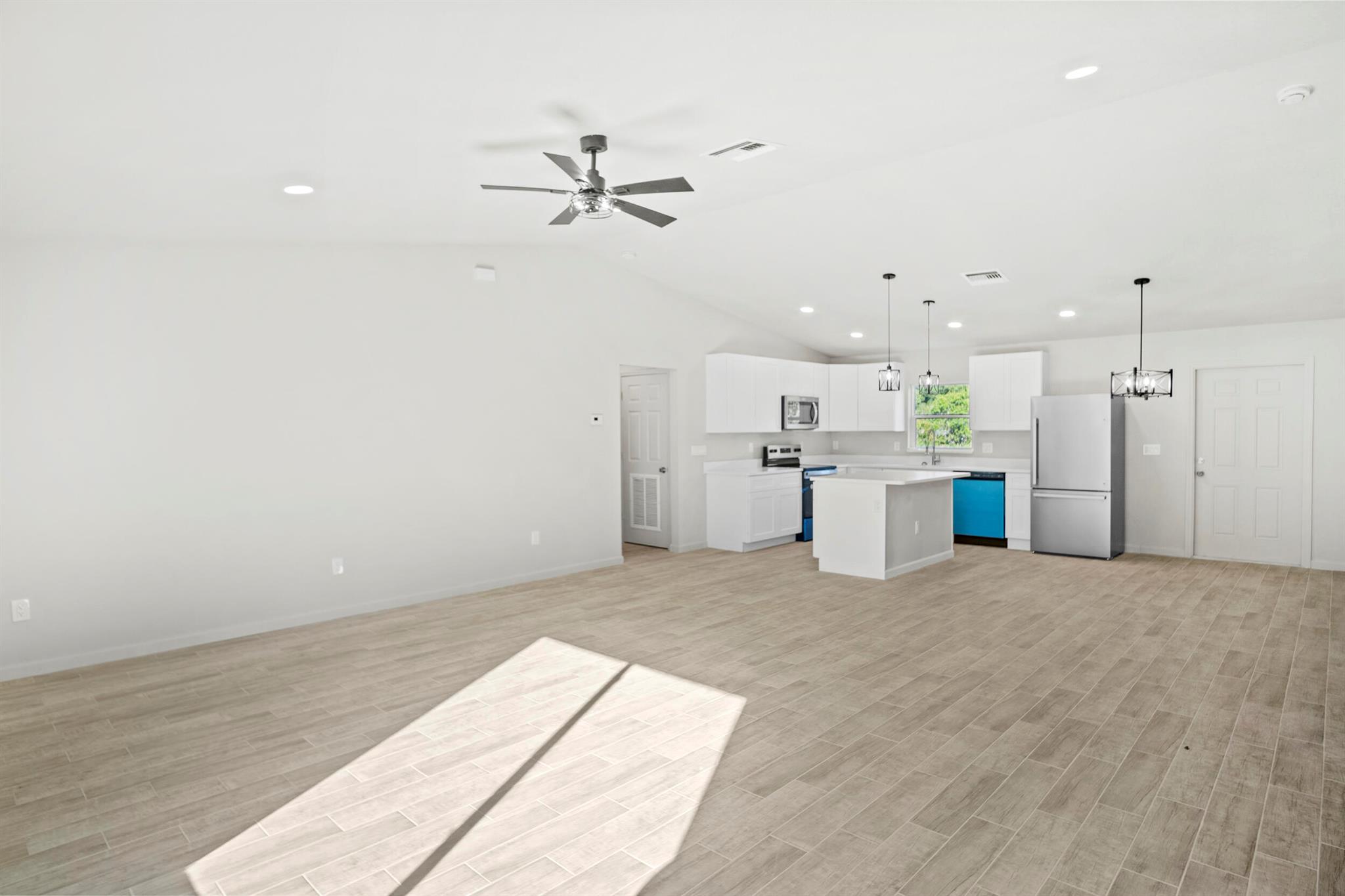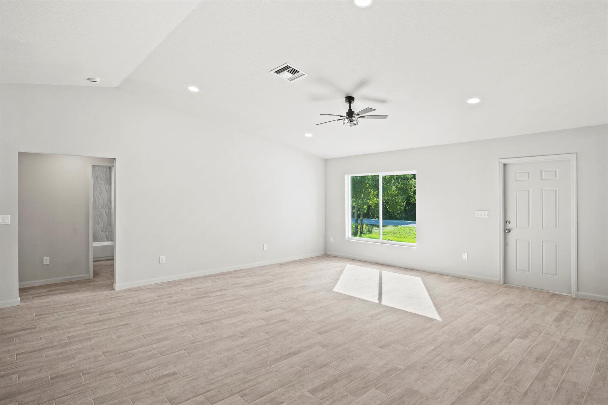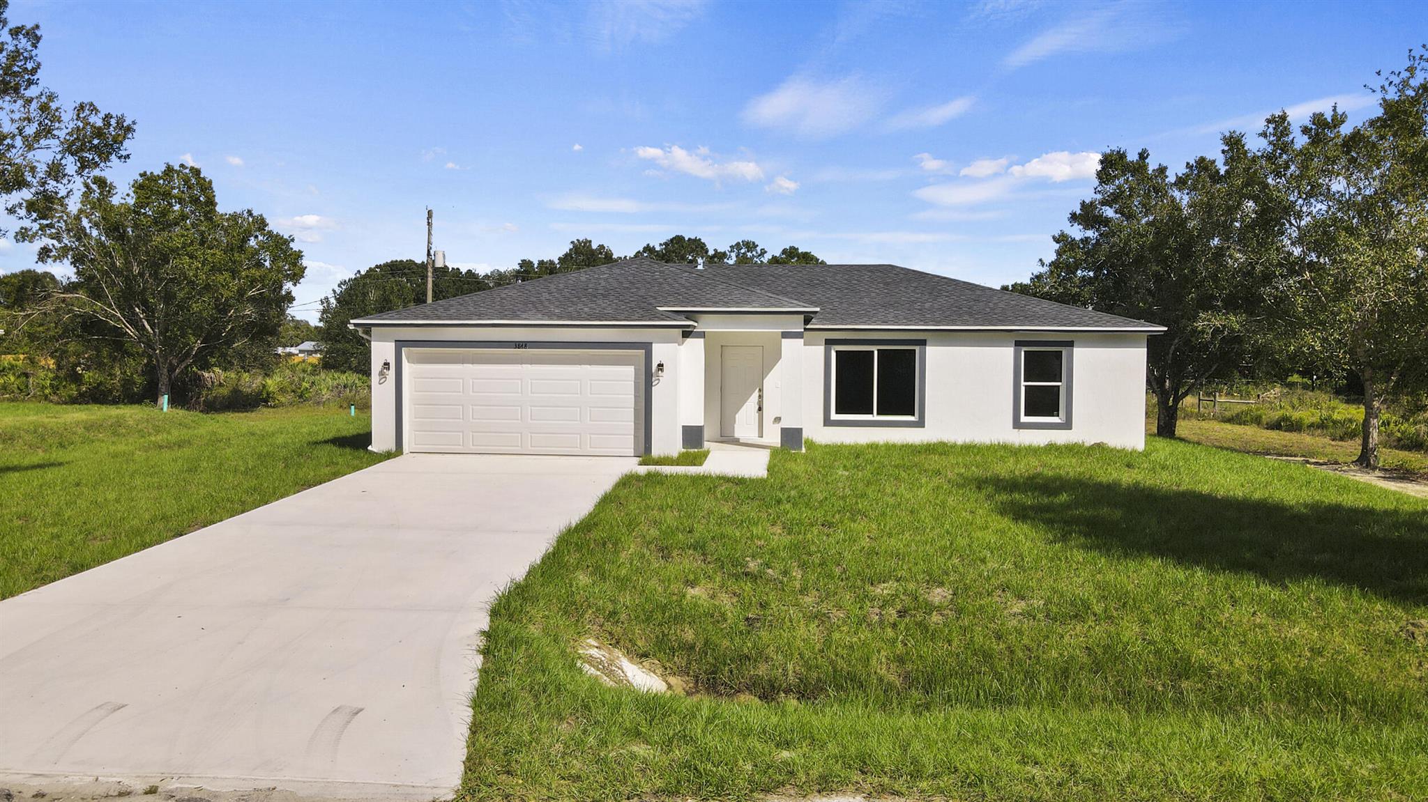 Just completed--brand new 2025 construction in the Basswood community. Expect to be impressed by this nearly 2,000 sq ft home situated on an oversized lot with no HOA. Featuring 3 bedrooms and 2 bathrooms, the split and open floor plan offers high ceilings throughout and a seamless flow. Built with architectural shingles and impact windows for durability and peace of mind. The kitchen showcases wood cabinets, granite countertops, and stainless steel appliances. The master bathroom includes dual sinks and a tiled shower. This home is move-in ready. Schedule your private showing today and make this beautiful new construction yours.