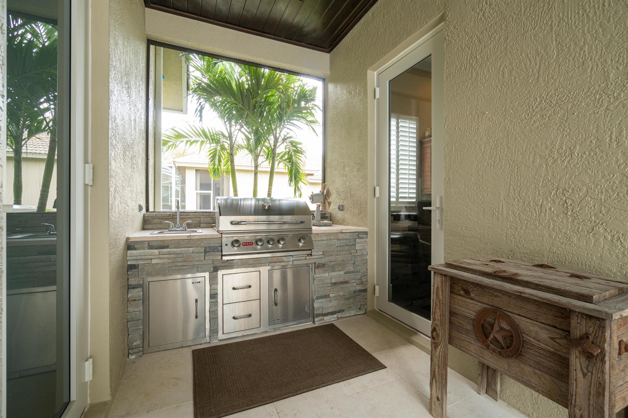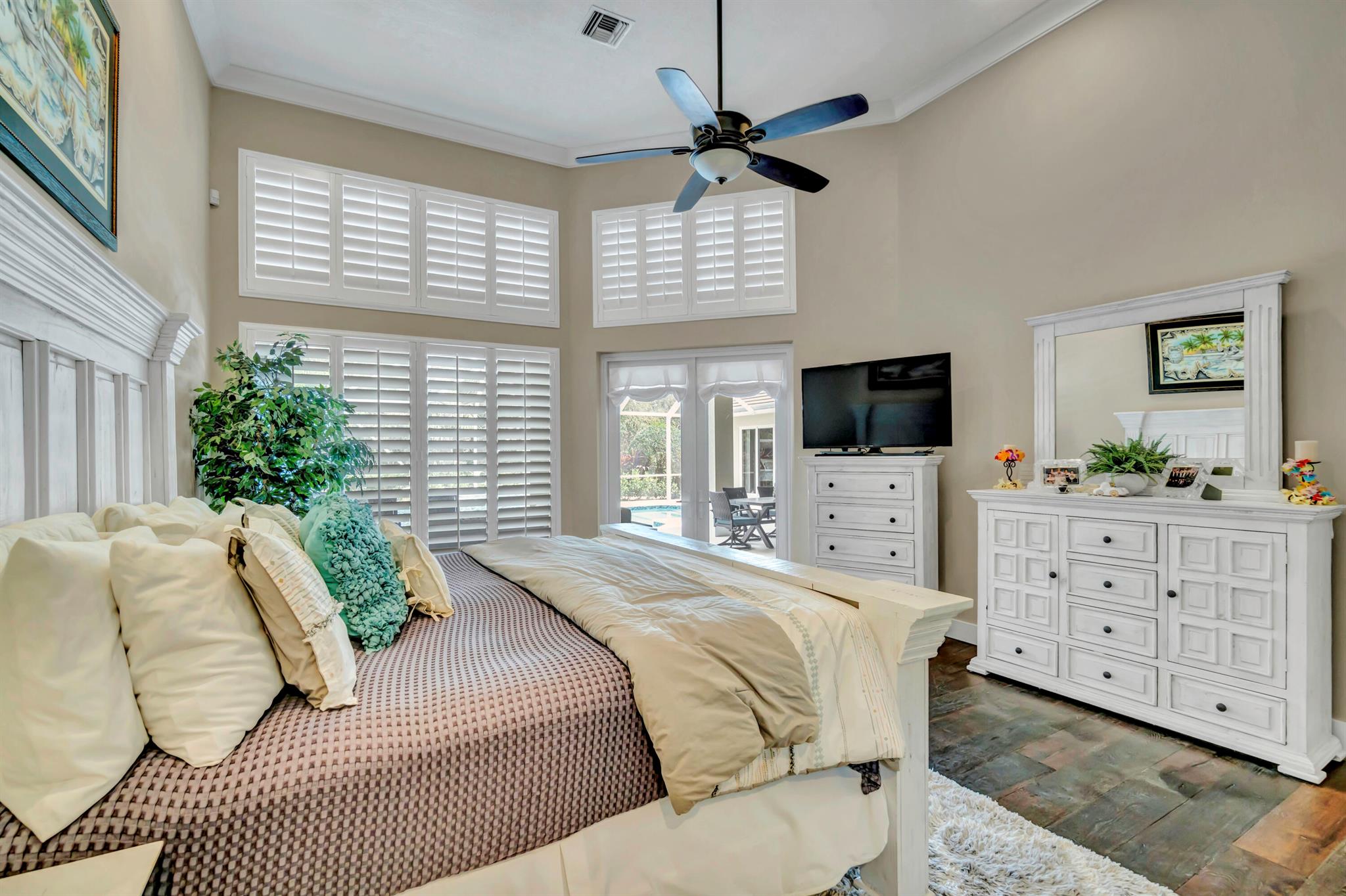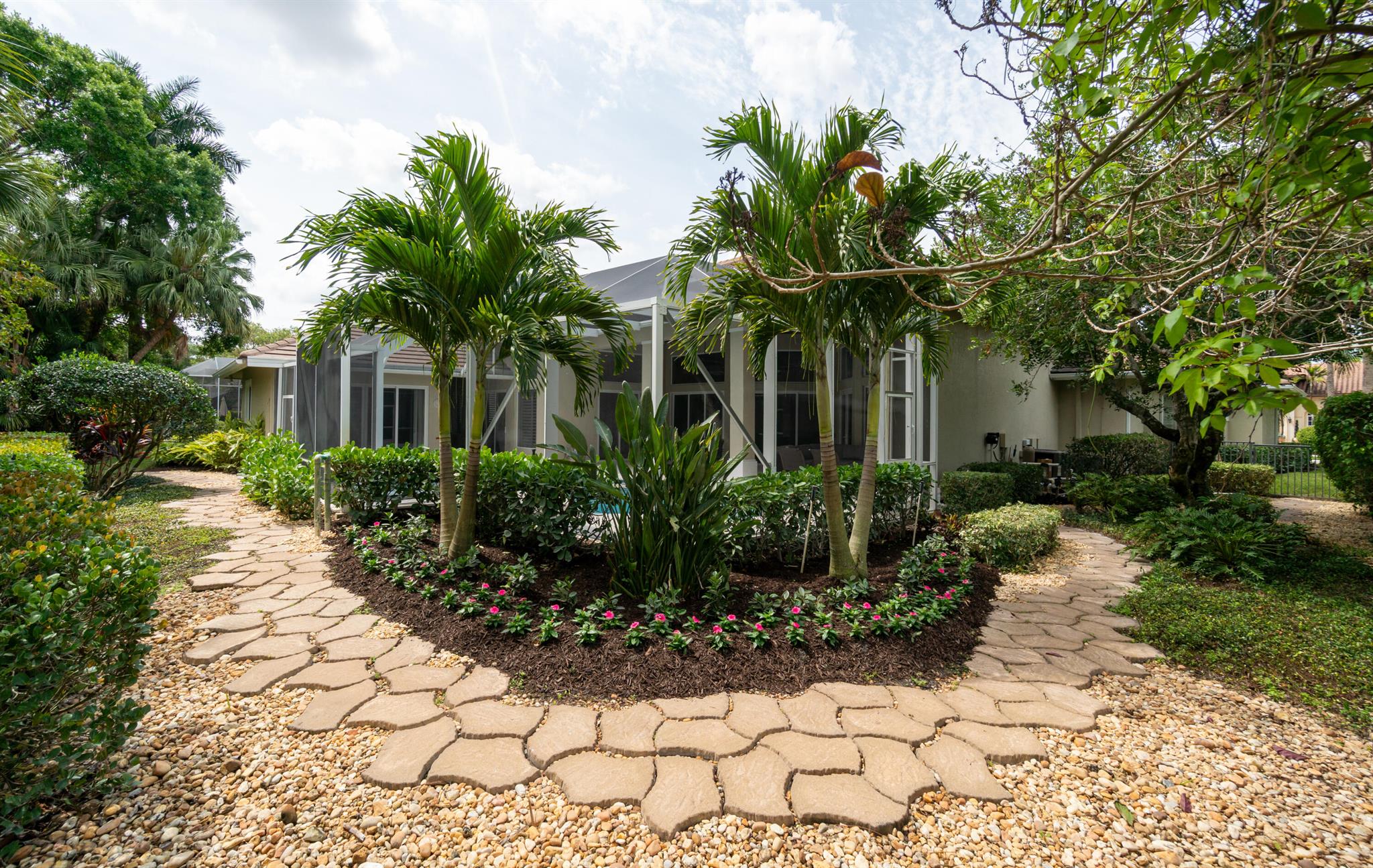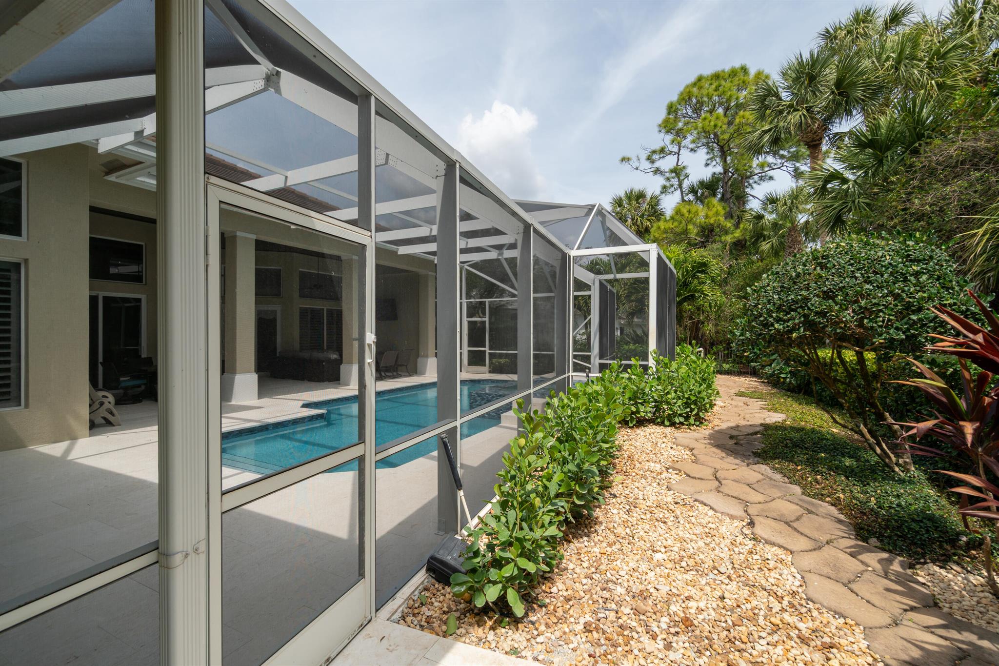 Over 5600 sq ft of perfection with a 5 car garage!! Newly renovated (2025) home offers 4 bedrooms, 5 bathrooms, PLUS office, GUEST HOUSE (Mother in Law suite) with kitchenette and mini split AC! Beautiful custom wood floors in living areas plus tongue and groove wood ceilings in several areas as well as wood beams in the living room. The entire home is protected by hurricane rated impact glass windows and doors, updated and refreshed marble patio/pool with screen enclosure, updated bathrooms, custom closets, gutters, garage space for 5 cars with circular paver drive, batten board throughout living areas, extra fridge in the laundry room and backs to the 4th green of Mayacoo Lakes CC (optional membership). Enjoy the golf course view while lounging in your heated pool and spa.