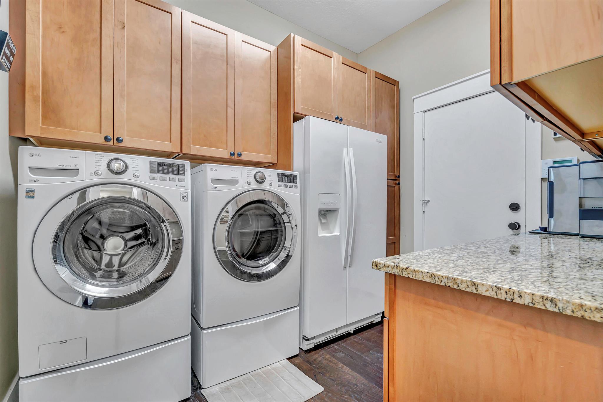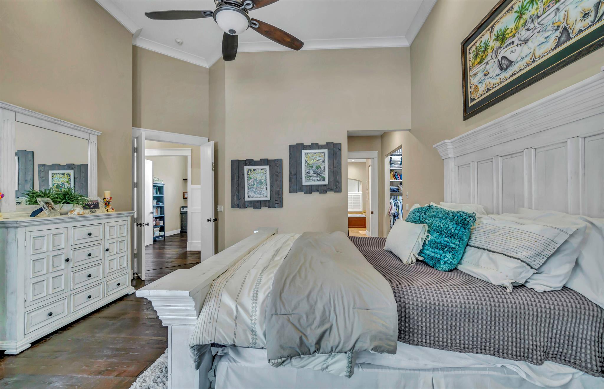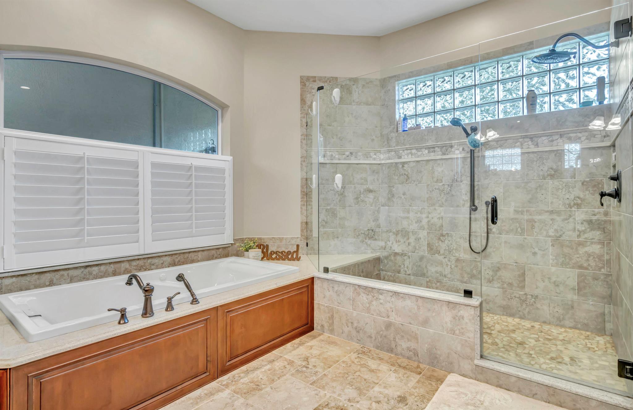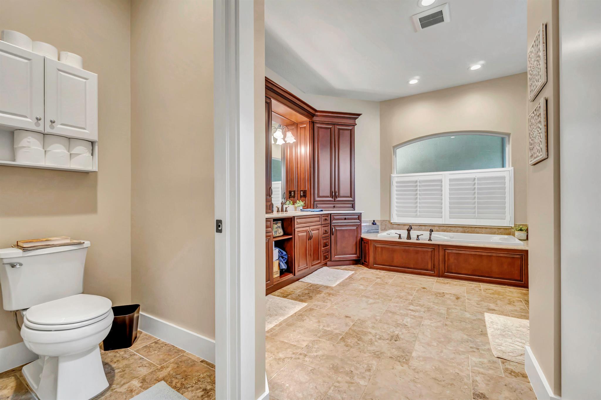 Over 5600 sq ft of perfection with a 5 car garage!! Newly renovated (2025) home offers 4 bedrooms, 5 bathrooms, PLUS office, GUEST HOUSE (Mother in Law suite) with kitchenette and mini split AC! Beautiful custom wood floors in living areas plus tongue and groove wood ceilings in several areas as well as wood beams in the living room. The entire home is protected by hurricane rated impact glass windows and doors, updated and refreshed marble patio/pool with screen enclosure, updated bathrooms, custom closets, gutters, garage space for 5 cars with circular paver drive, batten board throughout living areas, extra fridge in the laundry room and backs to the 4th green of Mayacoo Lakes CC (optional membership). Enjoy the golf course view while lounging in your heated pool and spa.