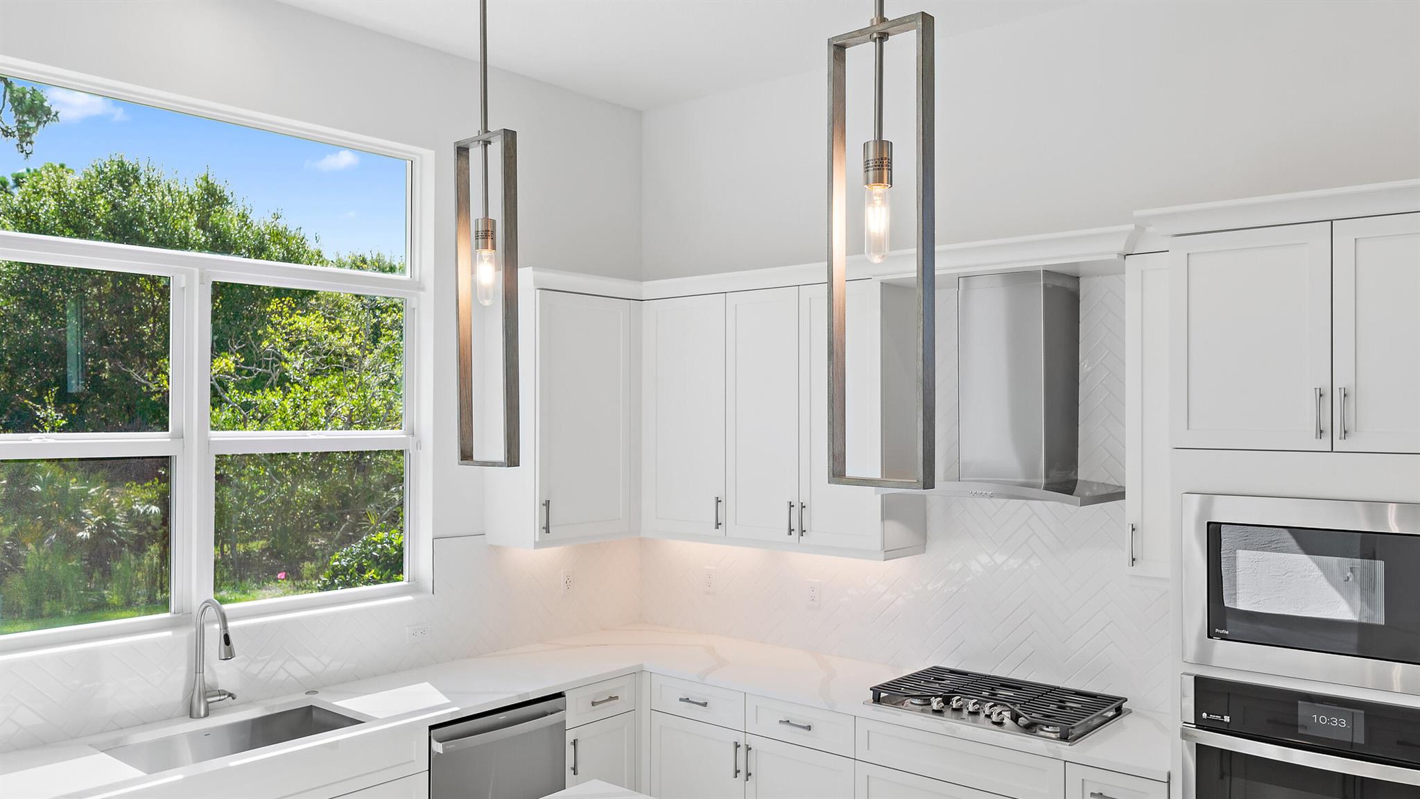 **NEW CONSTRUCTION**. MOVE IN READY This stunning new home, featuring the Beverly floorplan, offers 3 bedrooms, 2 bathrooms, and a 2-car garage, designed for comfort and modern living. Thoughtfully crafted with no homes behind, it provides enhanced privacy in a peaceful setting. The open and spacious layout includes a 4-foot extension in the primary bedroom and dining area, creating an inviting atmosphere. Bedroom 3 has been converted from a flex space, adding versatility to the design. The lanai features a 5-foot privacy wall, pre-plumbed for a future summer kitchen, making outdoor entertaining seamless. The gourmet kitchen showcases a gas cooktop, curved chimney wall-mount hood, and a stunning 3-inch quartz edge island.