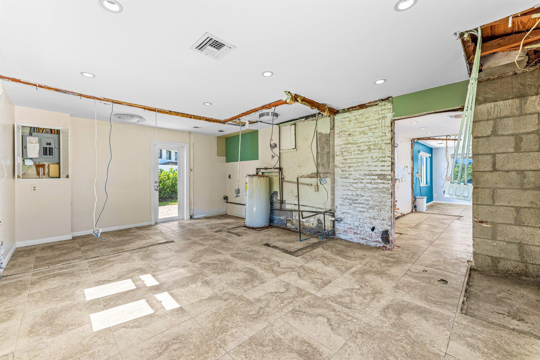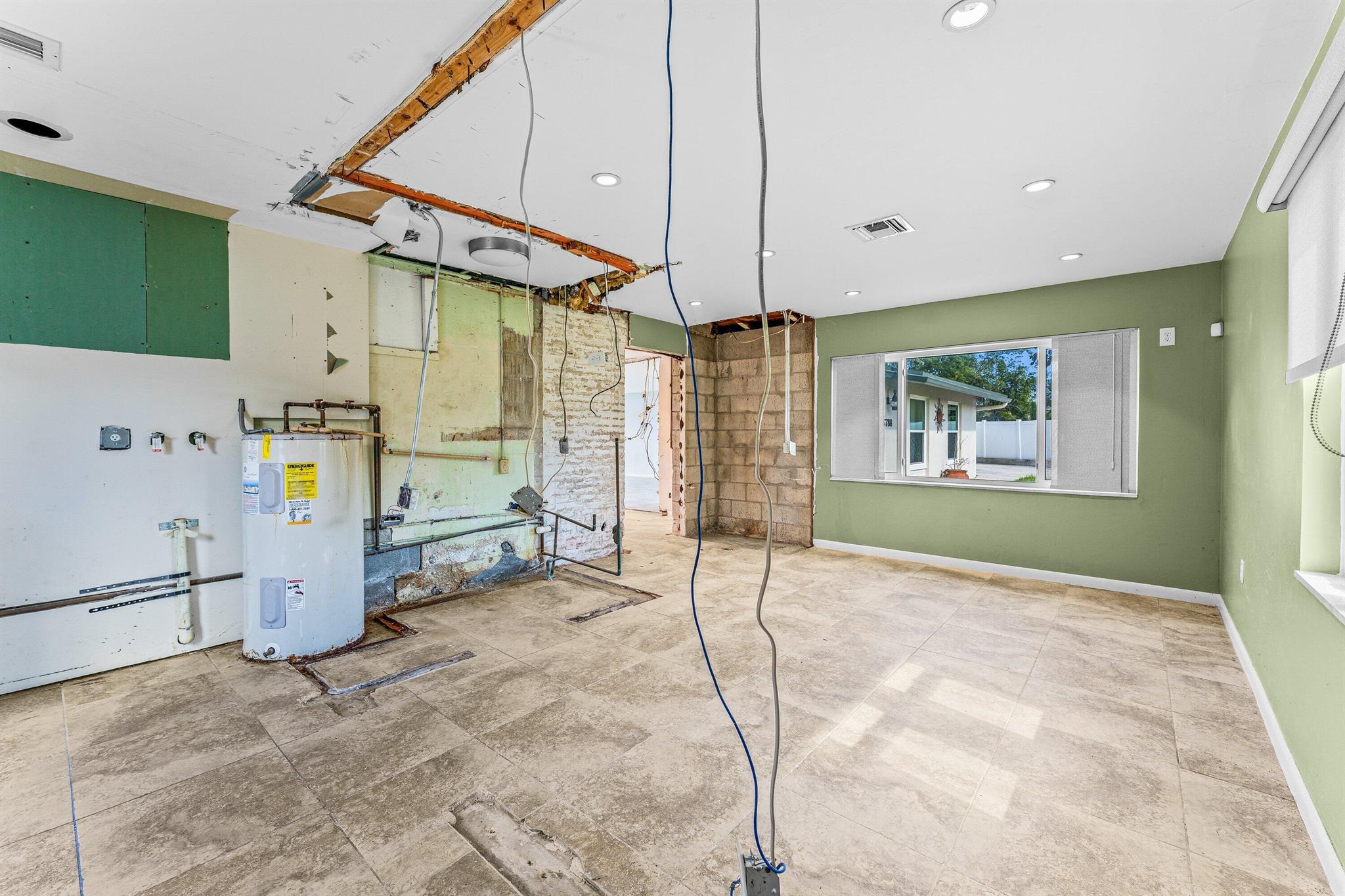 Discover a rare gem on the shores of Lake Osborne. This 3 bdrm, 2 bath house sits on 187 feet of open waterfront overlooking a natural bird sanctuary, offering endless potential and breathtaking views. The property has been gutted and is ready for total renovation, making it a blank canvas for your dream home. Whether you're a homeowner ready to design every detail to your taste, or a builder seeking a prime opportunity to transform and resell, this property offers unmatched versatility and potential. Perfect for boating, fishing or just relaxing on the deck looking at the natural paradise. The house also comes with complete architectural plans expanding the square footage, raising the roof and connecting the garage to the house, creating an expansive waterfront masterpiece.