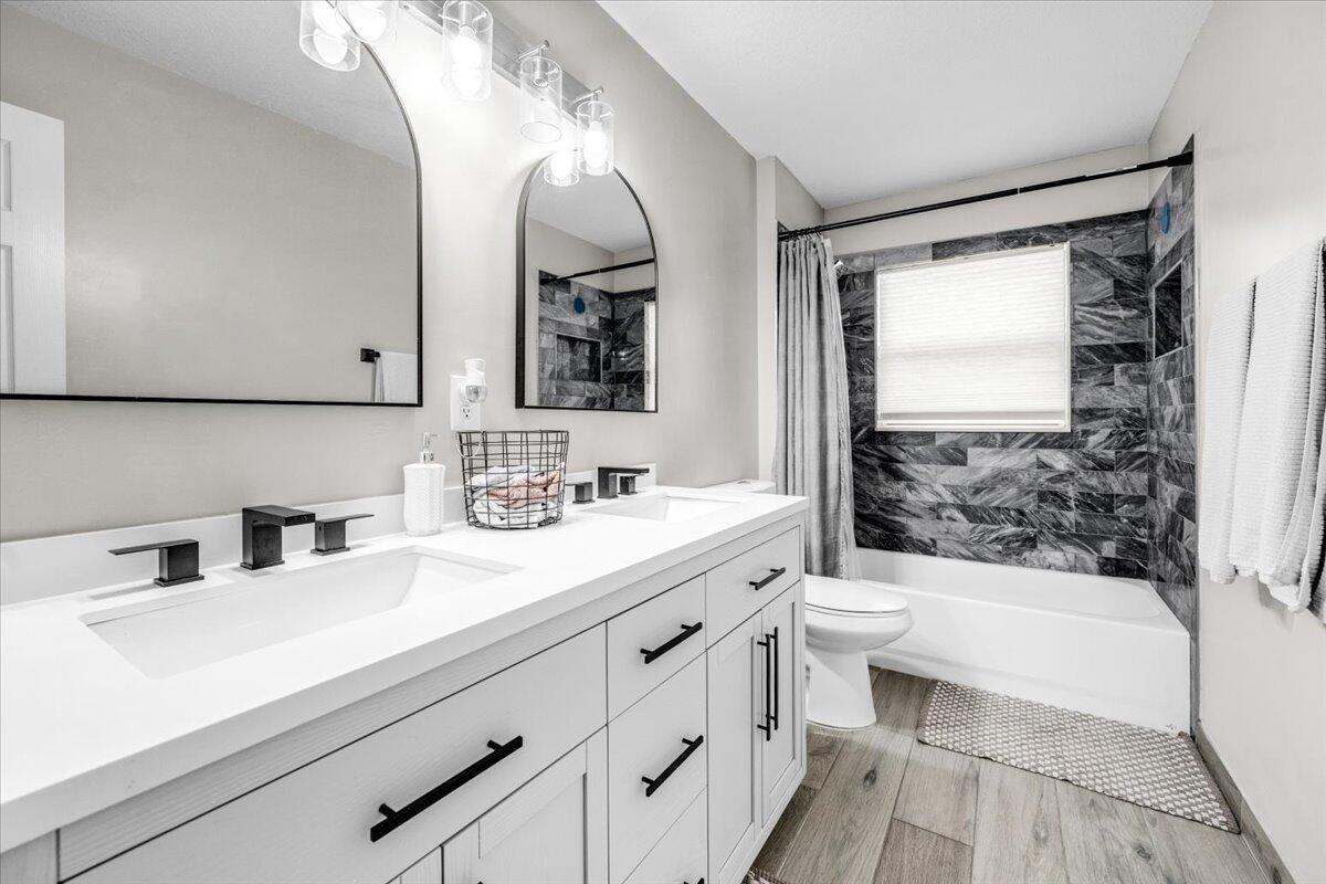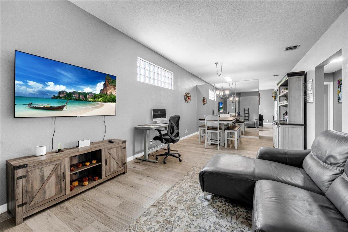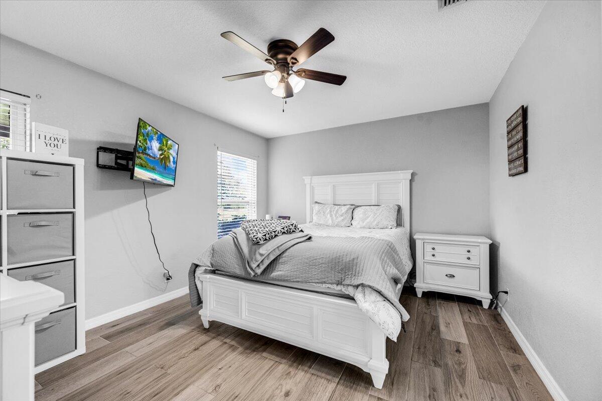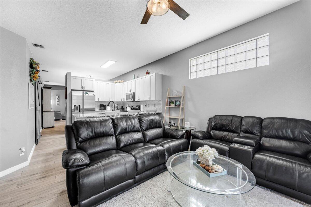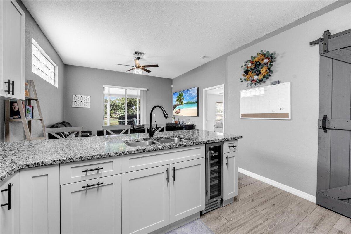 Welcome to your stunning dream home in the gated community of ''Country Club Views'' in Royal Palm Beach with Pond & Golf Course Views! This beautifully remodeled 4 bedroom, 2.5 bathroom, 2 car garage home is move-in ready and waiting for you to make it your own.The kitchen features beautiful solid wood cabinets with self closing drawers and a brand new range. The refrigerator, microwave & wine cooler are only about 3 years old. The tile wood-look floors, which are not laminate or vinyl, are just 2 years old, giving the home a modern and stylish feel. The AC is just 1 year old. The bathrooms have also been remodeled within the past 2 years, adding a touch of luxury to this already impressive property. Two of the bathrooms (primary & guest) have double sinks.