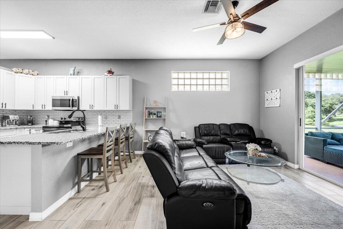 ''MOTIVATED SELLER'' Beautifully Remodeled 4 bedroom, 2.5 bathroom, 2 car garage home in the gated ''Country Club Views'' located in Royal Palm Beach with Pond & Golf Course Views! This home is move-in ready and waiting for you to make it your own.The kitchen features beautiful solid wood cabinets with self closing drawers and a brand new range. The refrigerator, microwave & wine cooler are only about 3 years old. The tile wood-look floors, which are not laminate or vinyl, are just 2 years old, giving the home a modern and stylish feel. The AC is just 1 year old. The bathrooms have also been remodeled within the past 2 years, adding a touch of luxury to this already impressive property. Two of the bathrooms (primary & guest) have double sinks.
