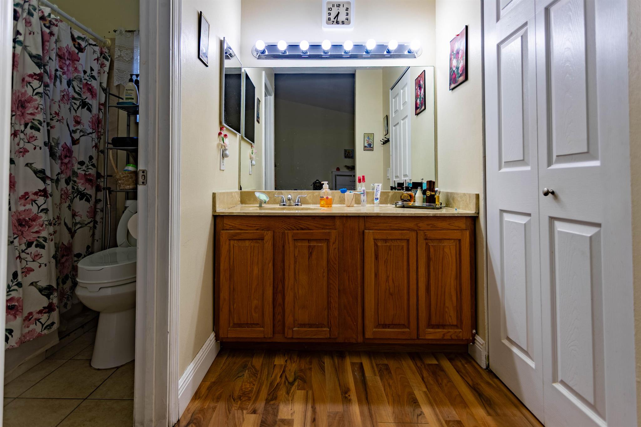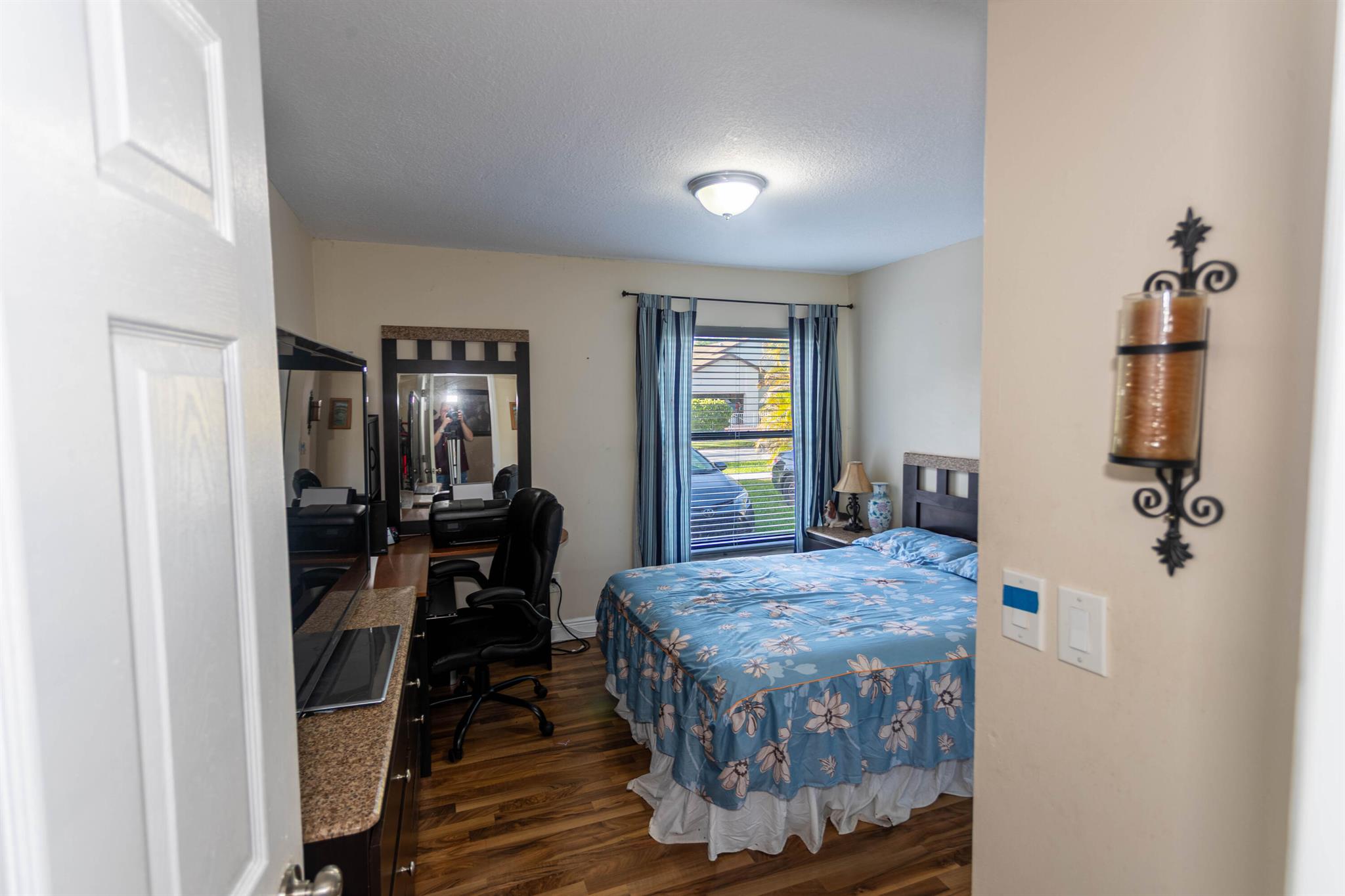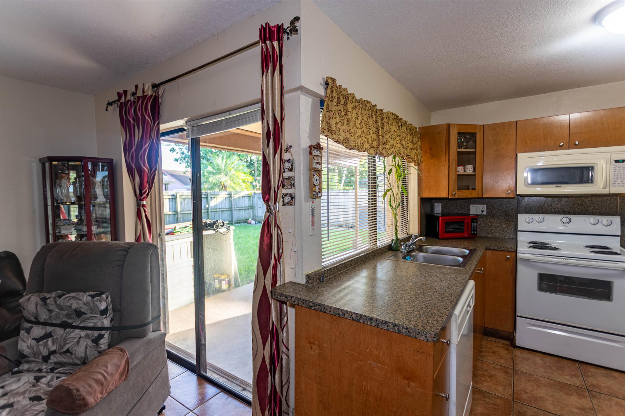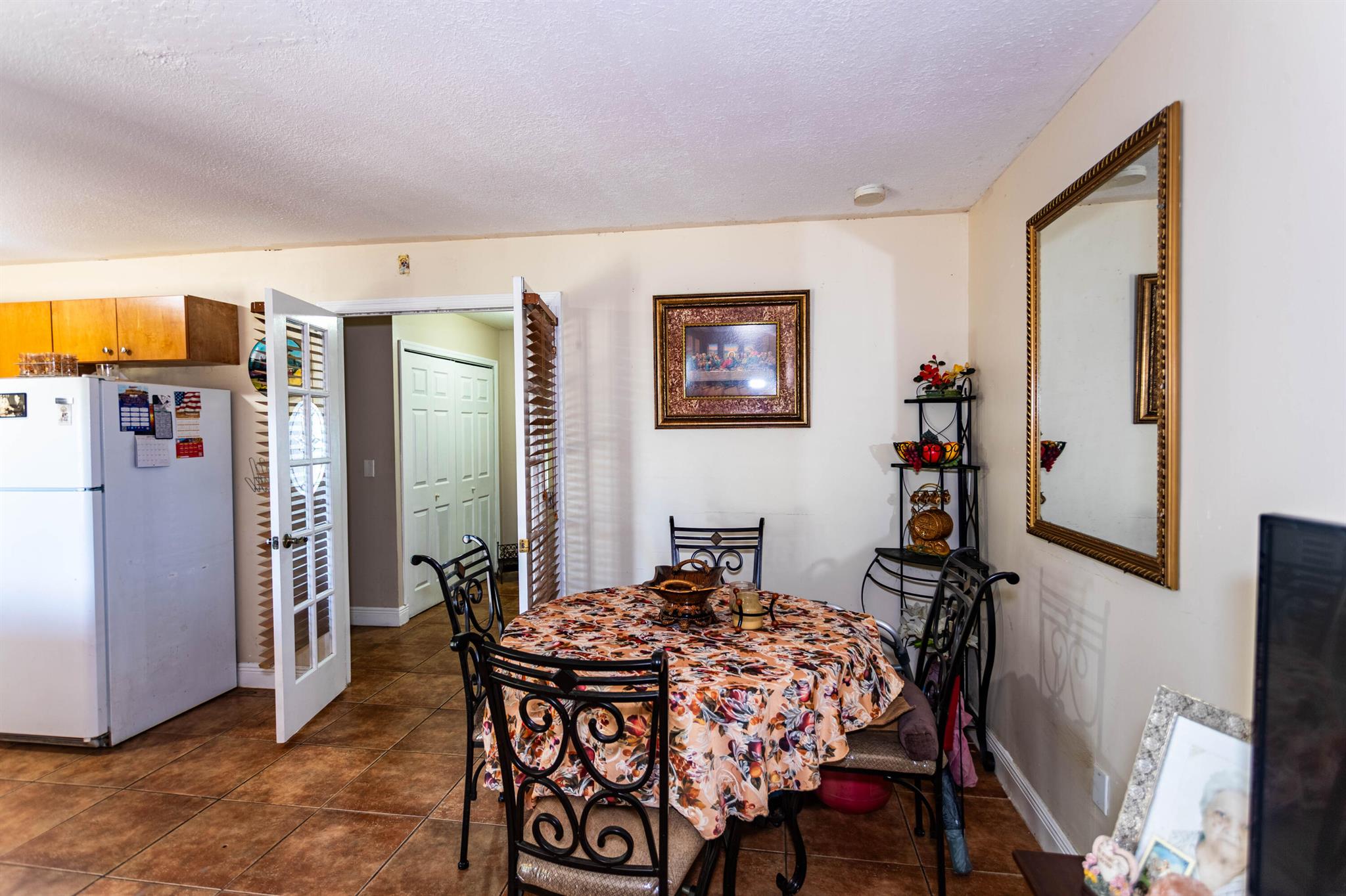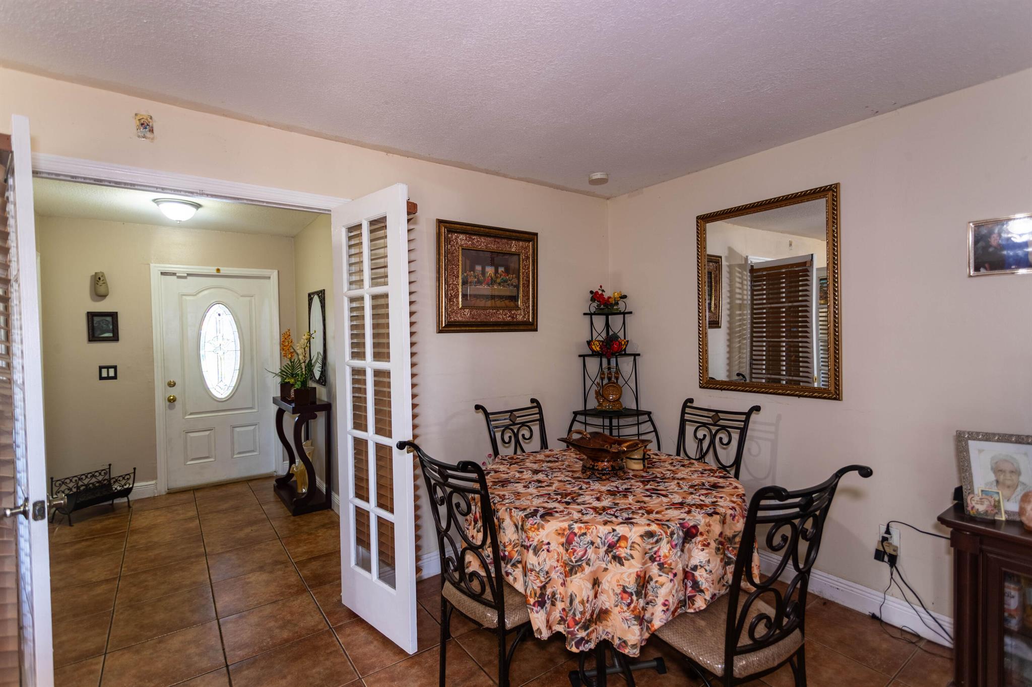 :Uniquely designed for large or multigenerational living! This spacious 4-bedroom home features 2 full kitchens, 2 full bathrooms, a split layout, and a semi-converted garage for storage and added living space. French doors lead to Kitchen #1 with a dining and living area and a master suite with walk-in shower and vanity. Down the hall is Kitchen #2 with a breakfast nook and access to a stunning converted space that is utilized as an entertainment and formal dining area.
