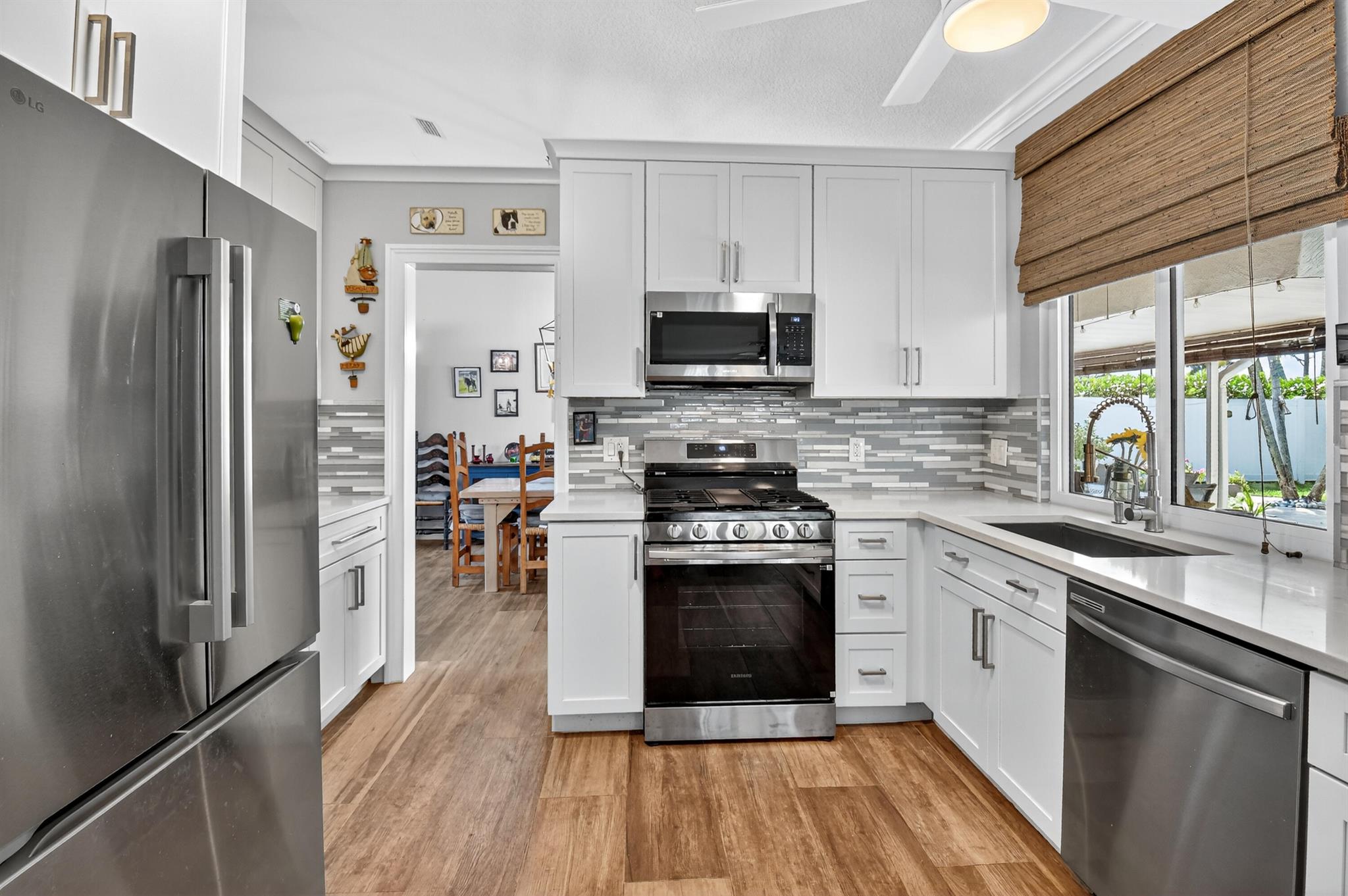 Experience luxury living in this beautifully upgraded Pool Home. Featuring a new 2025 Roof, Chef's Kitchen with KraftMaid cabinets, New Gas Stove, and New Appliances. Enjoy a 2023 Lennox Smart AC system with all-new ducts, Impact Windows, and Spa inspired Bathrooms with modern finishes and a Tower Shower in the primary suite. Elegant touches include Plantation Shutters, Accent Walls, Tankless Water Heater, and Epoxy Garage floor. The palm-lined backyard oasis boasts a freeform pool, Travertine decking, covered patio with bar seating, and a kitchen passthrough--perfect for entertaining in style. Luxury detailing throughout this home speaks to timeless sophistication. This is more than a home -- it's a lifestyle