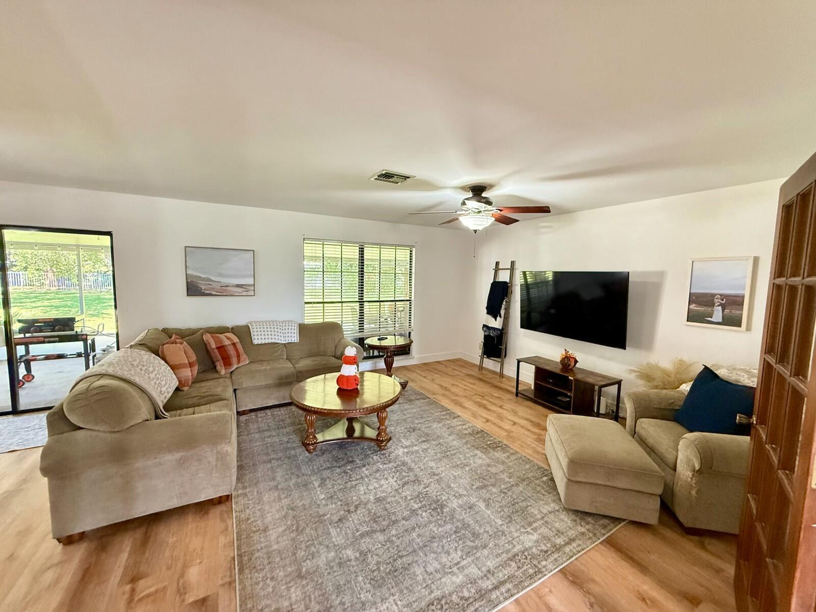 Welcome to your dream home! This charming 3 bedroom 2 bath residence features a beautifully updated kitchen and master bathroom, perfect for modern living. Enjoy the fresh, new vinyl flooring throughout the home, offering both style and easy maintenance. Situated on a large well maintained lot, this property includes a 2 1/12 car attached garage, providing ample space for vehicles, hobbies, or storage. This home also has a detached garage 35ft wide and 25ft deep. Additionally RV enthusiasts will appreciate the convenient hook-up and concrete pad with a 50 amp plug on the side of the house. Relax and unwind on the large back porch, overlooking the yard. The Central AC unit was replaced in 2024 ensuring year round comfort. This home features a sprinkler system for easy lawn maintenance.