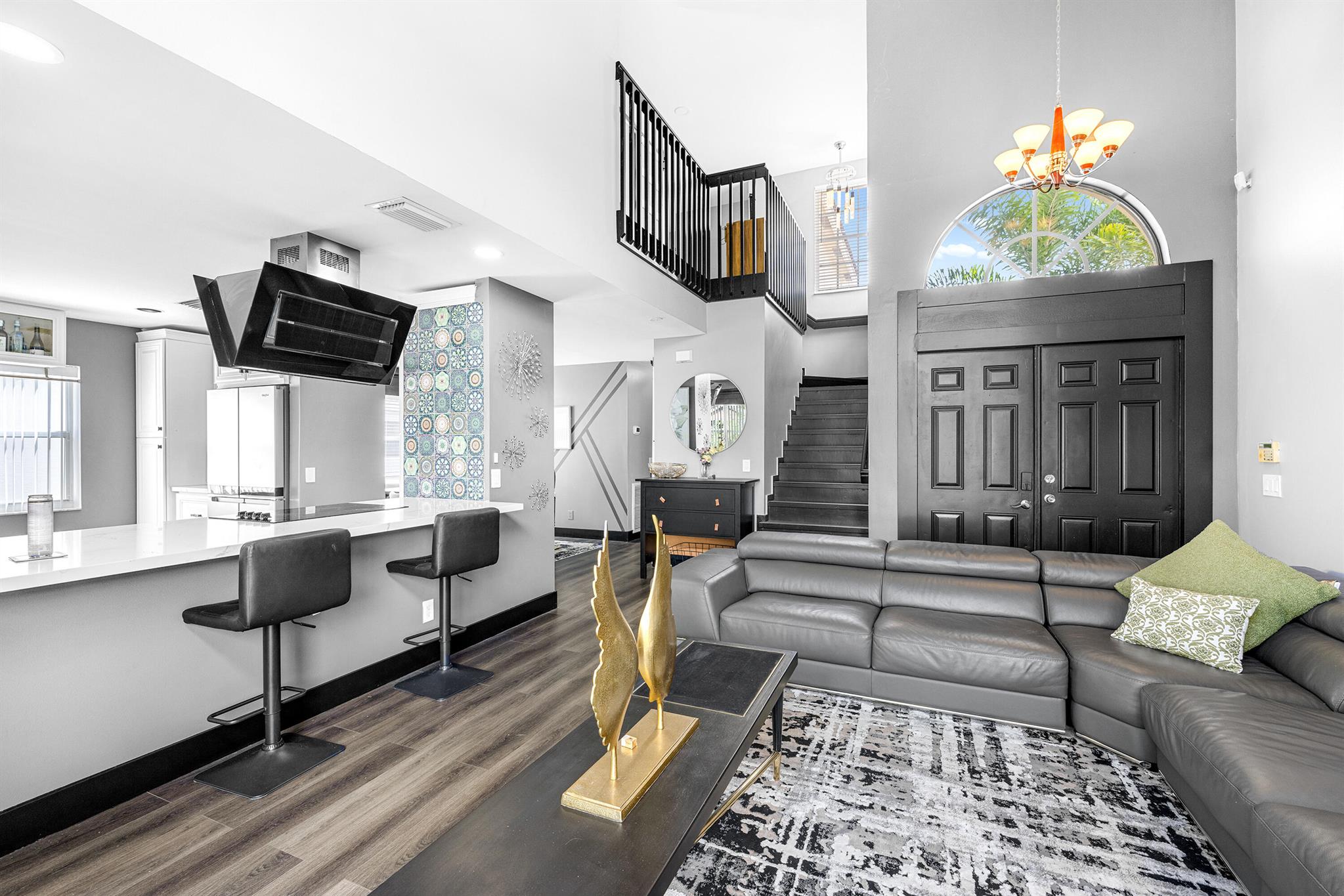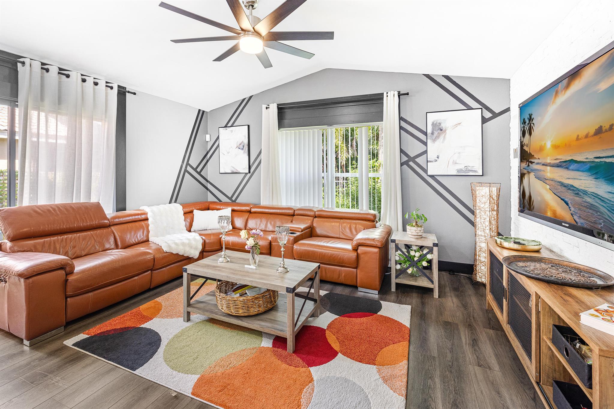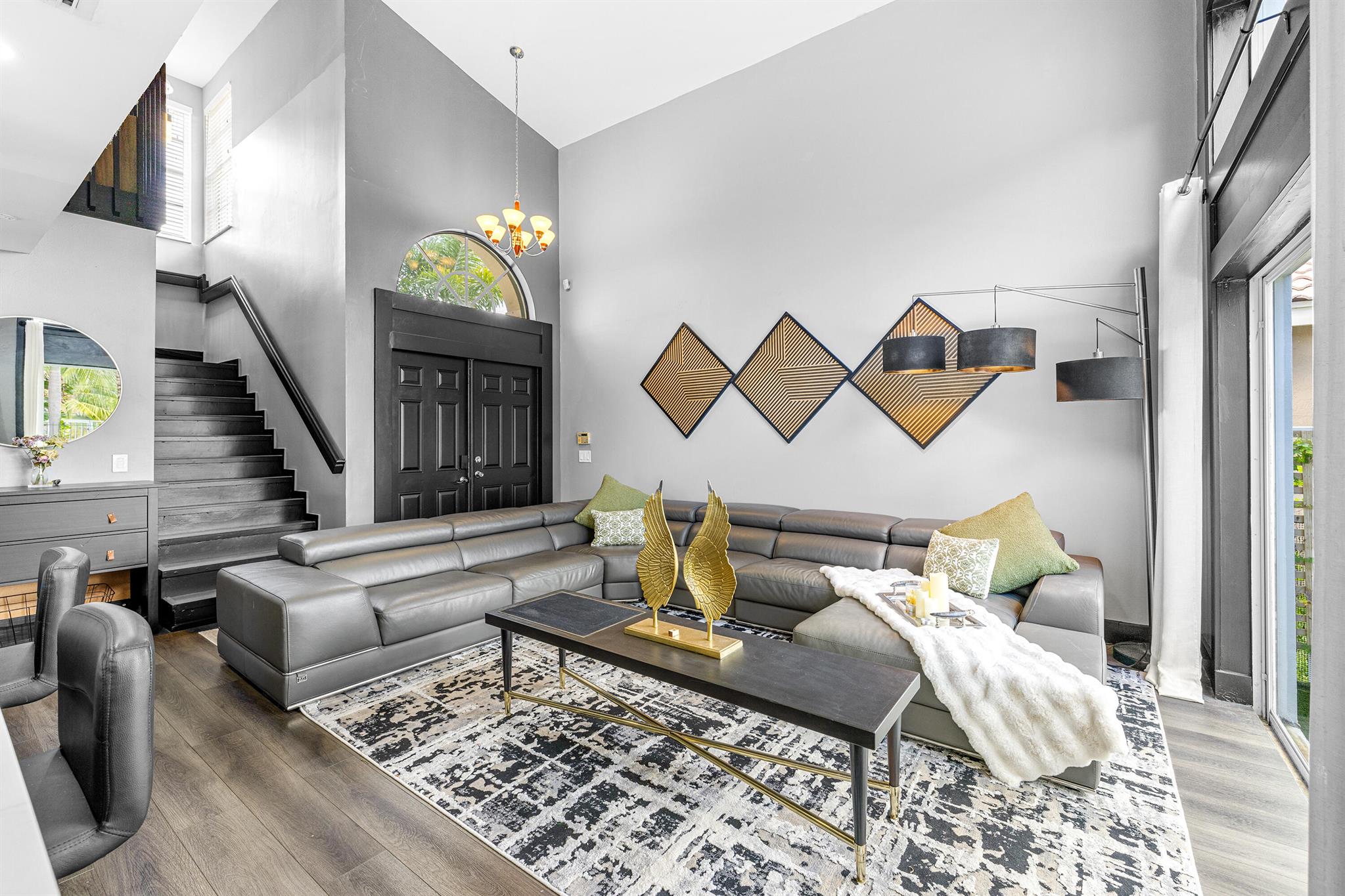 This beautiful and spacious 3-bedroom, 2.5-bathroom home (turnkey all furnishings included) with a 2-car garage offers a perfect blend of indoor comfort and outdoor enjoyment. Laminate flooring runs throughout, and soaring volume ceilings create an airy, open feel. The remodeled open-concept kitchen features quartz countertops, stainless steel appliances, and a peninsula island. The primary suite includes a walk-in closet and an en-suite bathroom with dual sinks, a soaking tub, and a separate shower. Upstairs, a versatile loft provides flexible space for work or relaxation. Unwind on your private, paved patio and take in peaceful lake views. Located in the sought-after Nautica Sound community, residents enjoy access to a pool, fitness center, clubhouse, tennis, basketball and