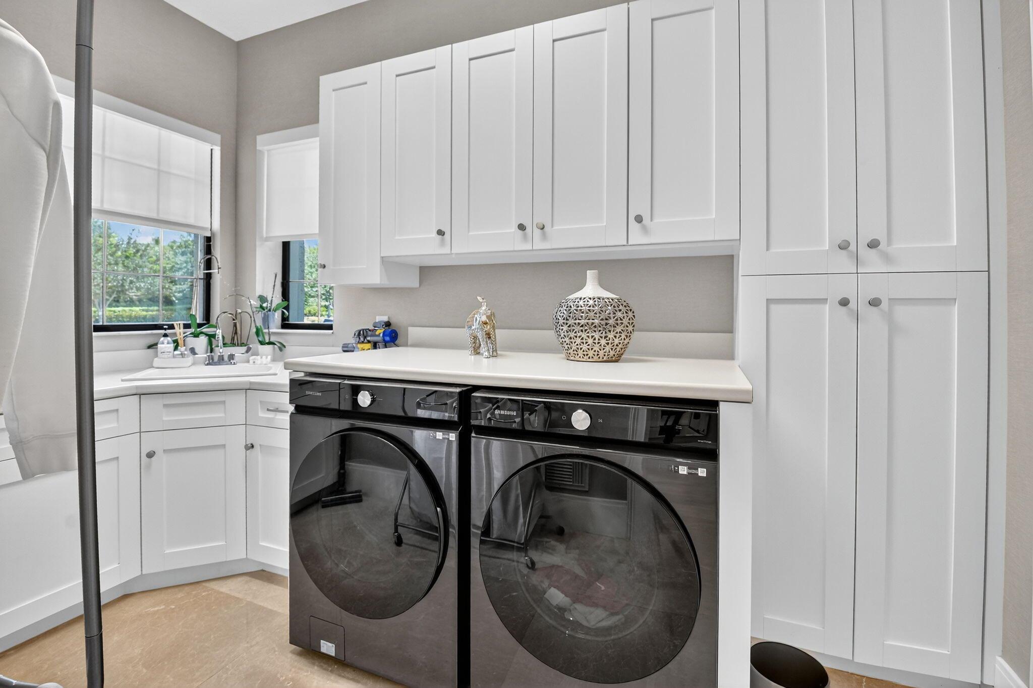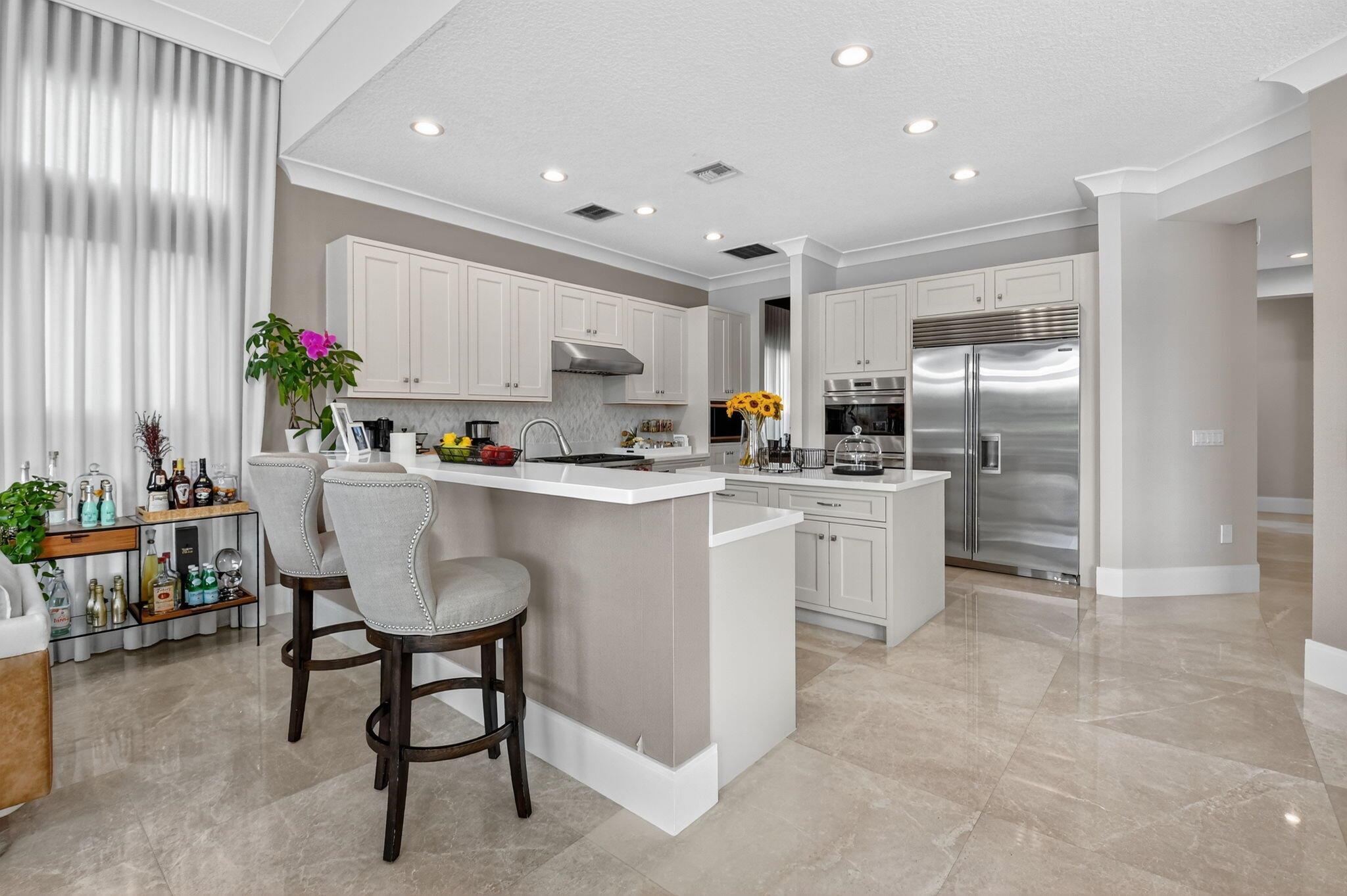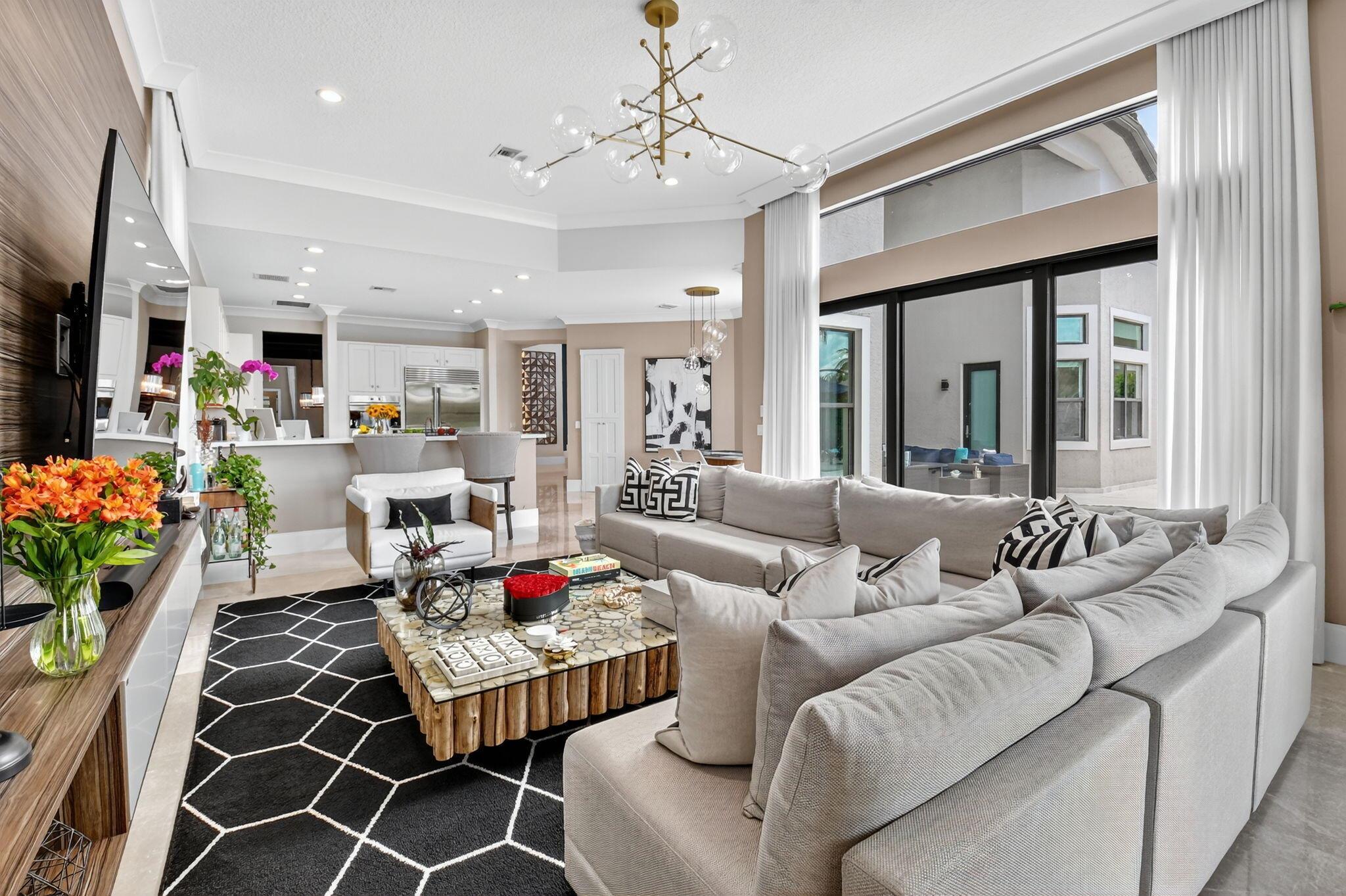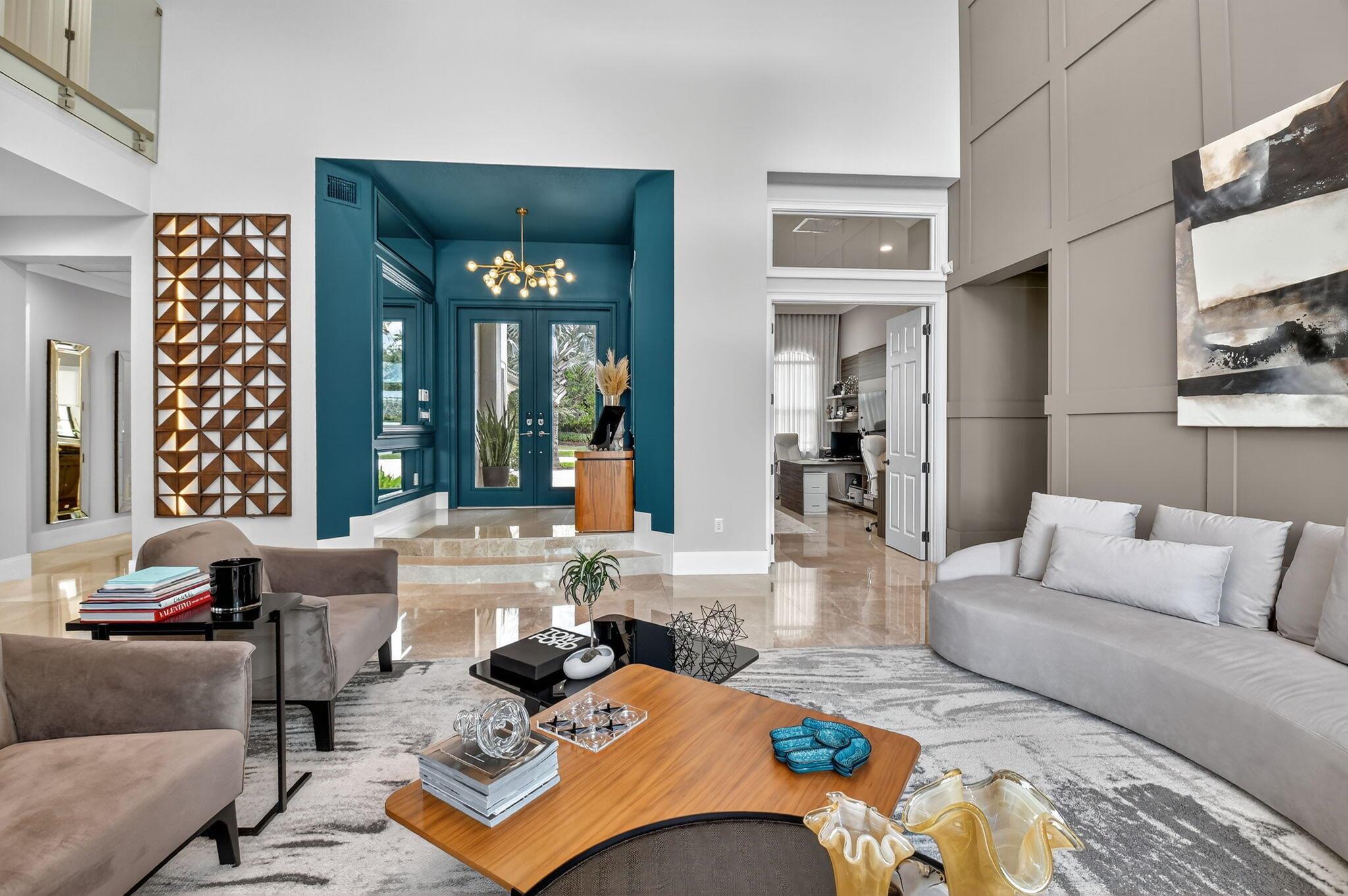 Stunning Two-Story Lakefront Estate with Pool & Luxury Upgrades. This exquisite residence features 5 bedrooms, 6 full bathrooms, 2 half baths, a private library/office, and a custom home theater. Soaring impact windows bring in natural light while keeping the home cool. The gourmet chef's kitchen is equipped with Sub-Zero refrigeration, Wolf double ovens, gas cooktop, and premium finishes. Enjoy large marble floors, expansive patio areas for entertaining, and a driveway for up to 10 cars. Sitting on an oversized lot with breathtaking lake views, this home is packed with upgrades for the ultimate luxury lifestyle. Premium Upgrades & Features: Flooring: Marble in main living areas, kitchen & family room; wood floors in all bedrooms. Design Touches: New glass stair railing, oversized