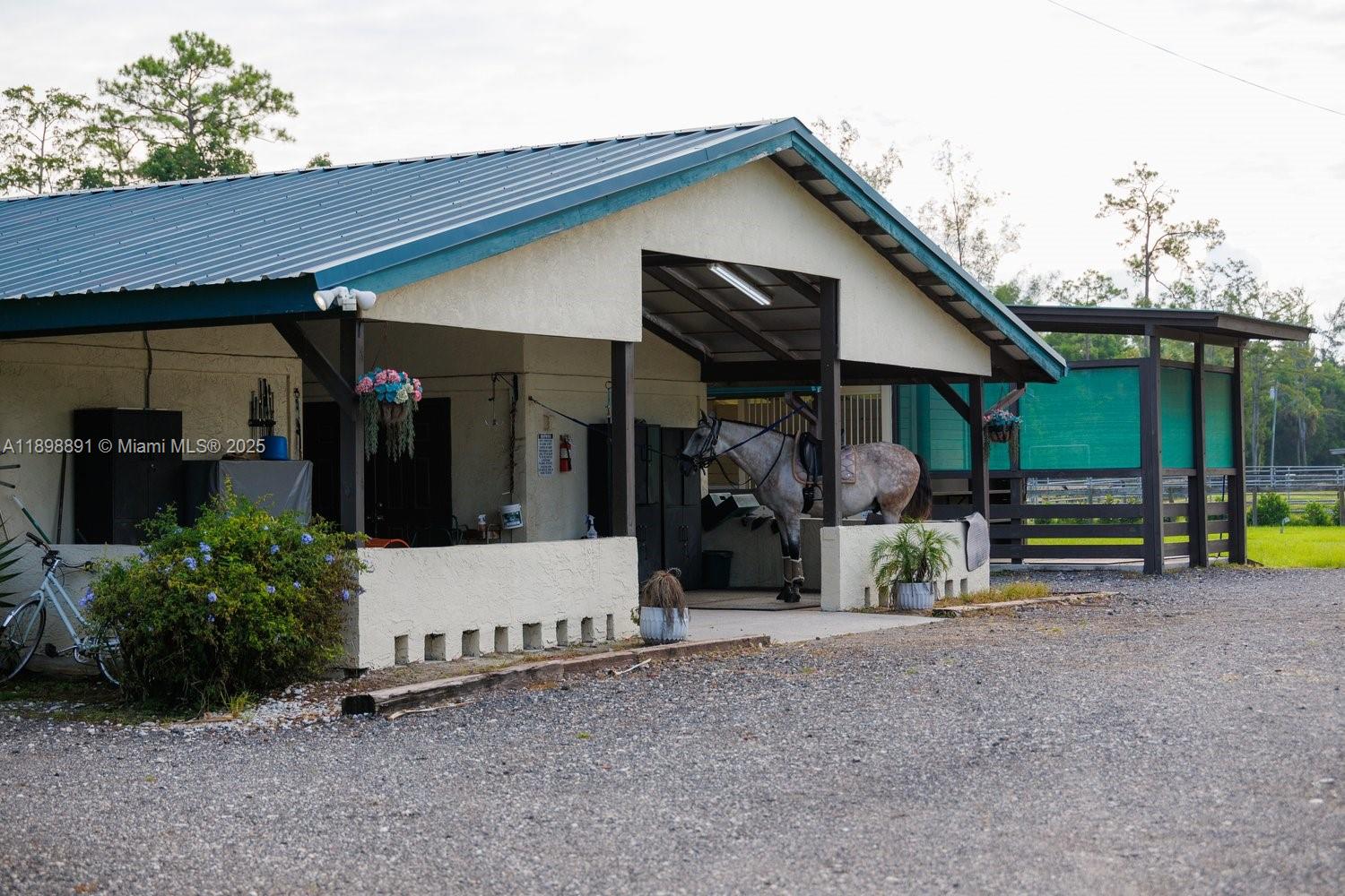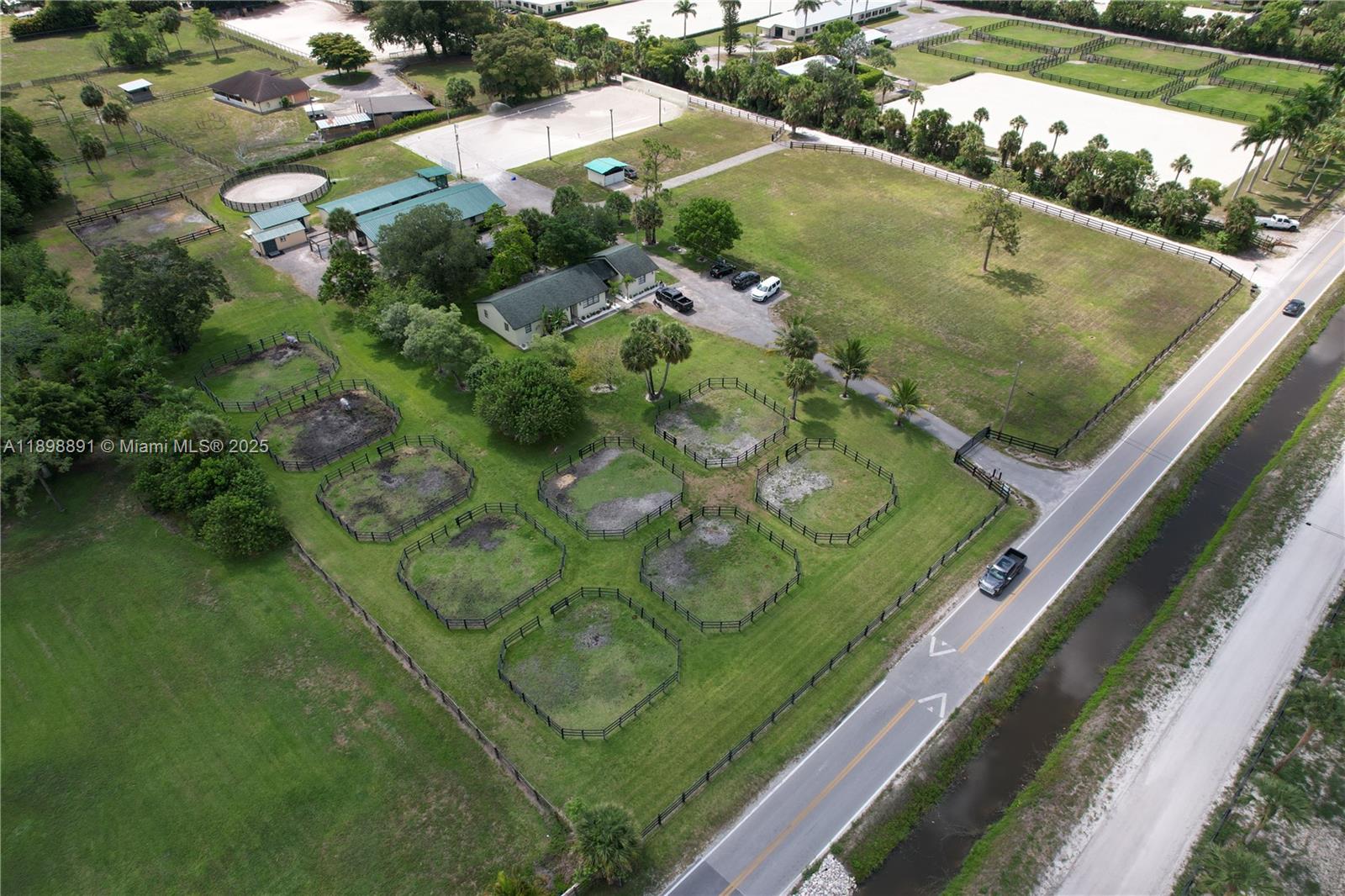Beautiful one-of-a-kind Equestrian property with easy access and great location on the corner of F Road & 11th Lane in the heart of horse country. Just 10-minute drive to Wellington International Events. This 5-acre (217,800 sf) Facility is impeccably designed. 2 separate entrances. 2 independent barns (8 large stalls, double aisle and 5 large stalls, single isle). 2 air-conditioned tack rooms & feed rooms, a utility storage bldg. and a 200 x 90 ft LED lighted riding arena with GGT footing & dressage mirrors. 9 paddocks with Equisafe Fencing, a large round pen with GGT footing and a manure storage bldg. Remodeled main house and seperate apartment. New septic drain fields. Trailers and RV area with electrical hookups. 55,000sf to build 2nd home, more equestrian facilities or turnout area