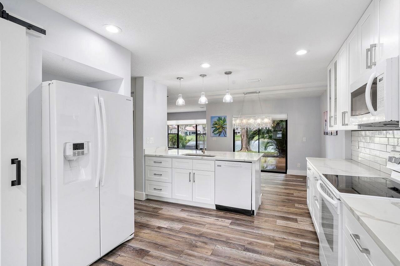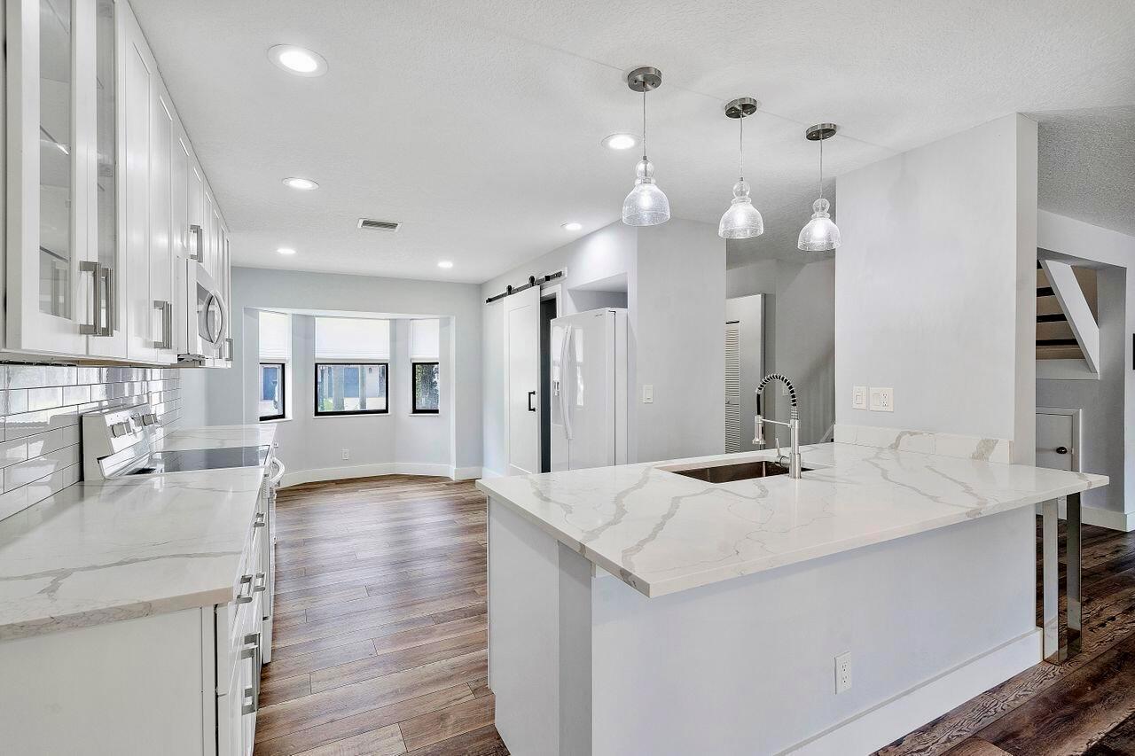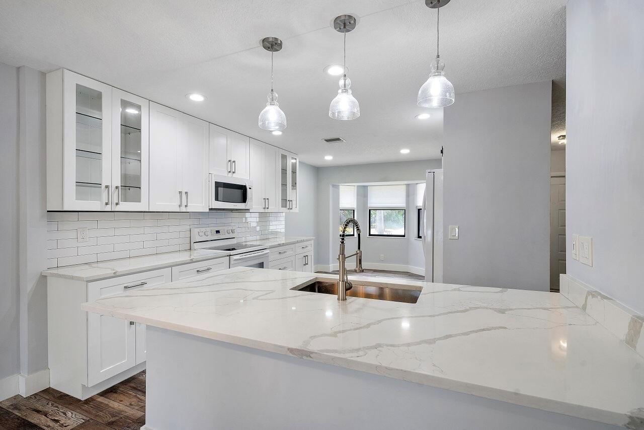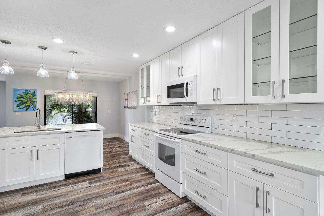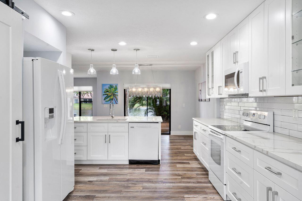 Remodeled Lakefront 3 Bedroom and 2.1 Bathroom Townhome. Almost everything is remodeled from the walls to no more Polybutylene pipes and all new copper piping. Exterior freshly painted. Roof was replaced in 2021. ALL newer appliances with the last couple of years. New luxury waterproof vinyl throughout the entire home. Not to mention a brand new gorgeous and bright open kitchen with unbelievable storage and state of the art cabinetry and pantry. You will love the closets galore. Sliding glass doors leading out to a covered extended patio to enjoy the beautiful sunrises and sunsets with your lake view. Washer and Dryer inside. 1 car garage. LOW HOA FEES. Close to everything.