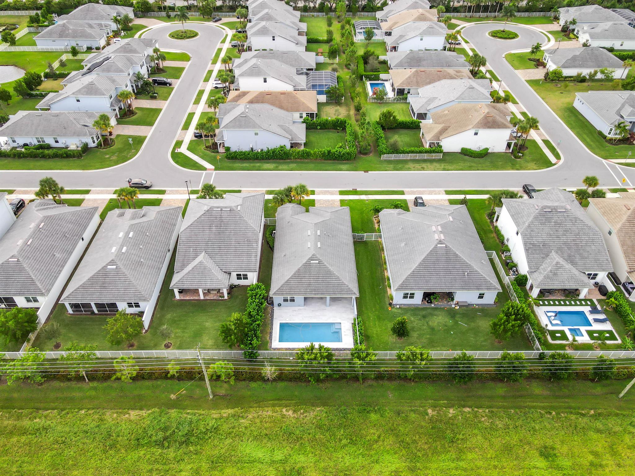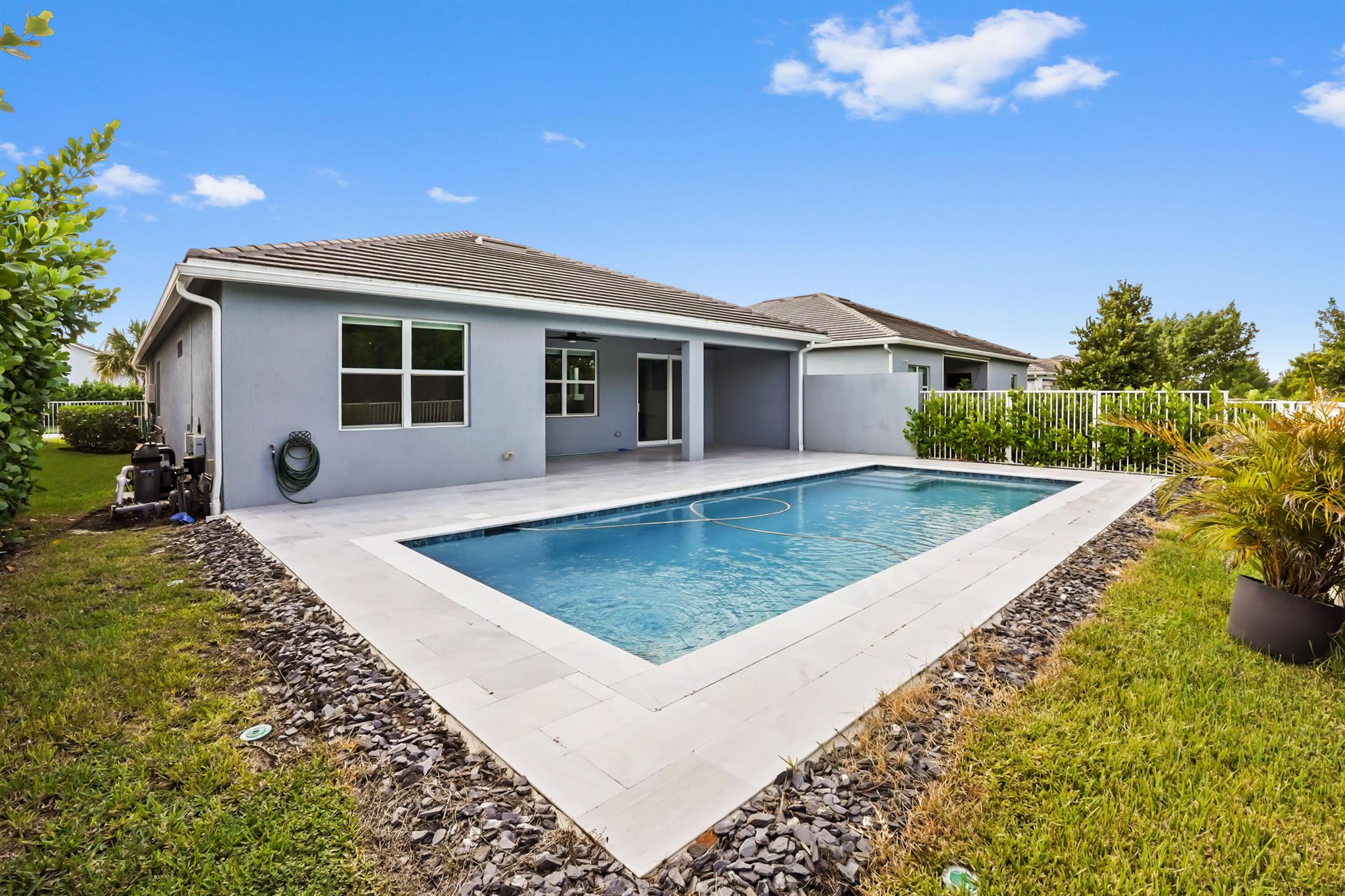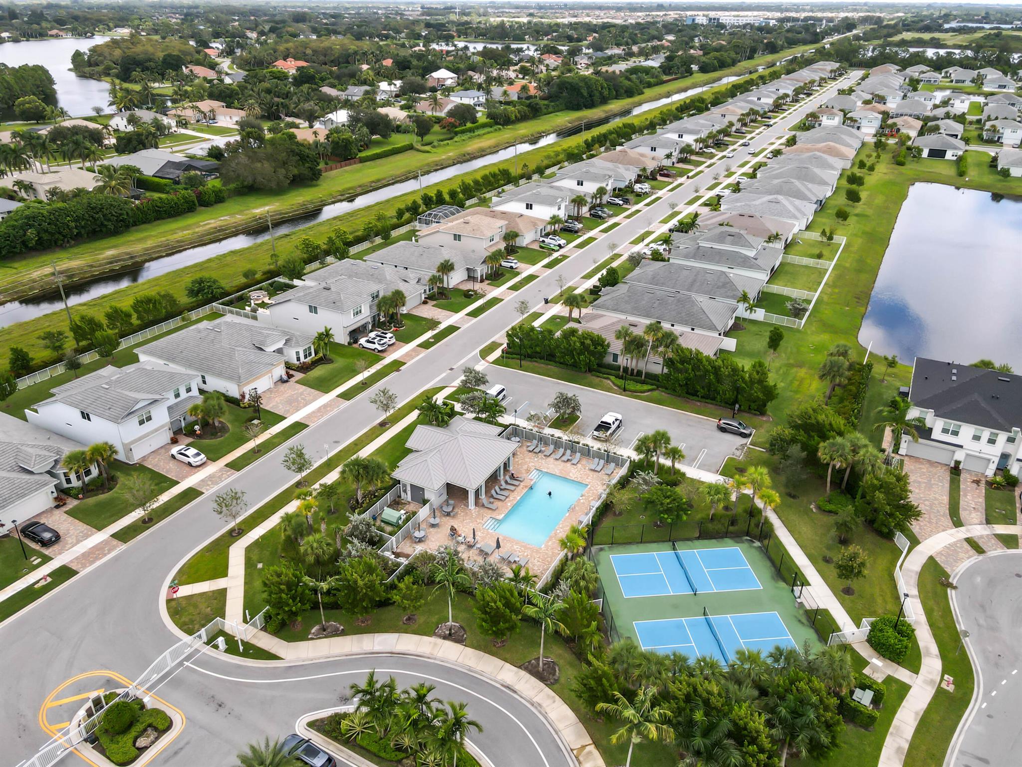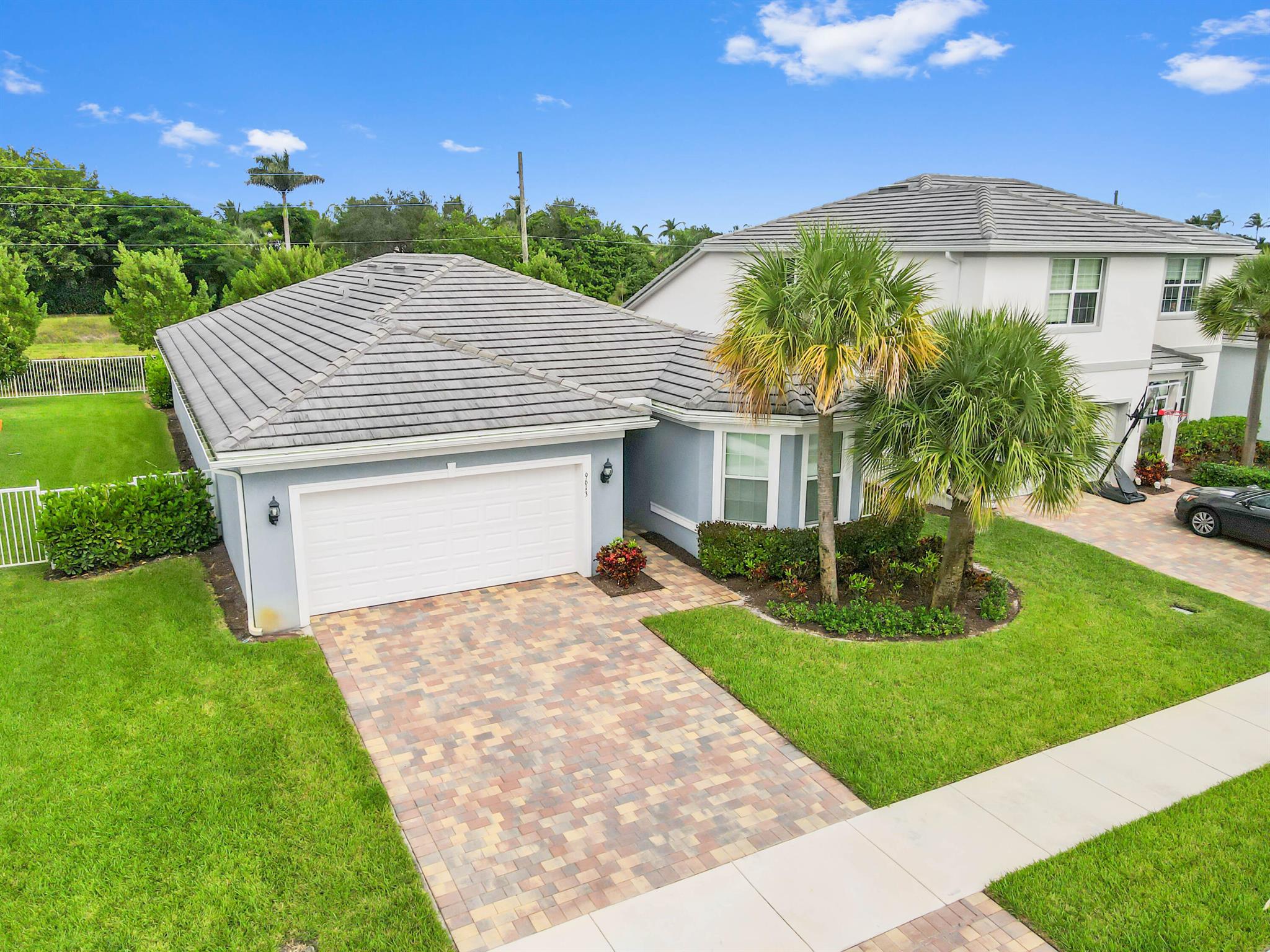Prepare to be impressed by this absolutely stunning and meticulously upgraded single-family pool home, perfectly situated in the desirable, lake-focused community of Windsong Estates in Lake Worth. The residence boasts exceptional curb appeal, featuring a modern flat-tile roof, a beautiful multi-toned paver driveway, and a charming light blue stucco exterior framed by tropical landscaping. From the moment you arrive, the home's contemporary style is evident, promising a tranquil and luxurious lifestyle.