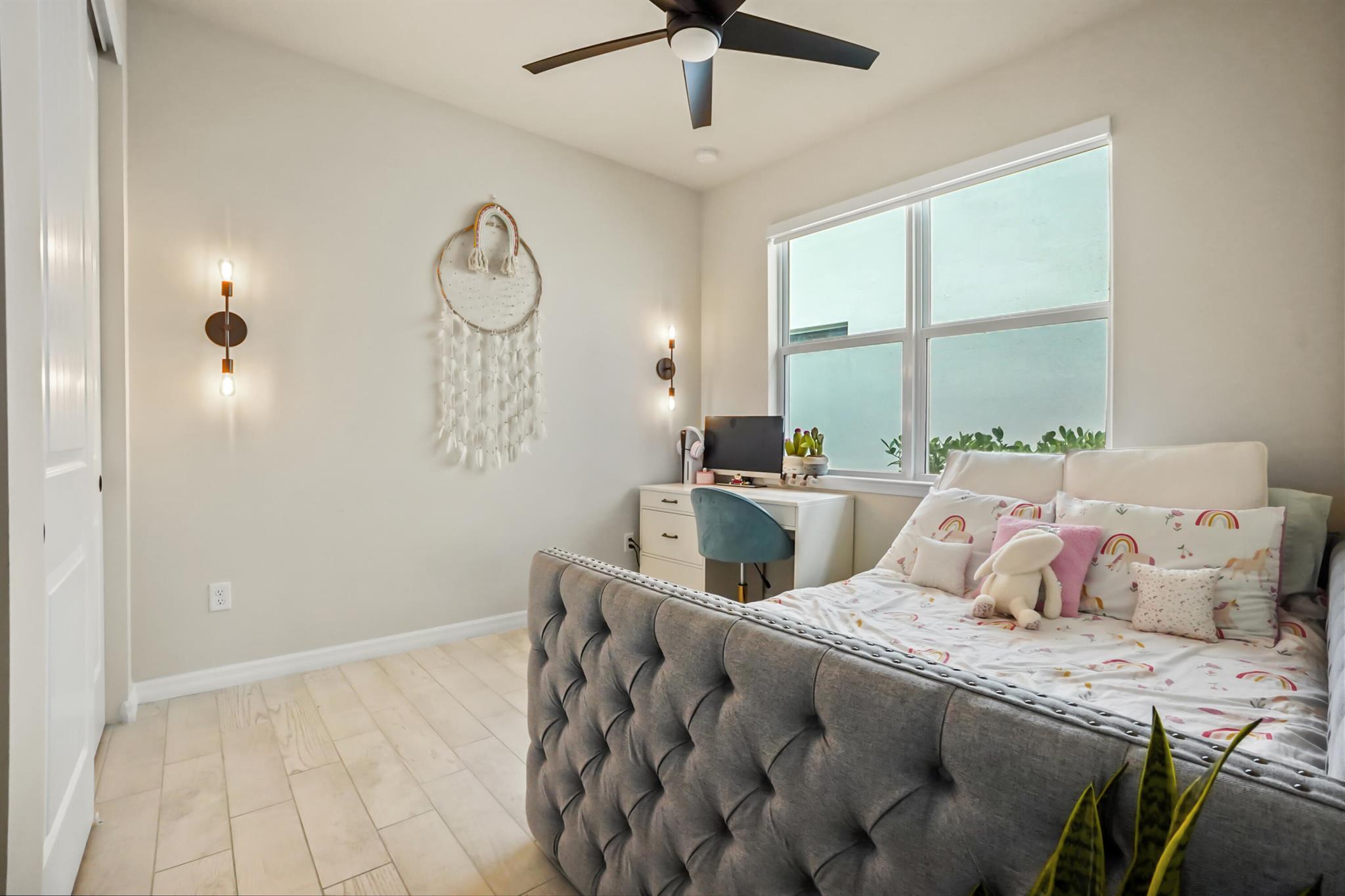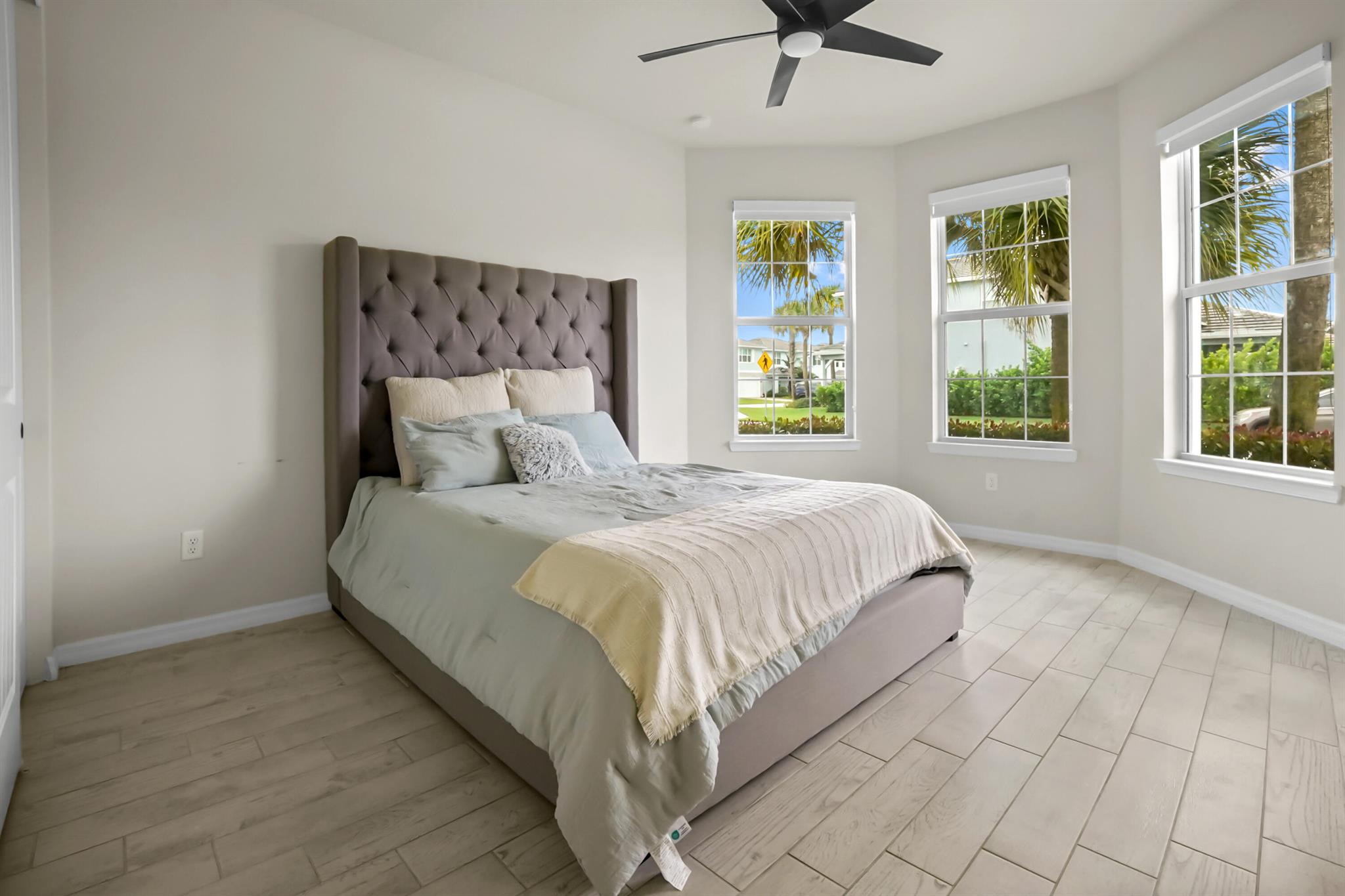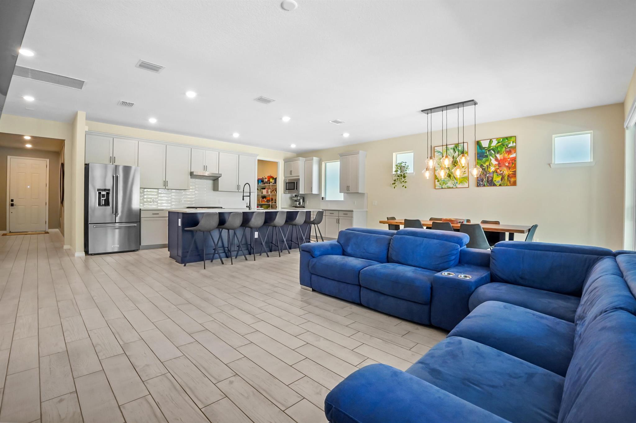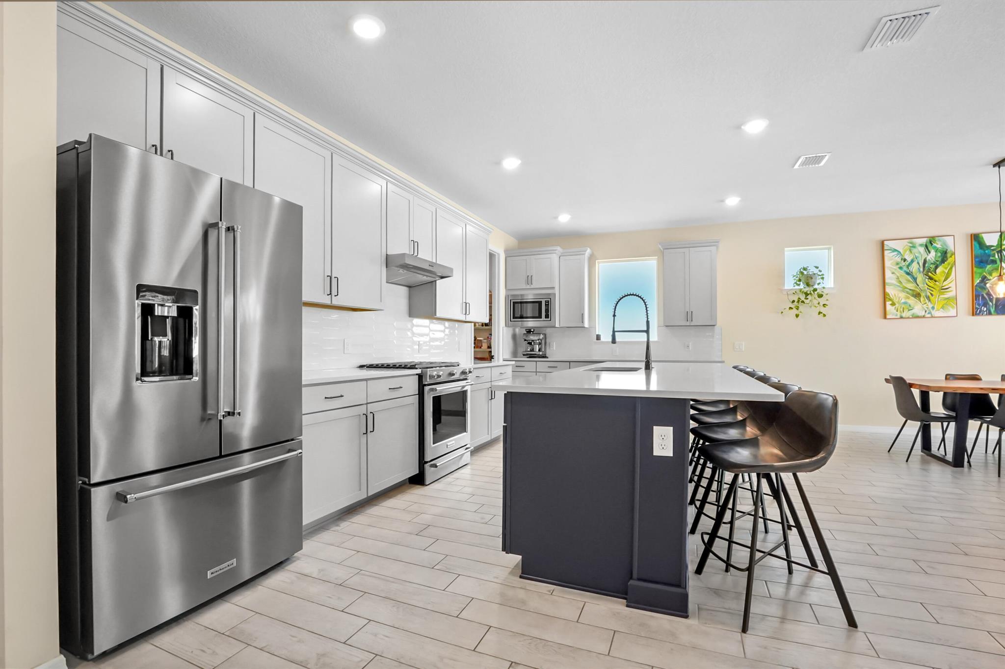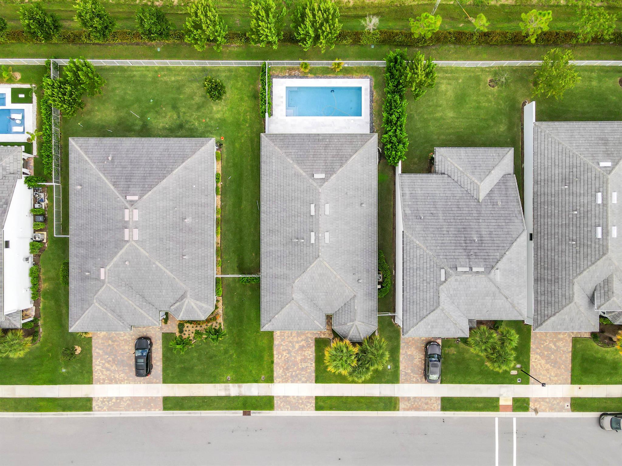 Prepare to be impressed by this absolutely stunning and meticulously upgraded single-family pool home, perfectly situated in the desirable, lake-focused community of Windsong Estates in Lake Worth. The residence boasts exceptional curb appeal, featuring a modern flat-tile roof, a beautiful multi-toned paver driveway, and a charming light blue stucco exterior framed by tropical landscaping. From the moment you arrive, the home's contemporary style is evident, promising a tranquil and luxurious lifestyle.