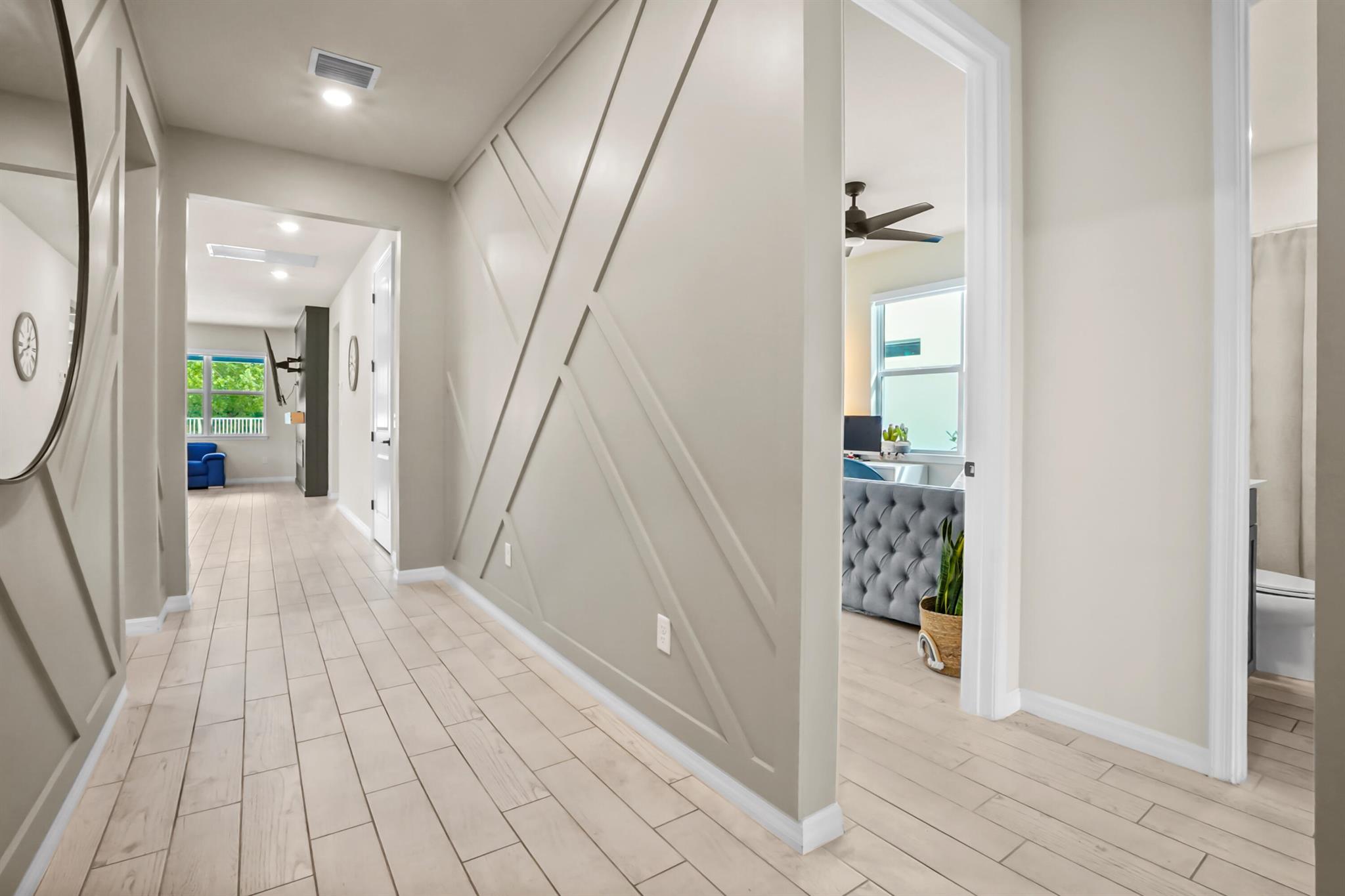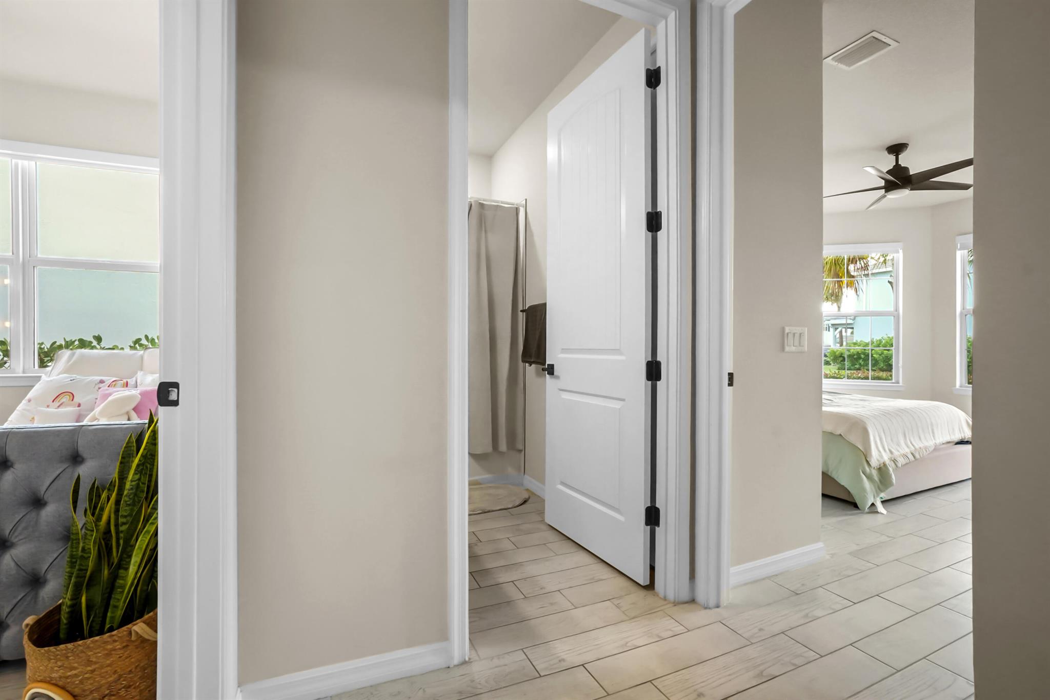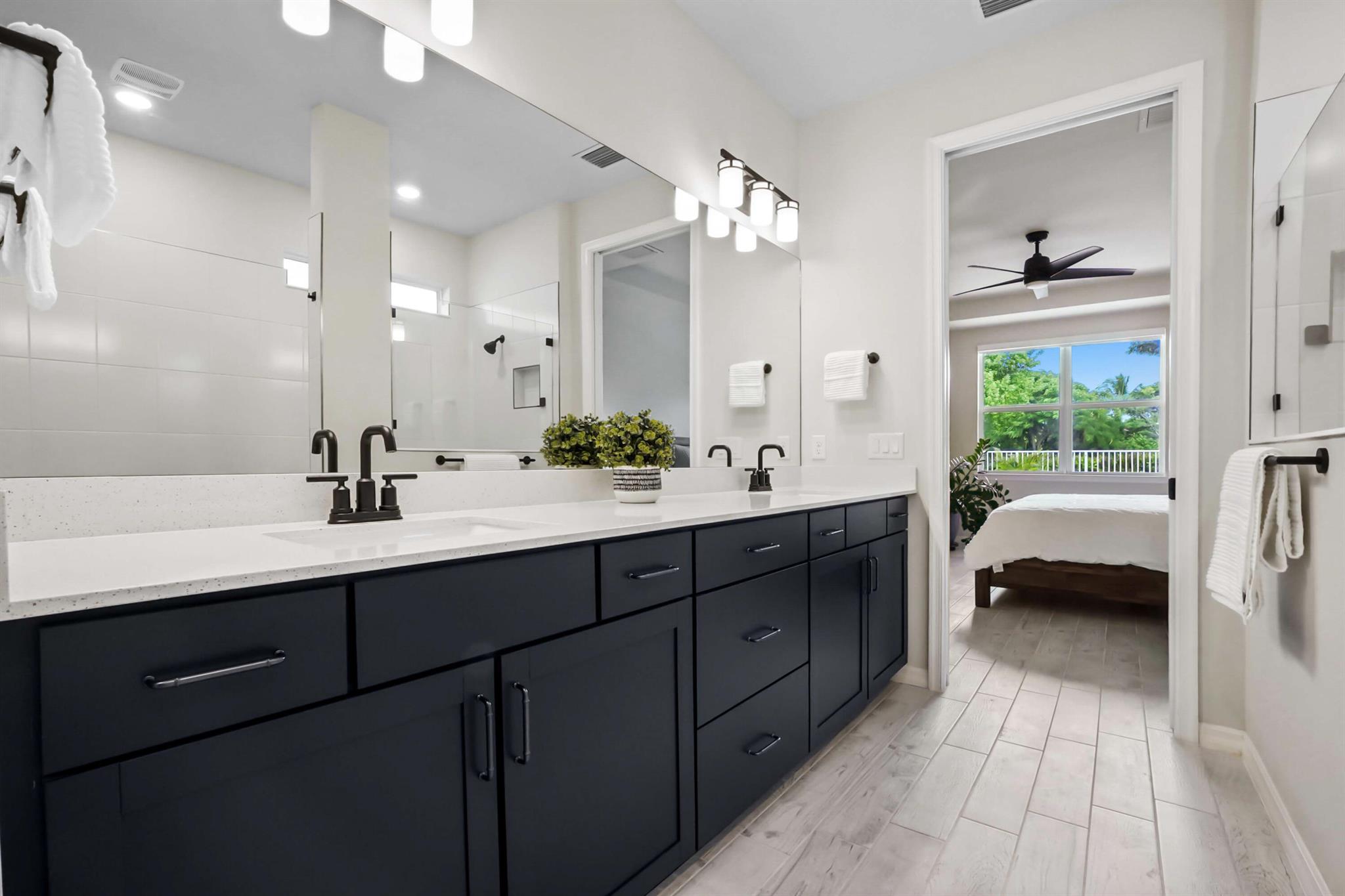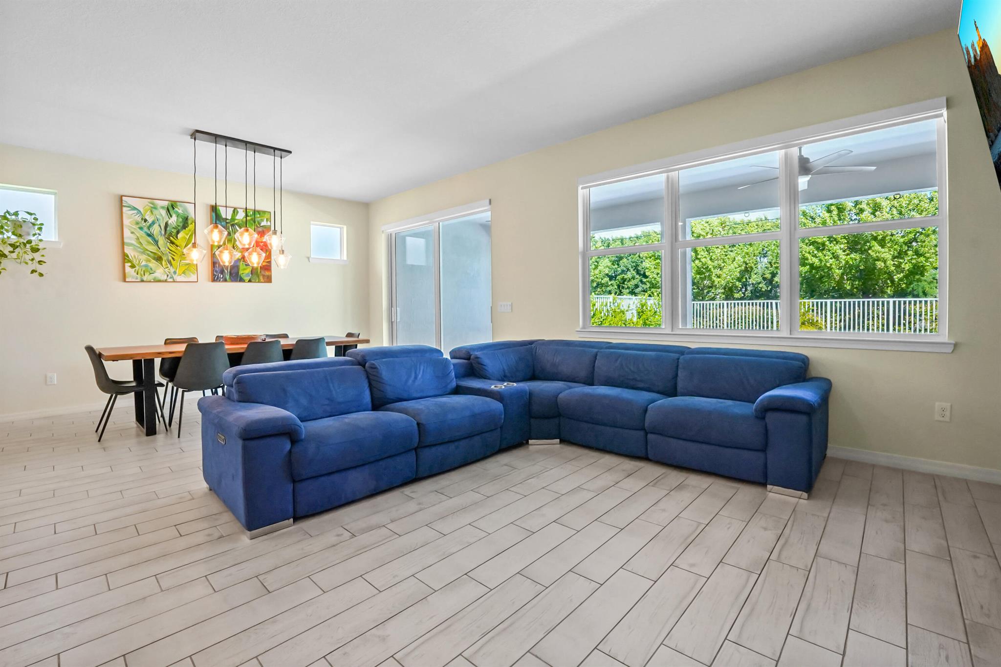 Prepare to be impressed by this absolutely stunning and meticulously upgraded single-family pool home, perfectly situated in the desirable, lake-focused community of Windsong Estates in Lake Worth. The residence boasts exceptional curb appeal, featuring a modern flat-tile roof, a beautiful multi-toned paver driveway, and a charming light blue stucco exterior framed by tropical landscaping. From the moment you arrive, the home's contemporary style is evident, promising a tranquil and luxurious lifestyle.