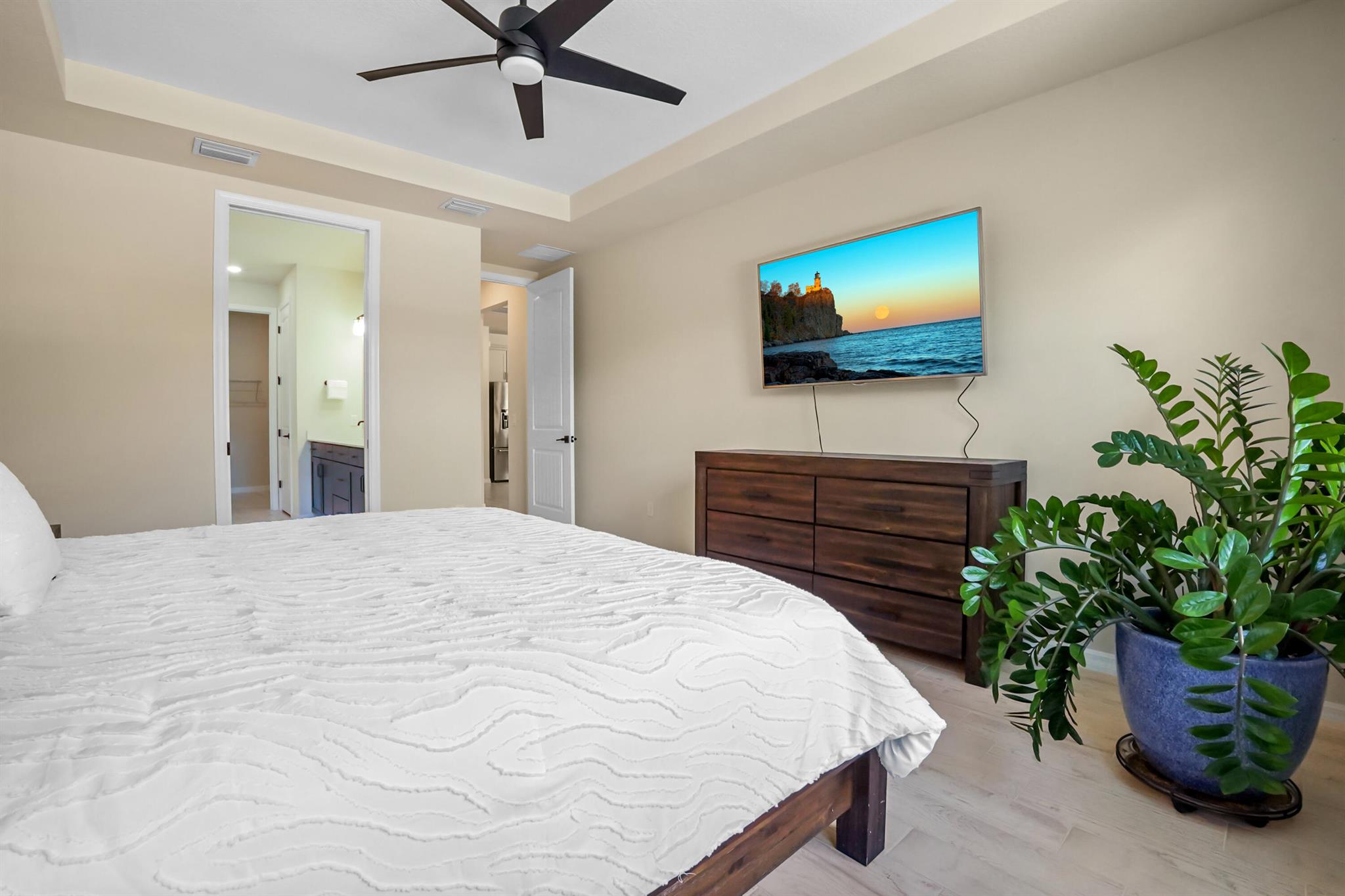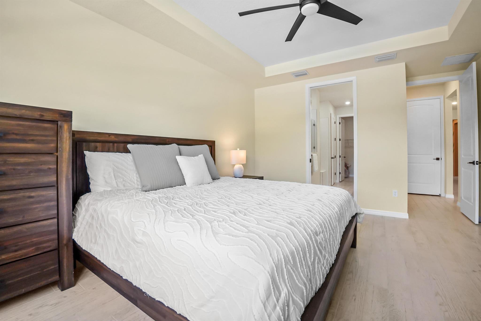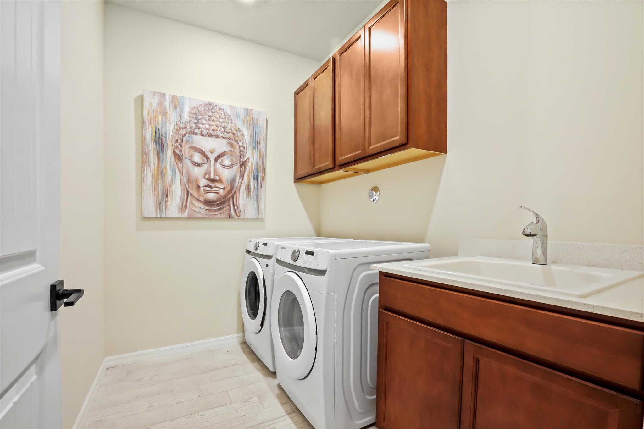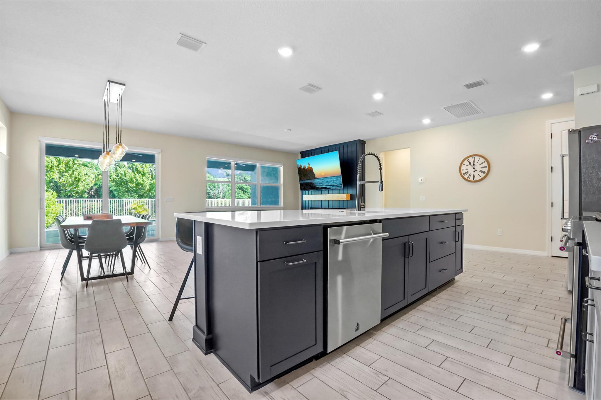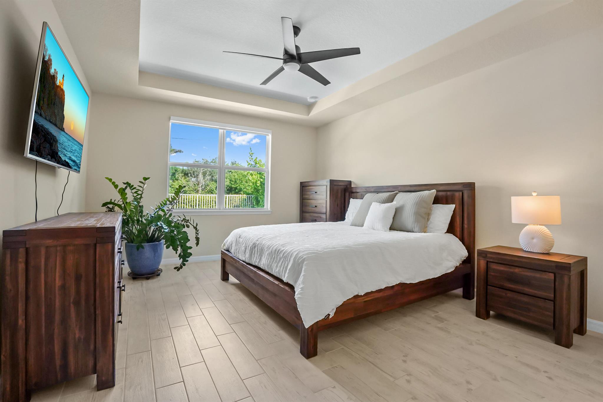 Prepare to be impressed by this absolutely stunning and meticulously upgraded single-family pool home, perfectly situated in the desirable, lake-focused community of Windsong Estates in Lake Worth. The residence boasts exceptional curb appeal, featuring a modern flat-tile roof, a beautiful multi-toned paver driveway, and a charming light blue stucco exterior framed by tropical landscaping. From the moment you arrive, the home's contemporary style is evident, promising a tranquil and luxurious lifestyle.