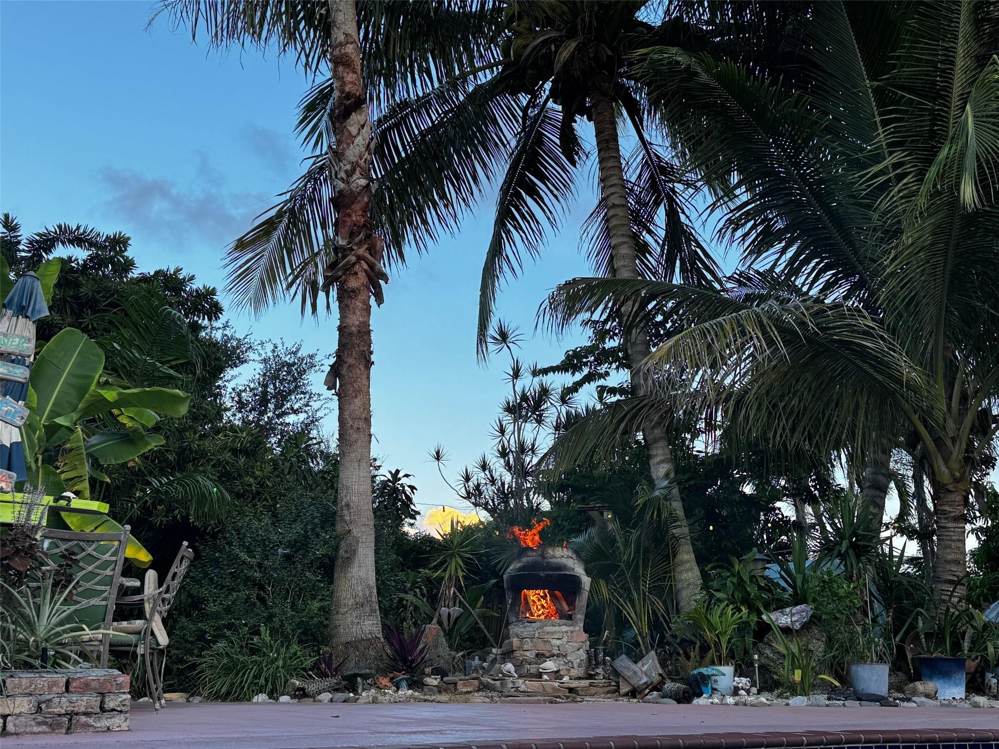 Unique backyard and side garden with seating area. Great entertainment space, resort like. Detached workshop with ac and electric. Rustic outdoor kitchen all stays. Outdoor seating/dining stays. All says, “Key West!” New roof complete- 03/25. New exterior paint-03/25. Ask us about a Solar option.
