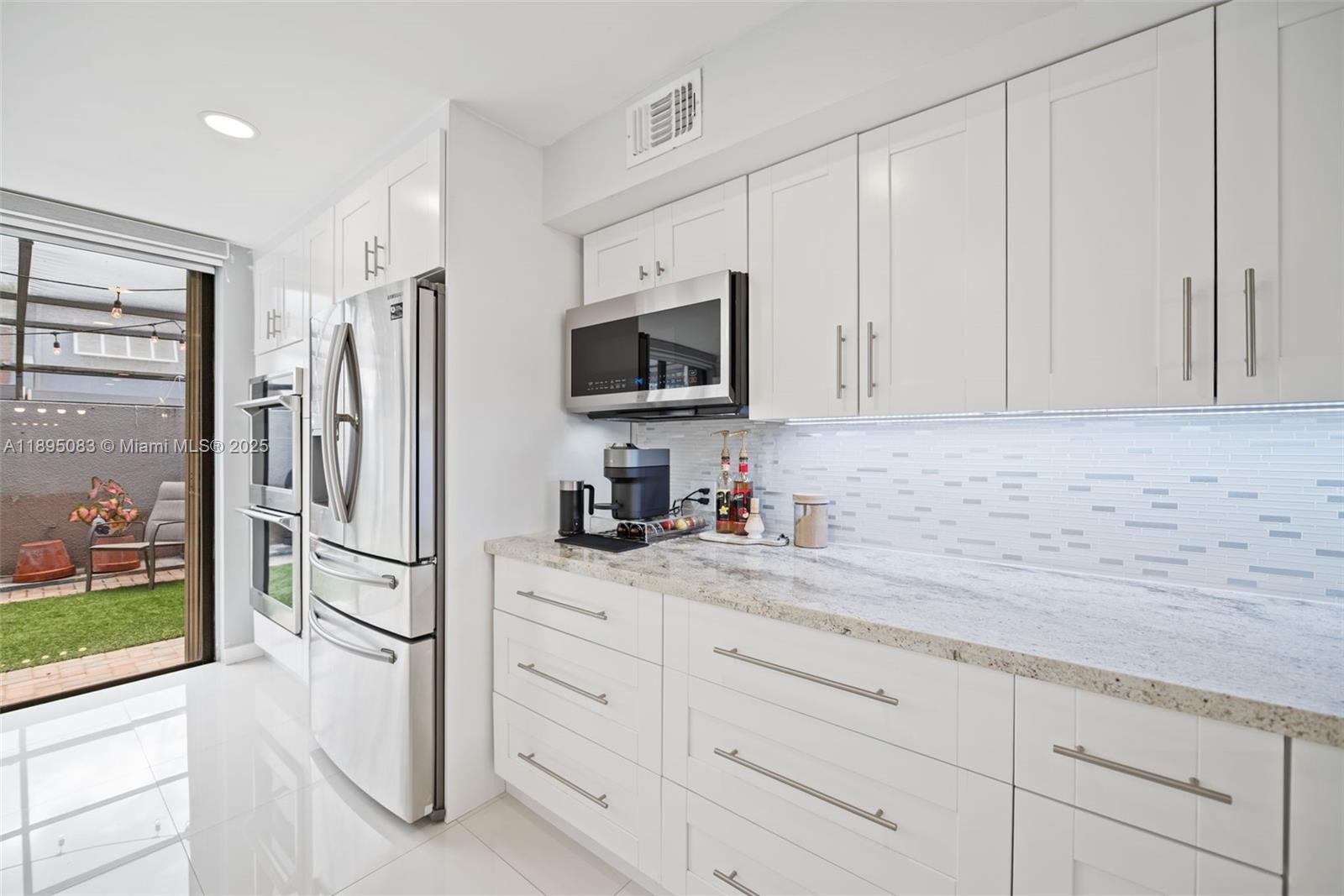 Thoughtfully updated and move-in ready! Enjoy 24x24 porcelain tile downstairs, laminate up, and a remodeled kitchen with granite, Samsung stainless & soft-close cabinetry. Primary bath features a walk-in shower; primary closet adds a barn door. LED high hats in living, kitchen, both bedrooms & primary bath, plus Nest thermostat and accordion shutters on all sliders. Most upgrades in 2019 (floors, kitchen, bath, A/C, roof for section). Popular community amenities—pool, tennis & basketball courts, clubhouse. HOA includes basic Comcast cable, and the unit has 2 assigned parking spots.