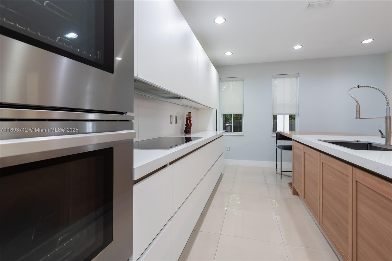 Completely renovated townhome in The Reserve at Doral East. Contemporary design with modern finishes and 10-ft ceilings; tile flooring on the first floor and original hardwood upstairs. Italian-style kitchen with quartz countertop and wood island extension, high-end appliances including double ovens and wine cooler. Impact windows and doors throughout, Trane A/C, LED lighting, electric blinds, and private balconies. Community includes a clubhouse with pool, gym, Wi-Fi room, playground, and 24-hour gated surveillance. Three assigned parking spaces plus guest parking.
