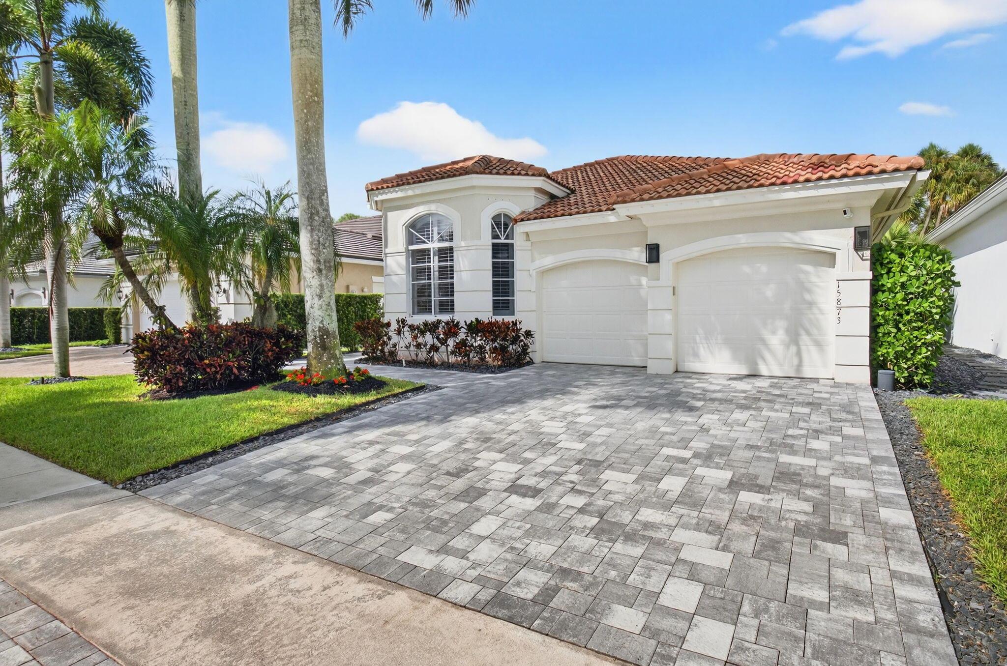 This immaculate 3 bedroom, 2 1/2 bathroom home located on Mizner Country Club's 10th green. This home features tile flooring through out, a large kitchen, over sized master, newly remodeled powder room, plantation shutters and custom closets. The front of the home has been updated with a new driveway. The contemporary pool area has been remodeled with new pool pavers and pool tiles. There is a newer pool heater, newer pool pump and the pool is saltwater. The pool/patio looks out onto stunning golf course views. Purchase your Mizner County Club home before the one time buy-in membership increases on January 1, 2026!