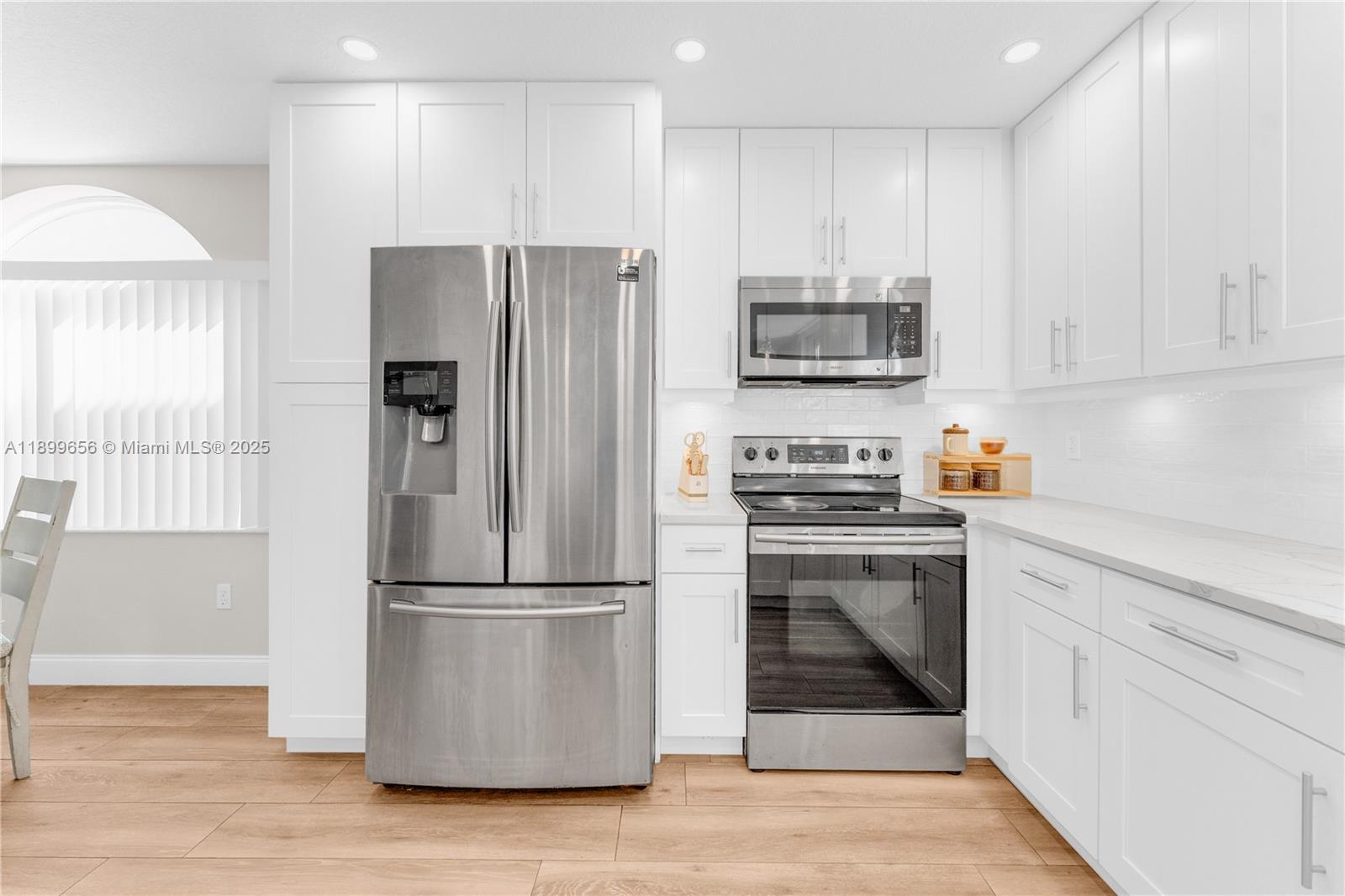 No rental restriction or HOA approval required. Beautifully renovated 3-bedroom, 2.5-bath single-family home featuring an open floor plan and modern finishes. The updated kitchen showcases 3-cm quartz countertops with a waterfall edge, sleek cabinetry, and stainless-steel appliances. High-impact windows and doors provide style and security. Porcelain wood flooring extends throughout both the first and second floors. The spacious master suite includes a soaking tub and a separate shower. Enjoy a screened-in porch overlooking the water, with potential for a private dock installation for motorized watercrafts. Includes a 1-car garage. Ideal for a starting family in an exclusive neighborhood within walking distance to top-rated schools.