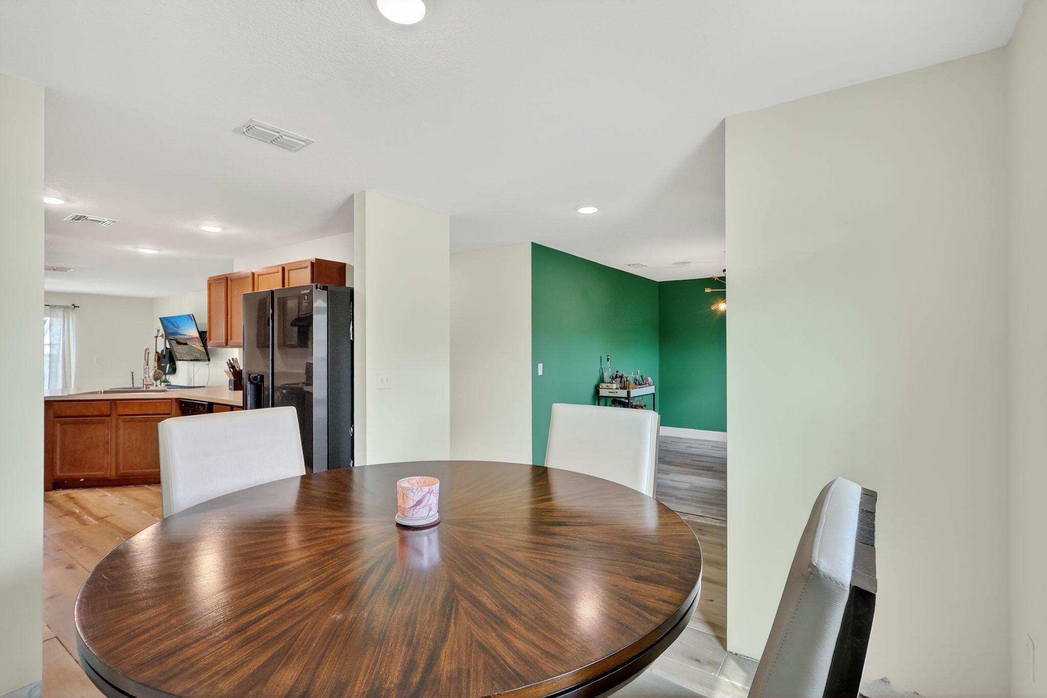 Built in 2021, this solid CBS 3-bedroom, 2-bath home with a den offers modern construction, stylish finishes, and an open, functional layout just 5 minutes from the Florida Turnpike. The kitchen flows seamlessly into the living and dining areas, creating a comfortable space for everyday living and entertaining. Enjoy newer plank porcelain flooring throughout the main areas and a versatile den that's perfect for a home office, playroom, or creative studio. Step outside to a spacious patio with a built-in fire pit ideal for evening gatherings, relaxing under the stars, or hosting friends on cool Florida nights.All information and measurements are approximate and subject to change without notice. Buyer to verify all information independently.