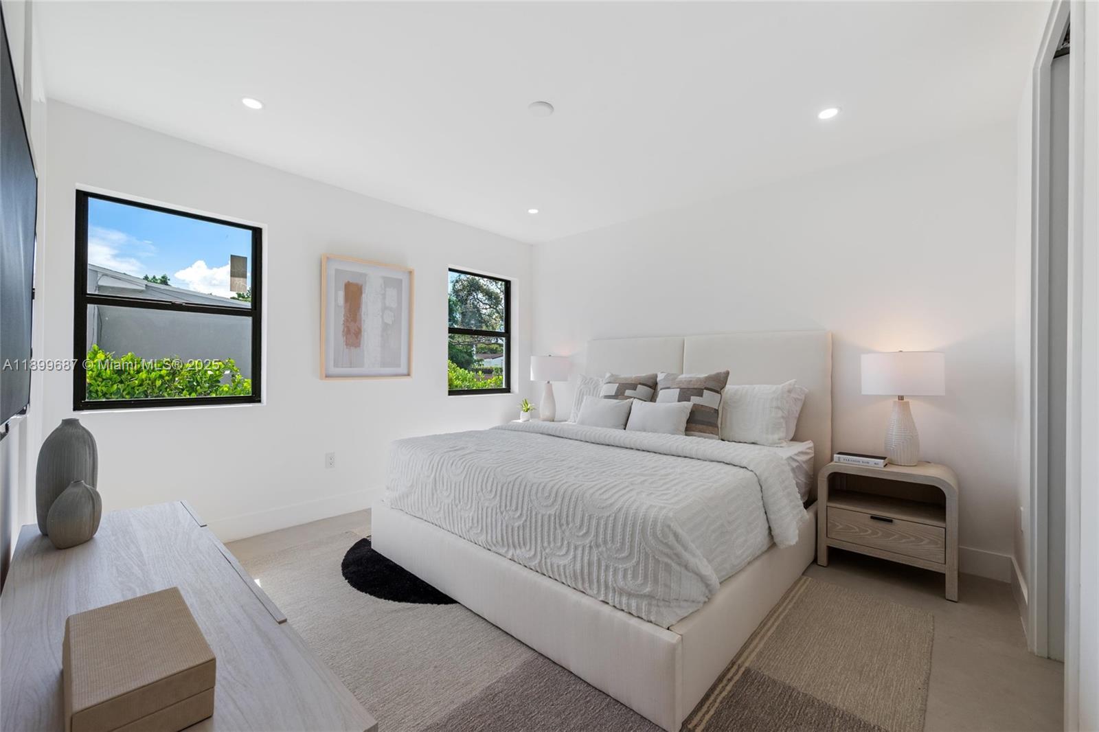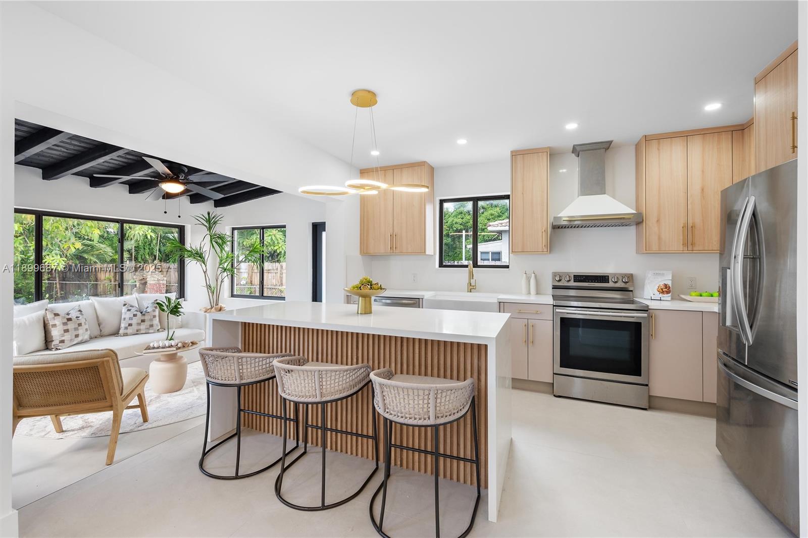 Beautifully renovated 5BR/3BA multi-generational home with a split floor plan and private in-law quarters. Enjoy peace of mind with updated roof, impact windows, and driveway. The kitchen features quartz countertops,a farmhouse sink, a hood, and plenty of lighting that makes the home feel warm and inviting. Zero-entry showers add style and accessibility. Over 2,000 sq ft of move-in-ready comfort deal for a large family or rental income. Oversized lot has room for a pool plus space to park a boat on each side. Just bring your toothbrush every detail is done!