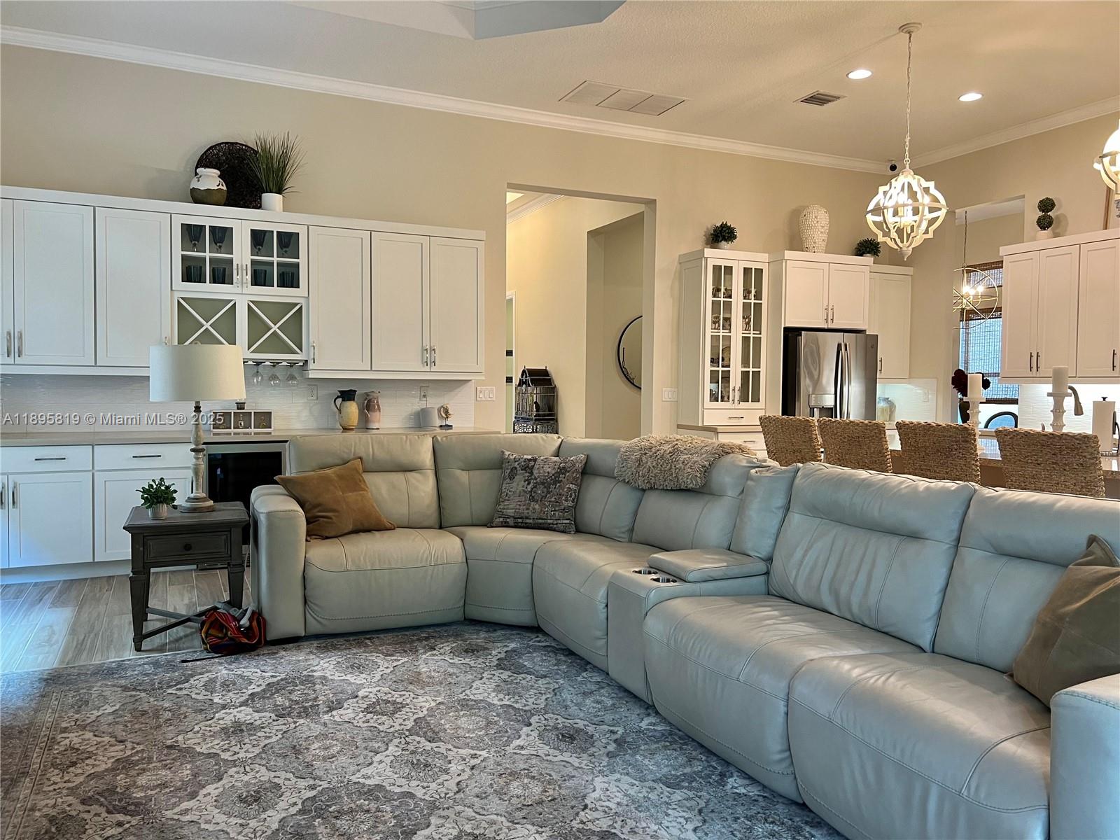 Shows like a model!!! This Beautiful Everett model is highly upgraded with 2,560 sq. ft. with 2 bedrooms plus Office/Den (add closet to be easily converted to 3 bedroom) and 2.5 bathrooms. This Home has it all...Walk into this gorgeous wood tiled home and foyer with tray ceilings finished in shiplap. Fabulous Gourmet Kitchen with quartz countertops, 5 gas burner stove, double ovens, huge island and indoor/outdoor speakers. Built in bar wall unit with wine cooler and numerous cabinet space. Brand New 2025 A/C unit. Permitted Generator and whole home has Culligan water softener. New outdoor kitchen with fridge and screened in patio. Also home exterior recently painted.