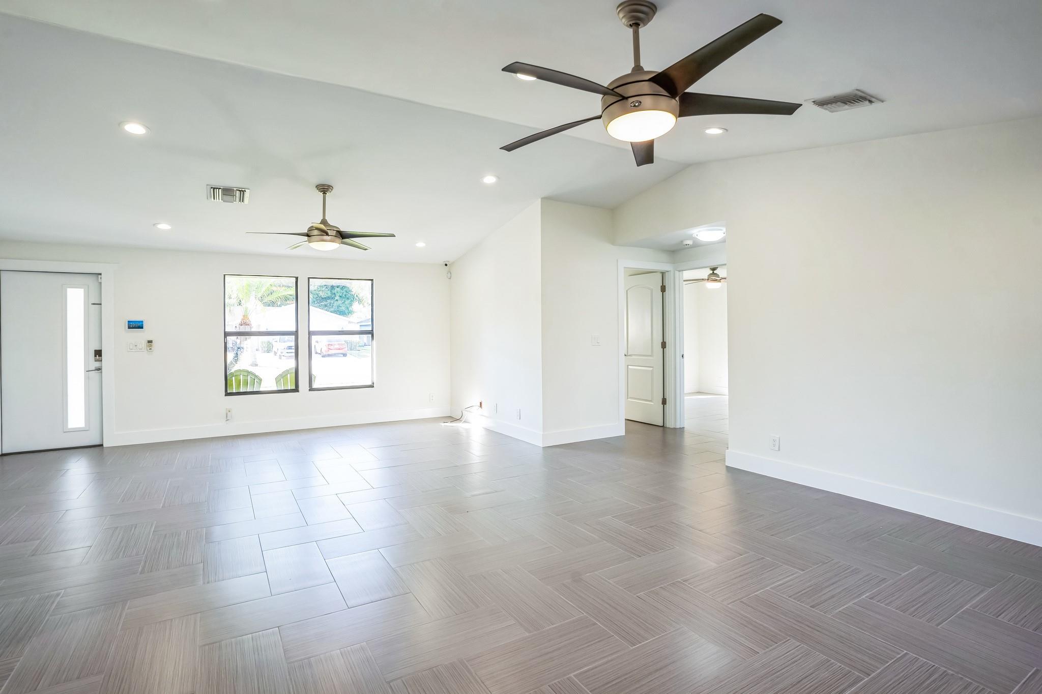 Fully Renovated Home - Move-In Ready! ?Interiors: It features 3 spacious bedrooms and 2 elegant bathrooms, this home boasts an open floor plan and a beautifully kitchen with vaulted ceilings. Outdoor Living: Enjoy a fully fenced backyard and a cozy screened patio, perfect for entertaining or relaxing. Peace of Mind: Equipped with full hurricane protection, a recently replaced water heater and roof installed in 2018. ?Modern Conveniences: Includes a laundry room and a 2-car garage. The master bathroom offers a seamless glass-enclosed step-in shower and a double sink. Ample closet space throughout, including a master closet. Nestled in a quiet and family-oriented neighborhood. Conveniently located close to shopping plazas, major highways, and just 15 mins from the beach!